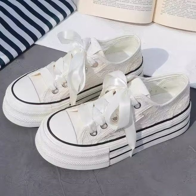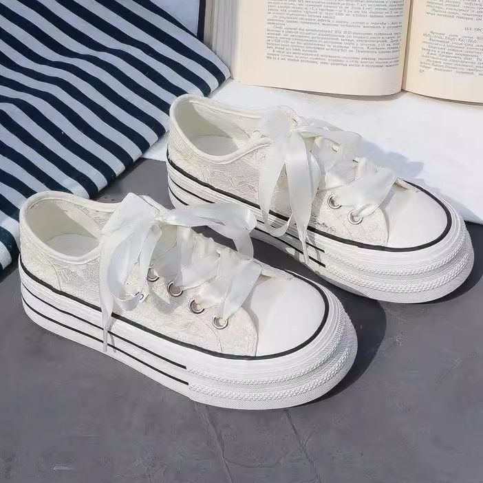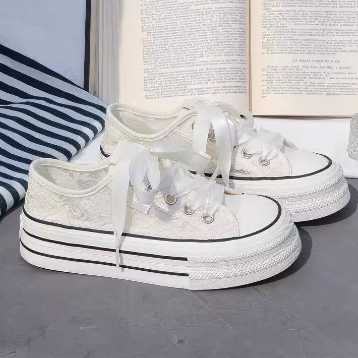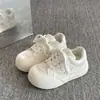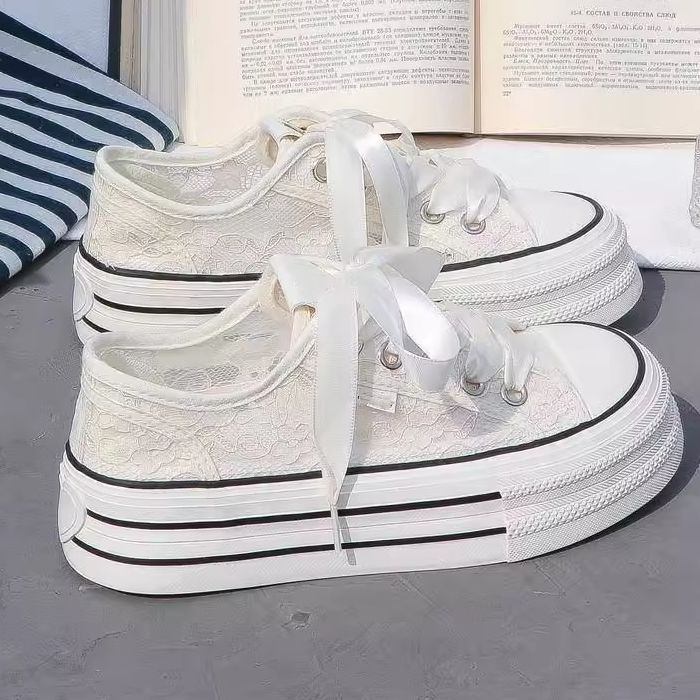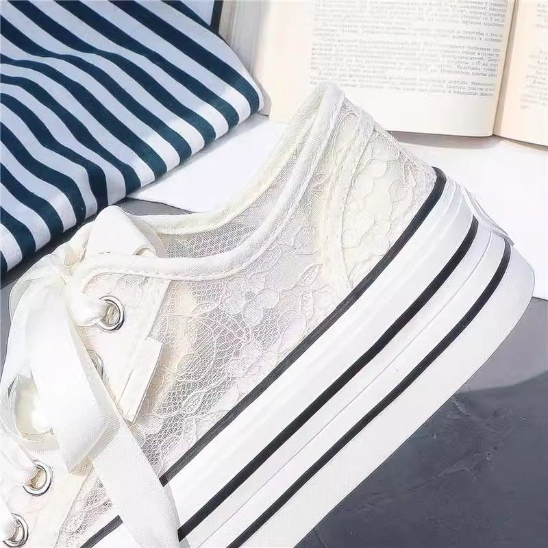 Zapatos Blancos de Suela Gruesa para Mujer 2025 Nuevos Ins Estudiante Combinación Falda Recorte Encaje Malla Commuter Tenis de Moda