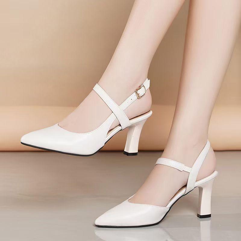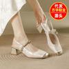 Sandalias Baotou para Mujer Clásicas 2025 Verano Nuevas Tacón Grueso Tira Punta Cuadrada Sandalias de Tacón Alto Sandalias Traseras Huecas para Mujer