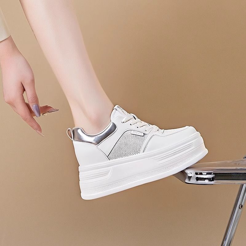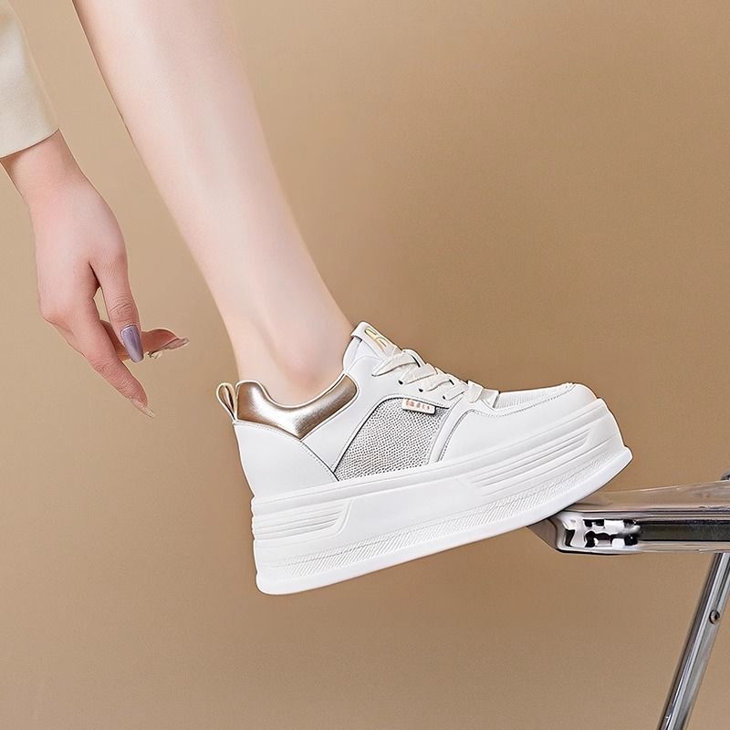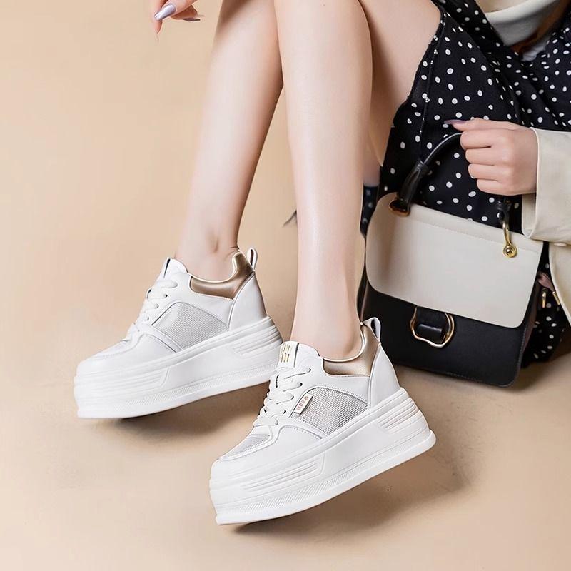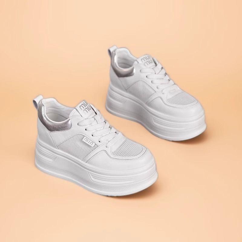 Zapatos Blancos de Plataforma de Verano 2025 de Suela Gruesa para Mujer Verano Pequeños Versátiles Malla Transpirable Estilo Coreano Zapatos Individuales de Suela Gruesa