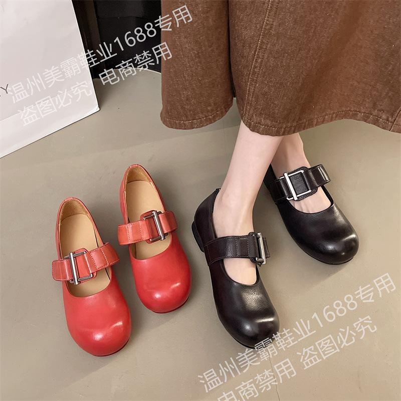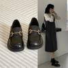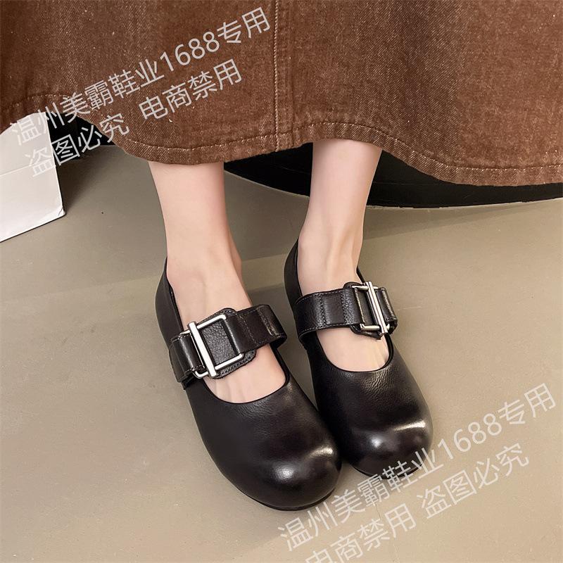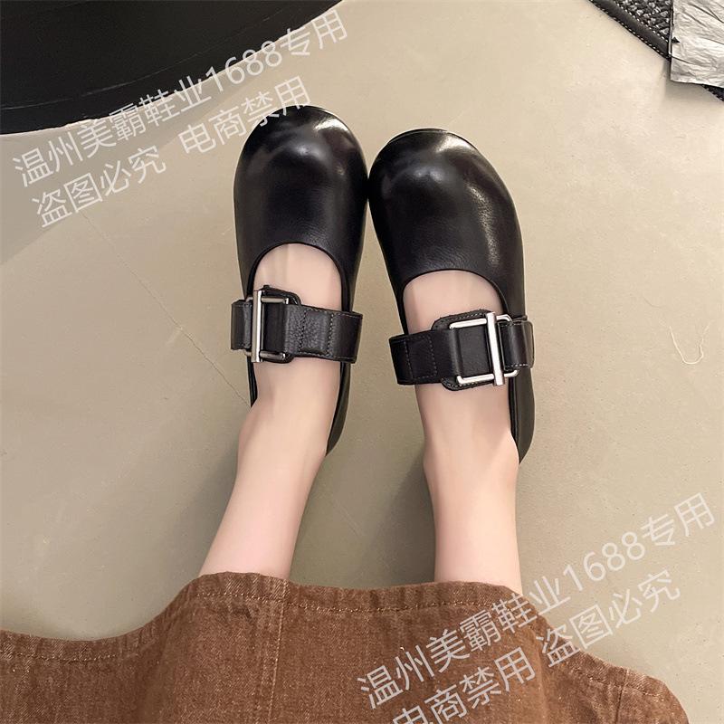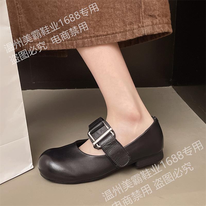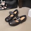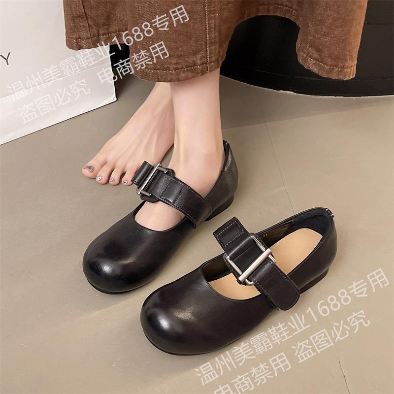 Mocasines de Cuero de Caballo con Hebilla Metálica para Mujer 2025 Verano Nuevo Punta Redonda Estilo Universitario Tacón Bajo Cuero Genuino Flats Pequeños Versátiles