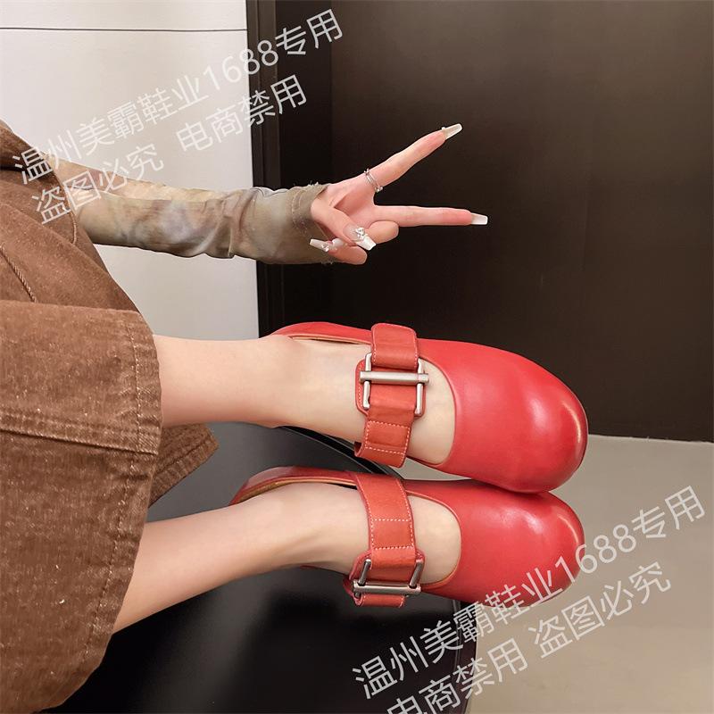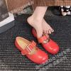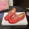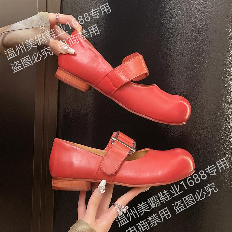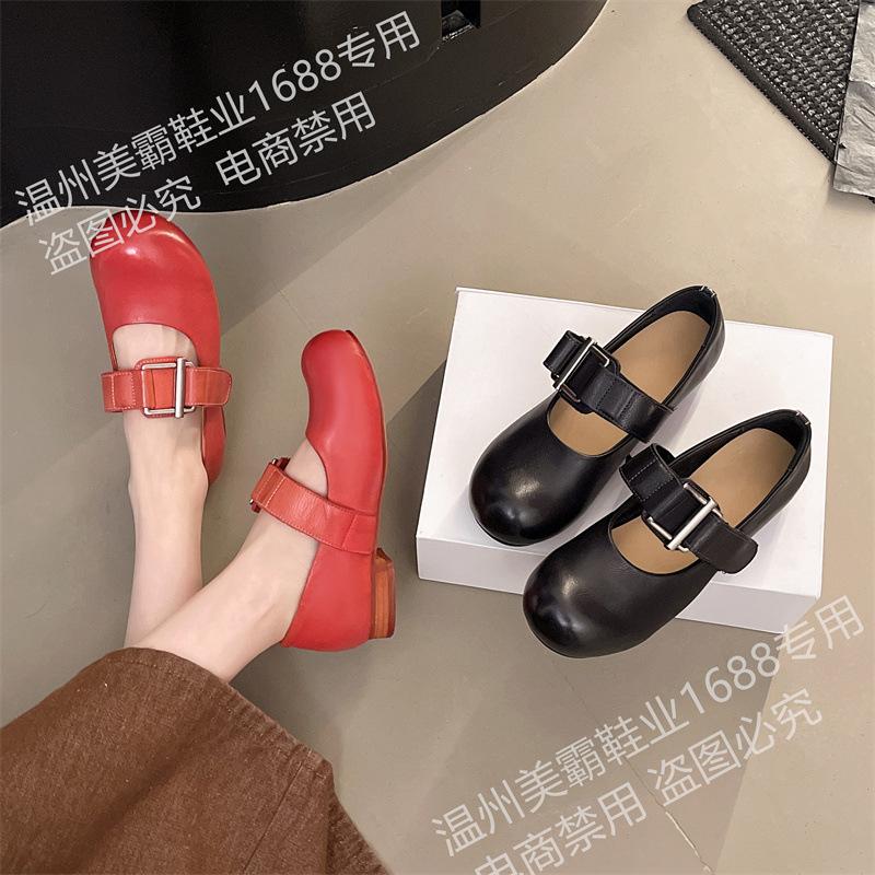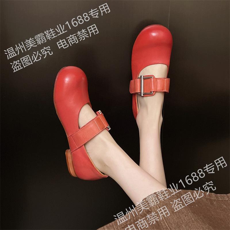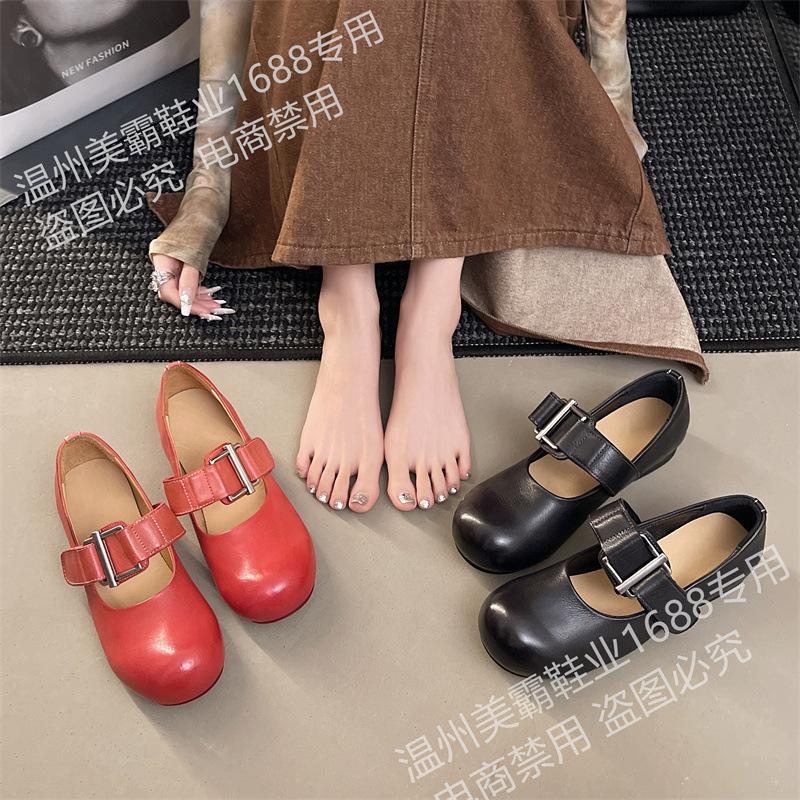 Mocasines de Cuero de Caballo con Hebilla Metálica para Mujer 2025 Verano Nuevo Punta Redonda Estilo Universitario Tacón Bajo Cuero Genuino Flats Pequeños Versátiles