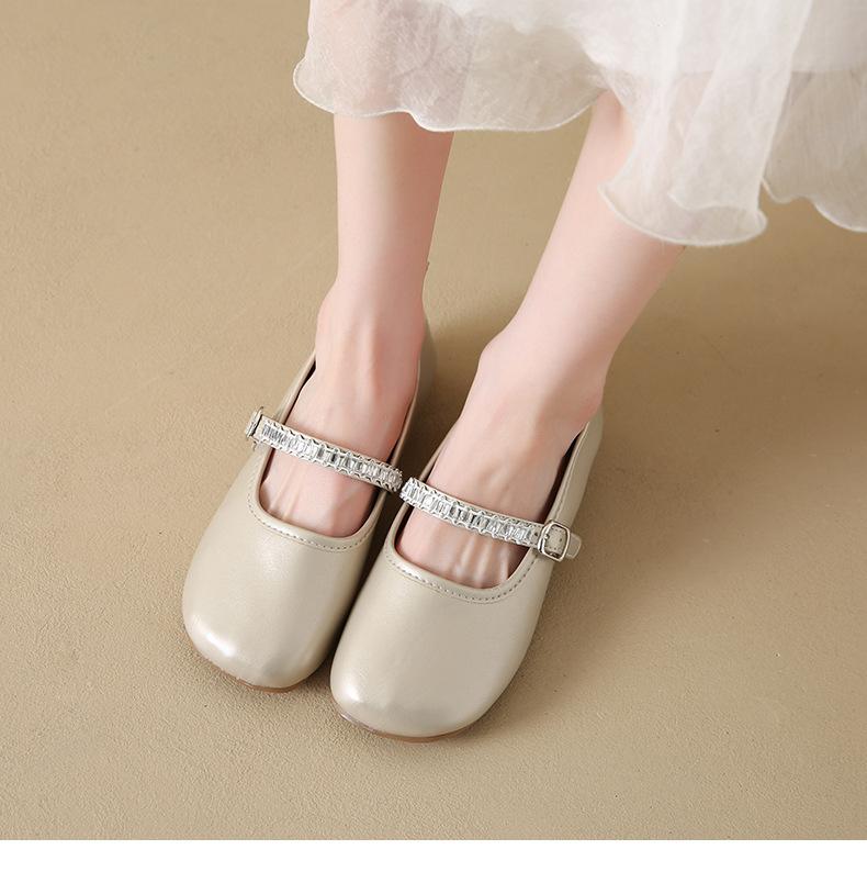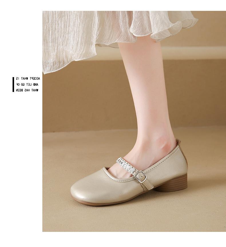 Zapatos casuales Mary Jane de piel suave para mujer 2025 Verano Nuevo estilo Transpirables Casuales Zapatos planos Zapatos tipo beanie Zapatos de mujer de una pierna