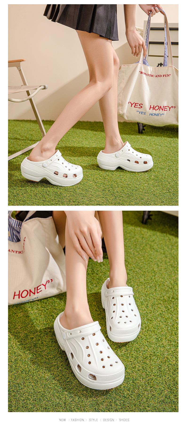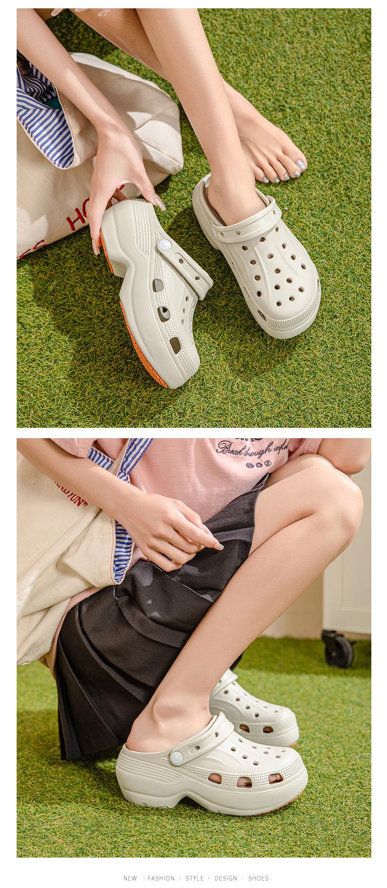 Zuecos Antideslizantes para Mujer en Verano, Pantuflas Transpirables de Punta a Punta, Suela de Goma Eva Elevadora Resistente al Desgaste, Pantuflas de Playa de Suela Gruesa