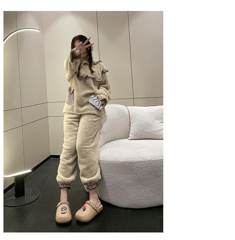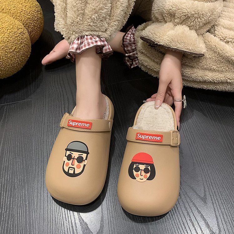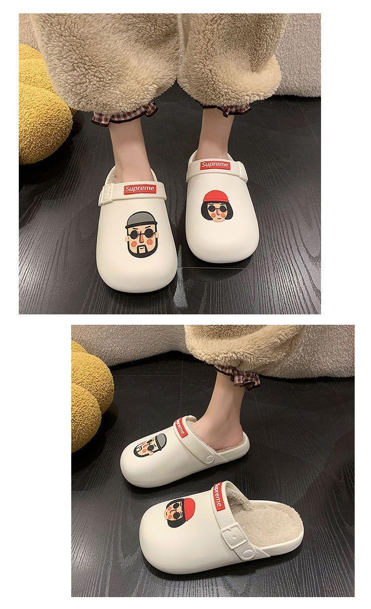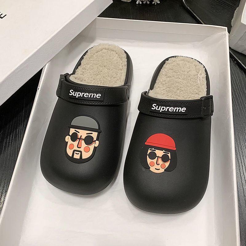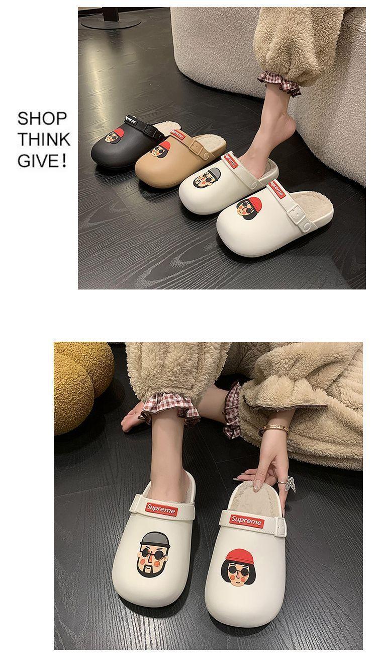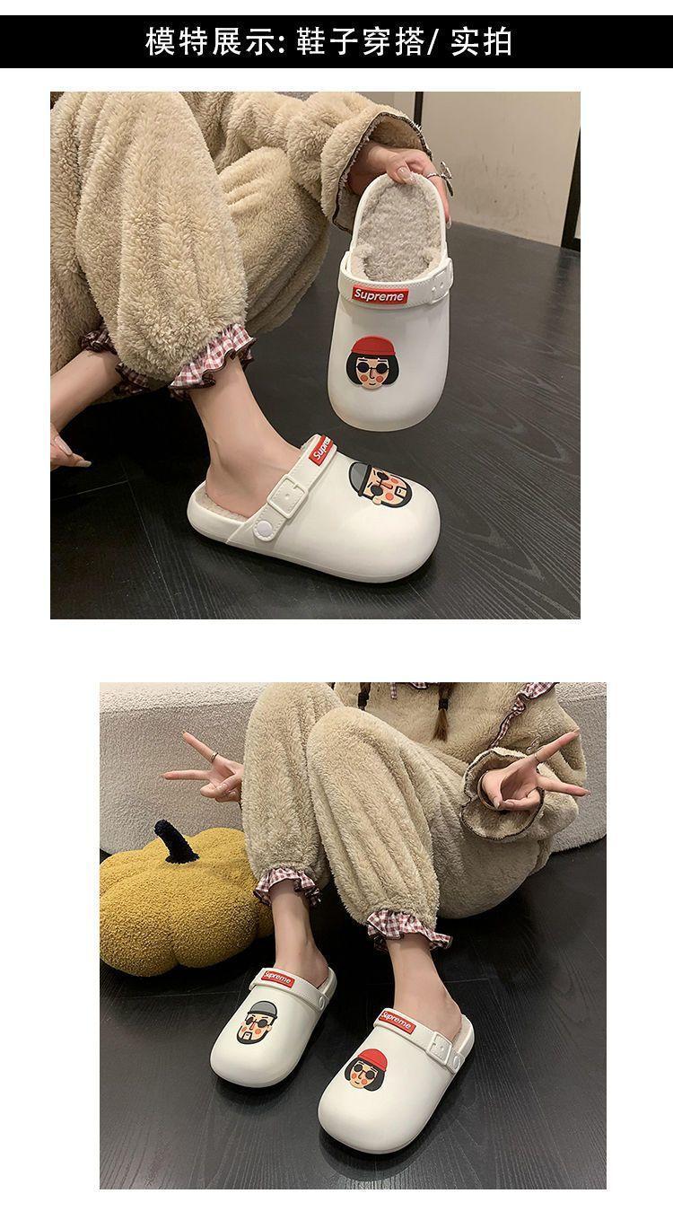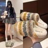Pantuflas Peludas de Tamaño Grande para Interior de Casa a Cuadros 2025 Invierno Nuevo Antideslizantes con Puntera de Algodón para Mujer para Usar Afuera