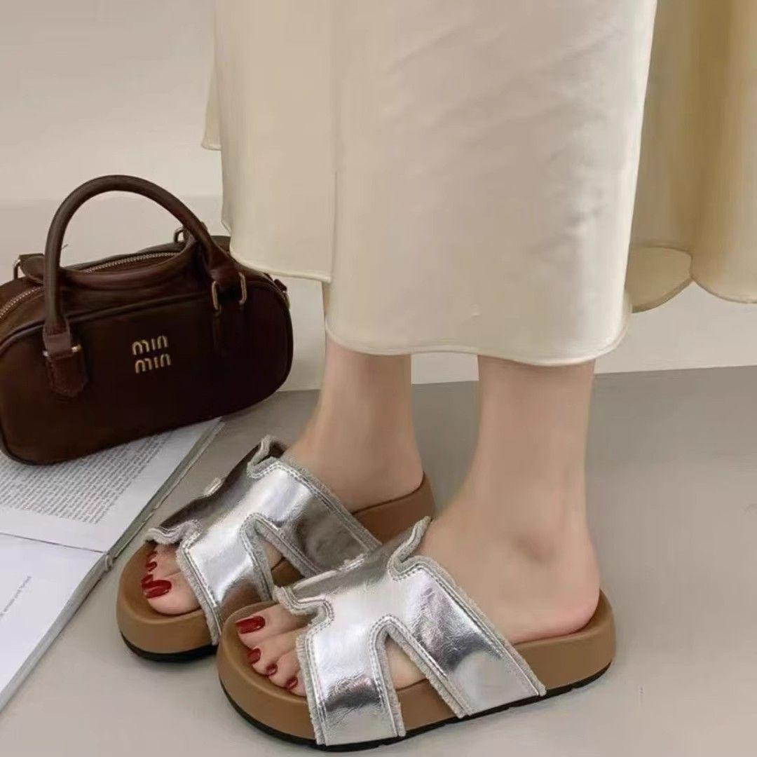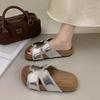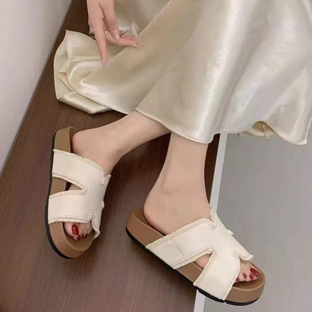 Pantuflas francesas de punta abierta y suela blanda para mujer 2025 Verano Nuevo Casual Ligero Perezoso para Exterior Sandalias Planas