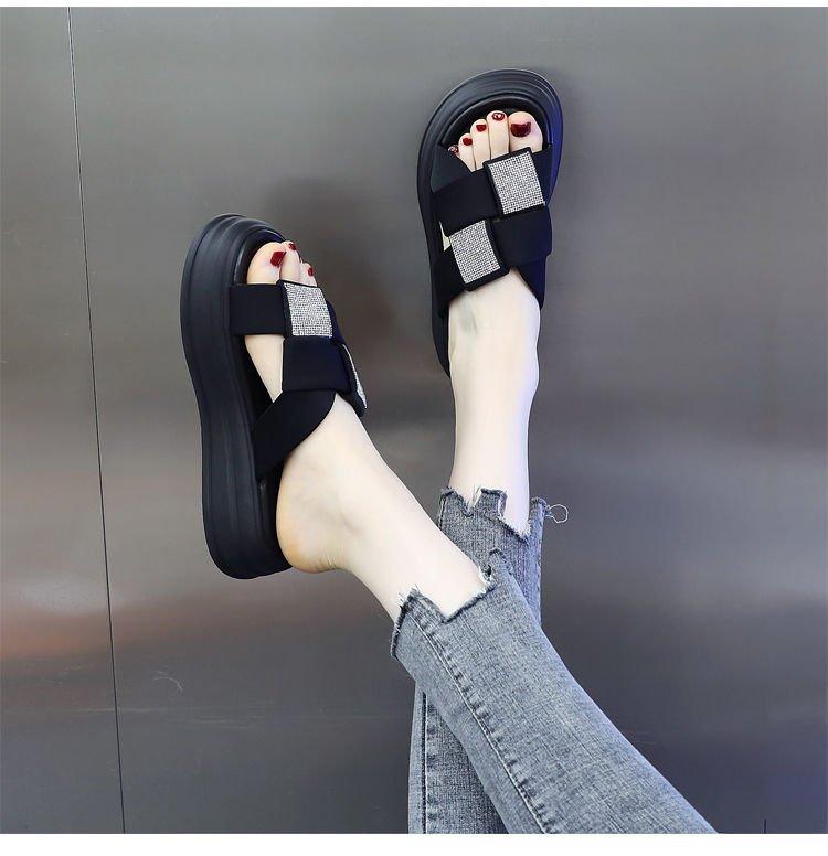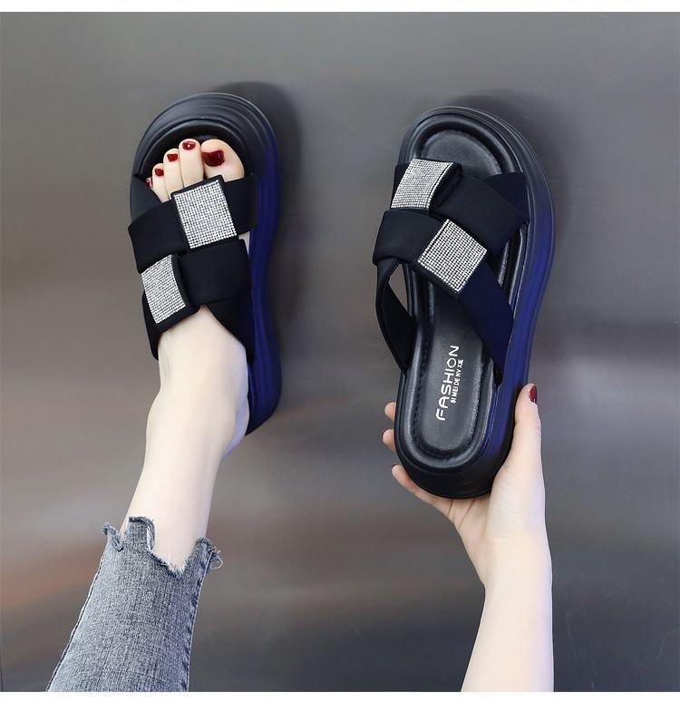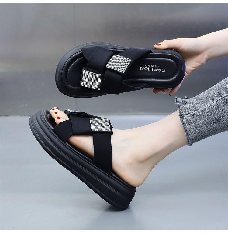 Sandalias y pantuflas de suela gruesa para mujer, verano 2025, últimas pantuflas de exterior de suela blanda con mayor sensación de pisar excremento