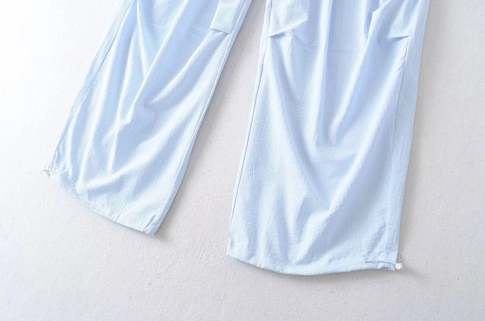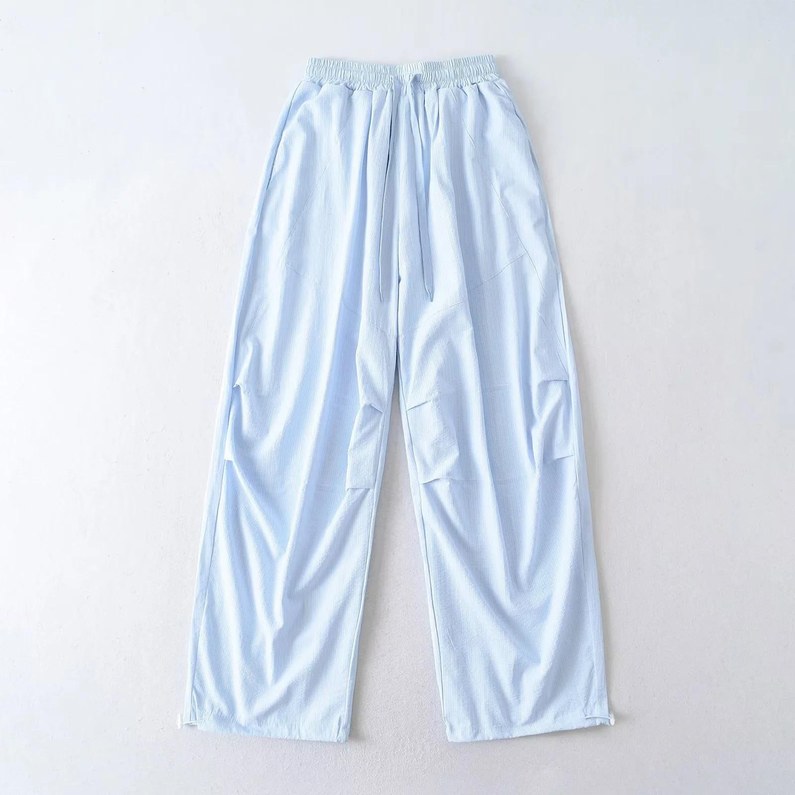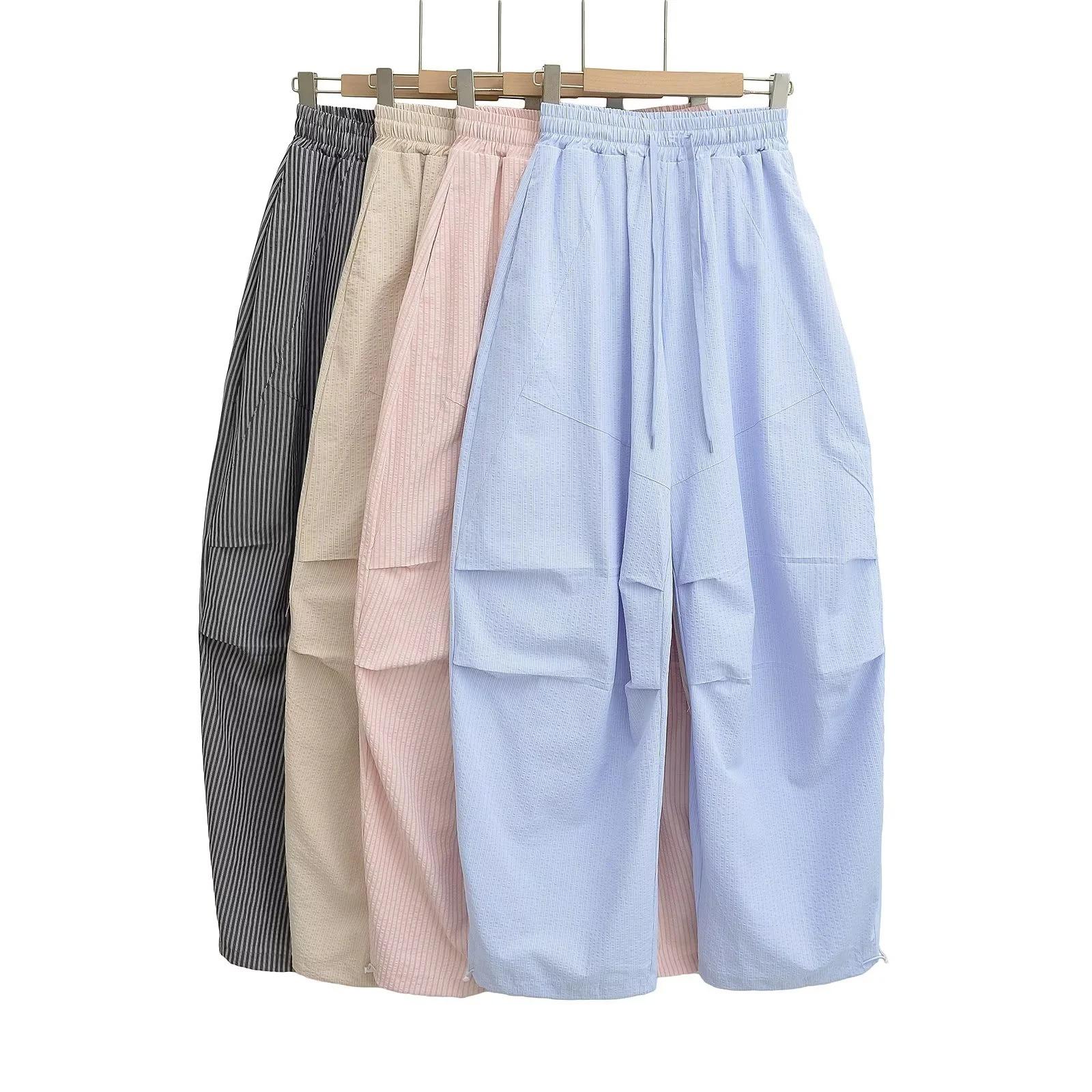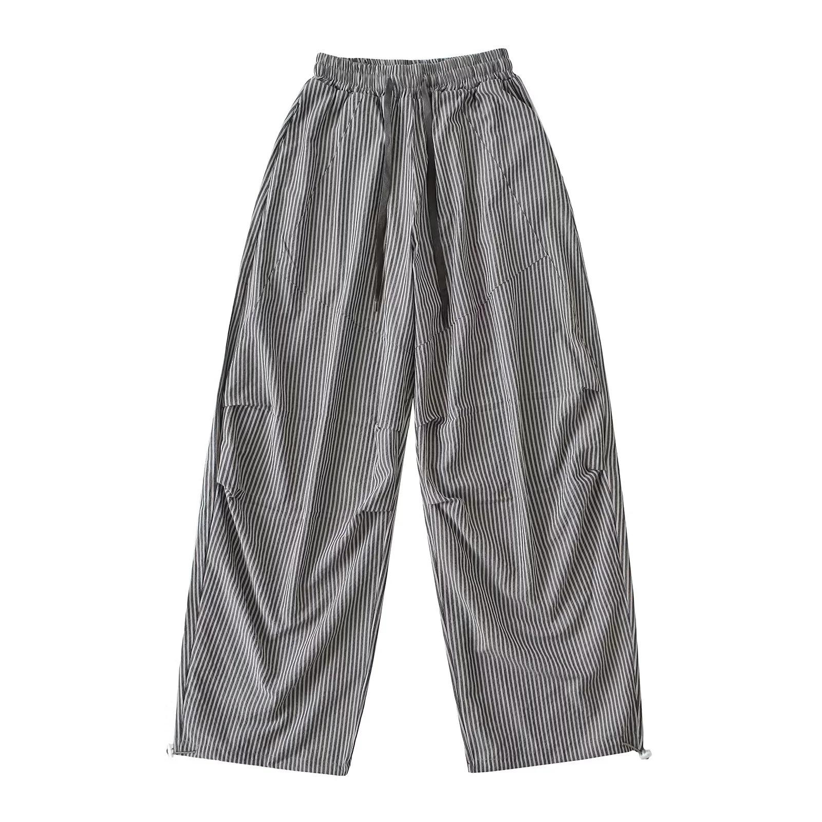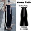 Pantalones de Pierna Ancha a Rayas Estilo Americano para Mujer, Verano 2025 Nuevo Recto Suelto Cintura Alta Caída Adelgazantes Versátiles Pantalones Casuales