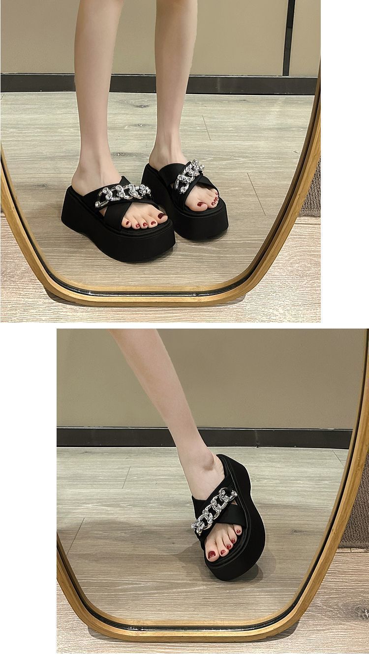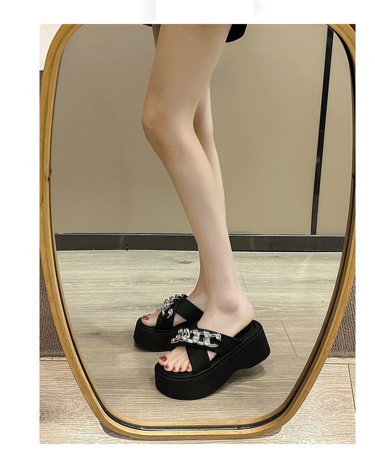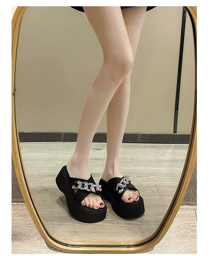 Chanclas de Pedrería para Verano para Mujer 2025 Nuevas Sandalias Pequeñas de Playa para Mujer para Aumentar la Altura de Moda con Suela Gruesa