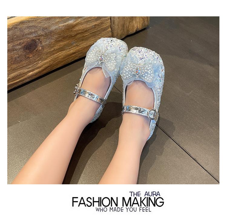 Zapatos Versátiles de Princesa para Niñas 2025 Verano Nuevos Zapatos de Cuero para Niños Zapatos de Cristal para Niñita Sandalias de Pedrería de Suela Blanda para Mujer