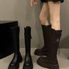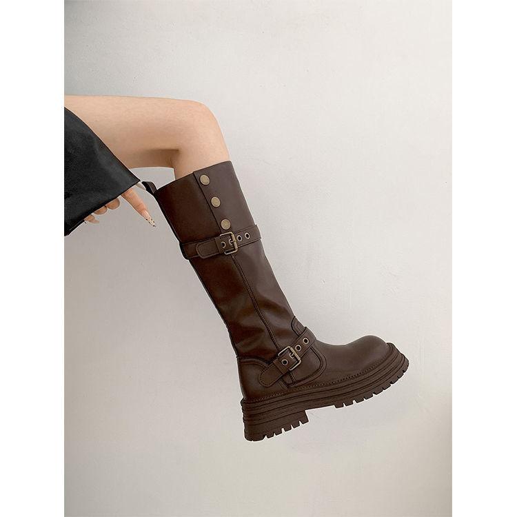 Botas largas adelgazantes de tacón grueso de moda para mujer 2025 Otoño Nuevas Botas retro versátiles hasta la rodilla Botas de montar de suela gruesa