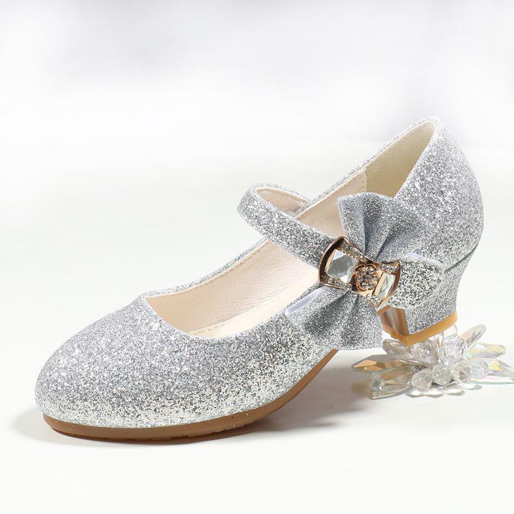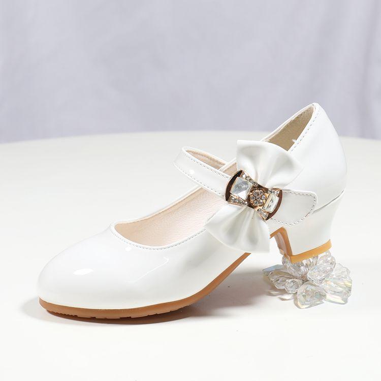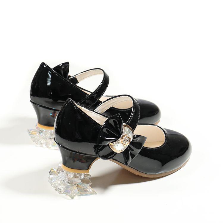 Zapatos de Tacón Alto para Niñas 2025 Primavera Nuevos Zapatos de Cristal para Niños Zapatos Estilo Coreano para Niños Grandes Niñitas Moda Zapatos de Princesa
