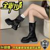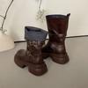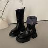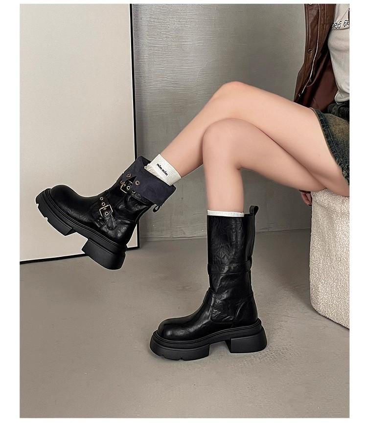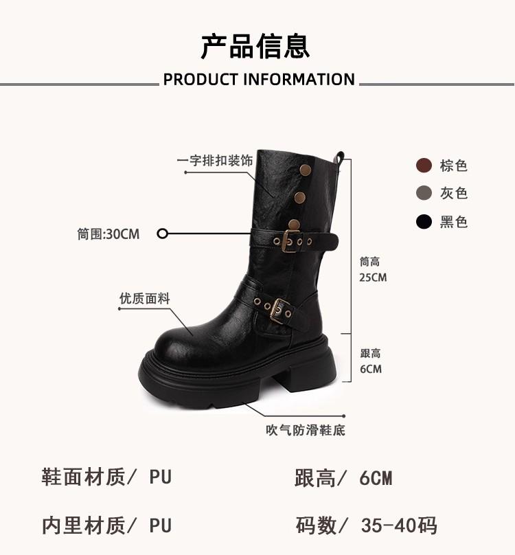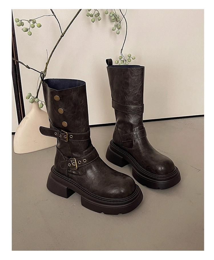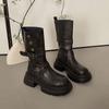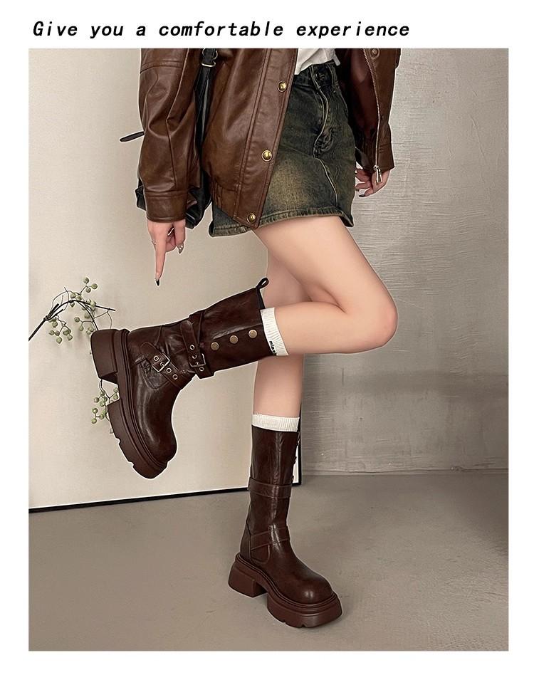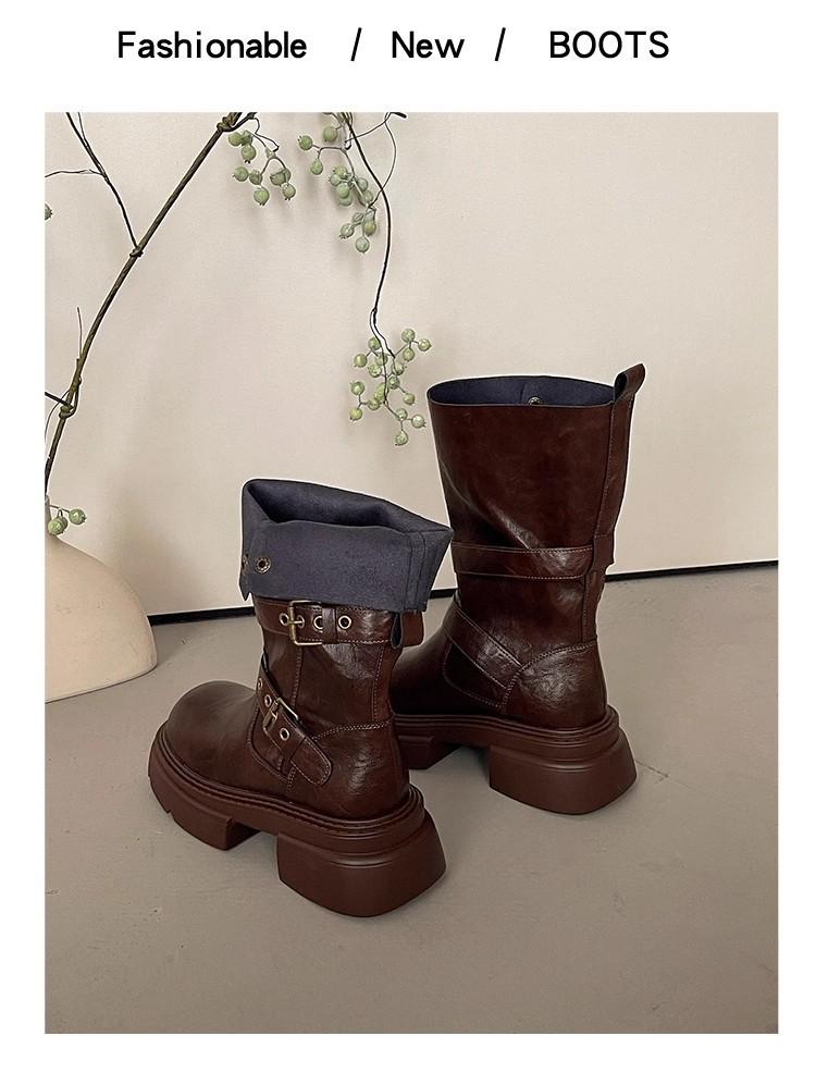 Botas de Suela Gruesa para Mujer 2024 Otoño e Invierno Nuevas Botas Retro de Ante de Media Caña Hebilla de Cinturón Dos Formas de Uso Botas Vaqueras del Oeste