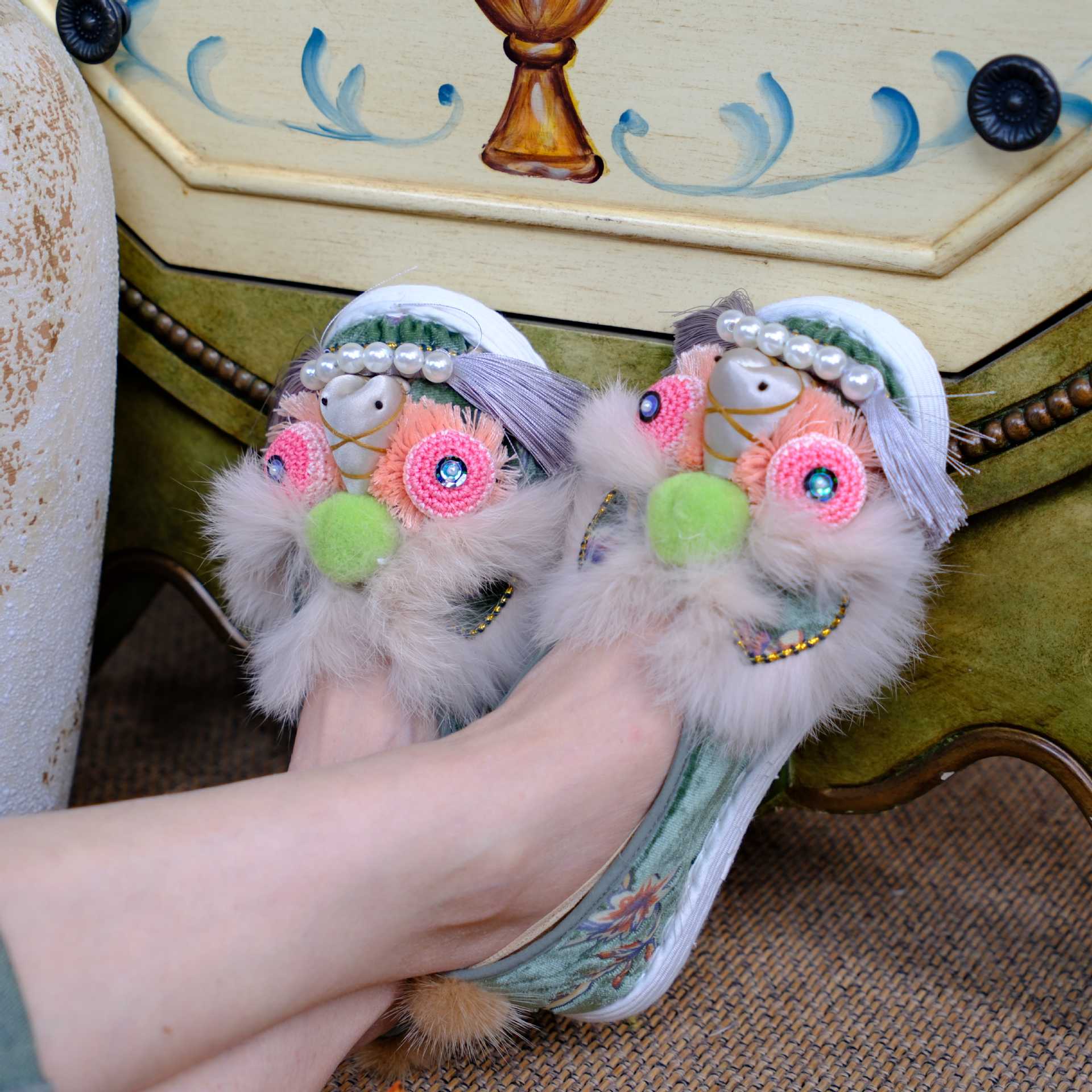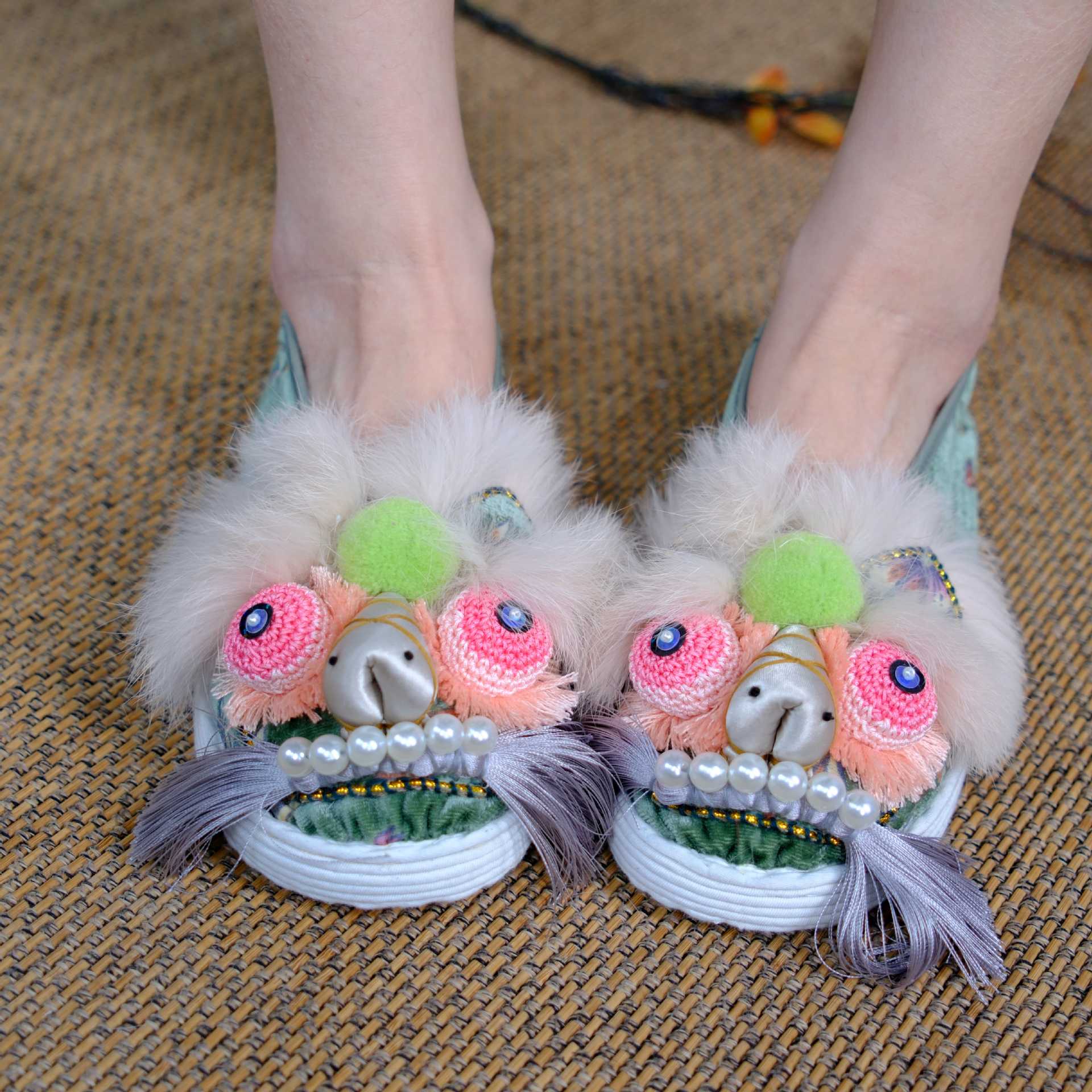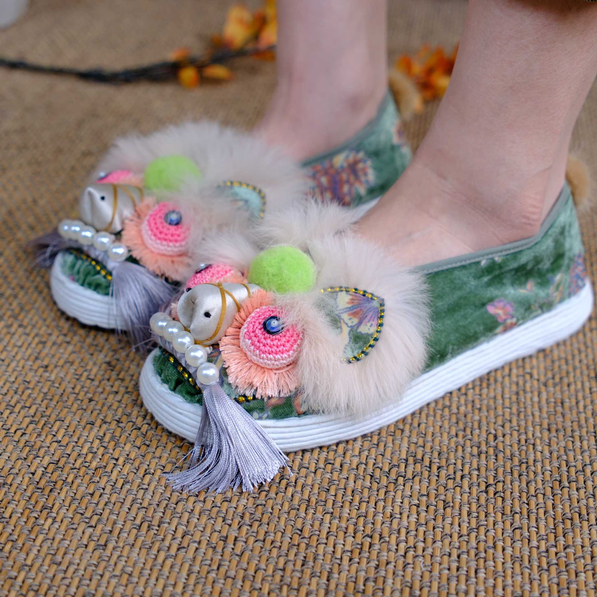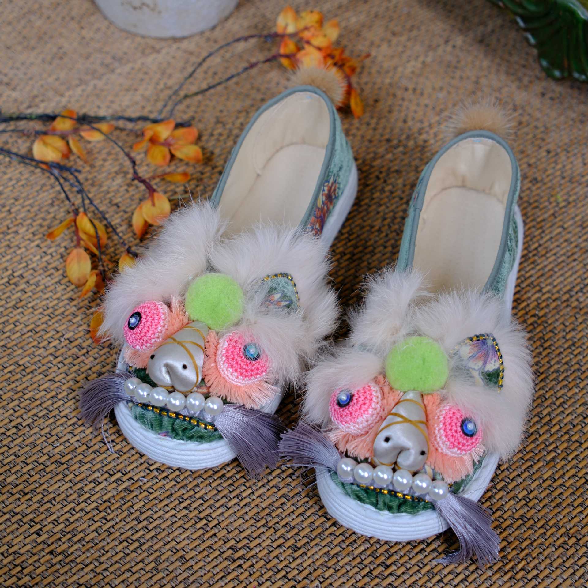 Zapatos Cabeza de Tigre para Adulto Nueva Moda Retro Suela de Mil Capas Hechos a Mano Zapatos de Tela Cabeza de Tigre Original Estilo Étnico Hanfu