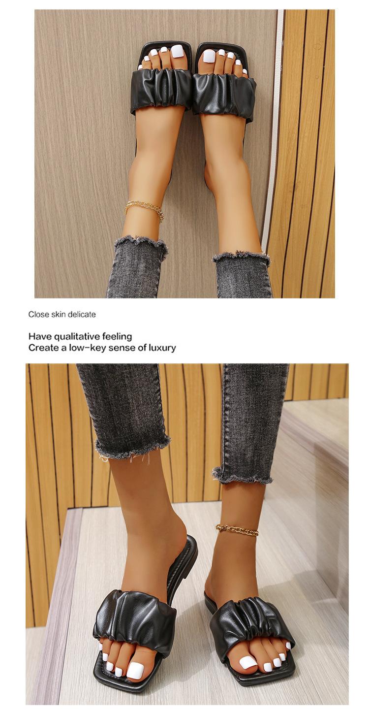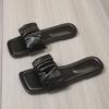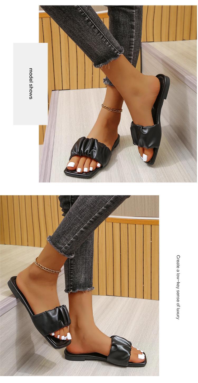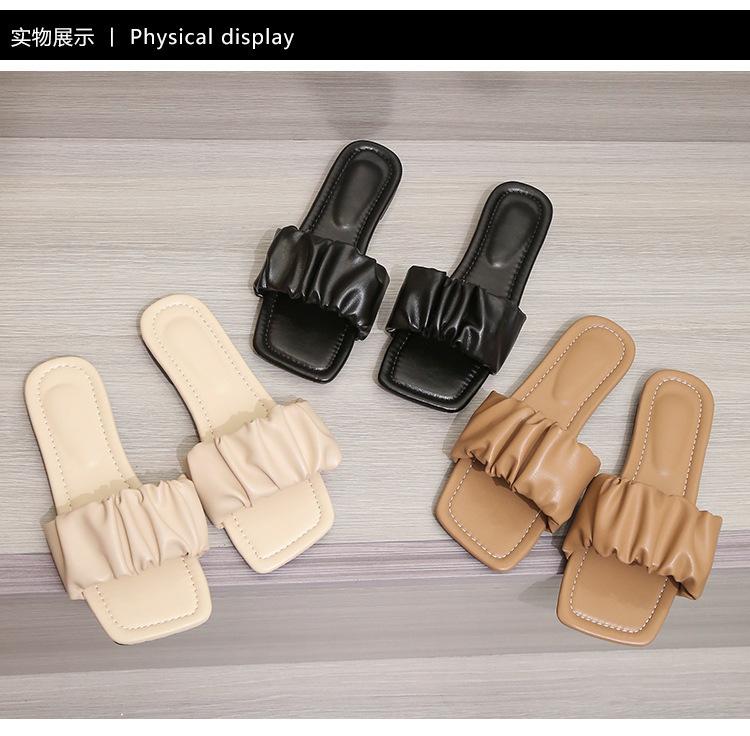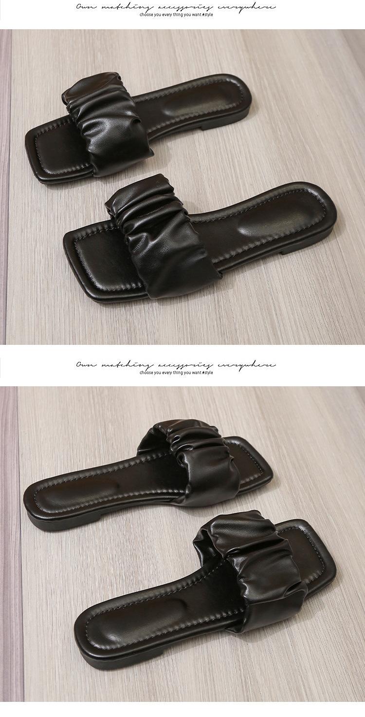 Sandalias planas para mujer 2024 Pantuflas estilo coreano Talla grande Pantuflas de verano Moda Plisado Comercio exterior Punta cuadrada Nuevo estilo