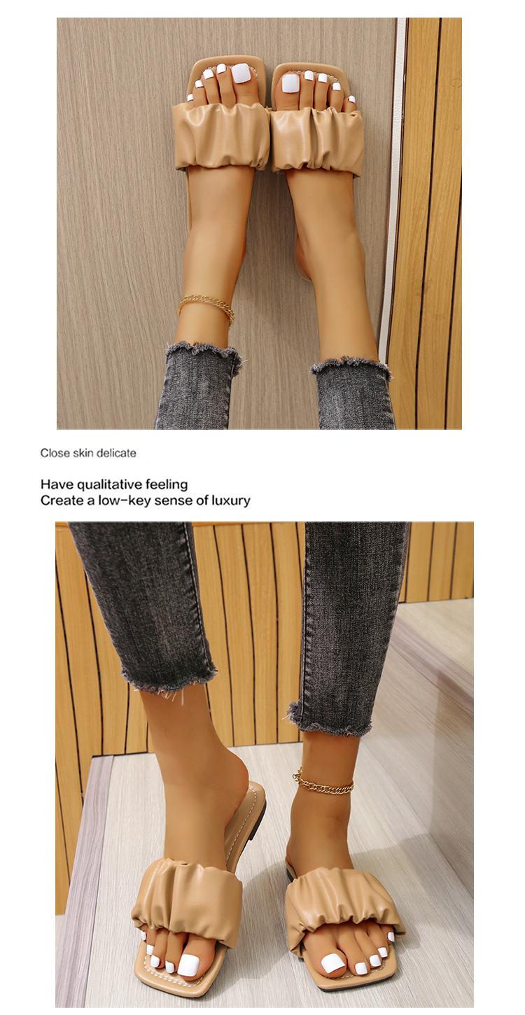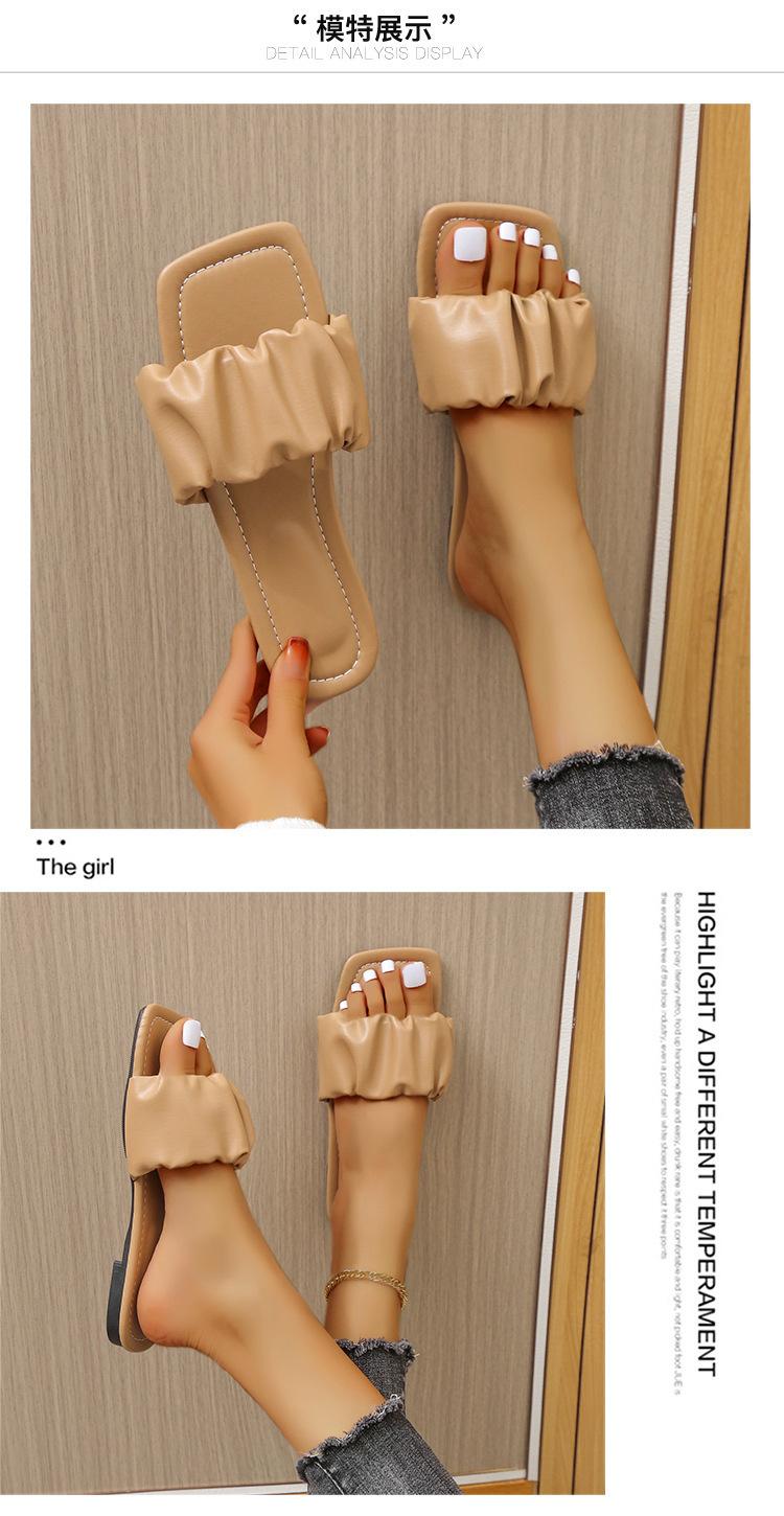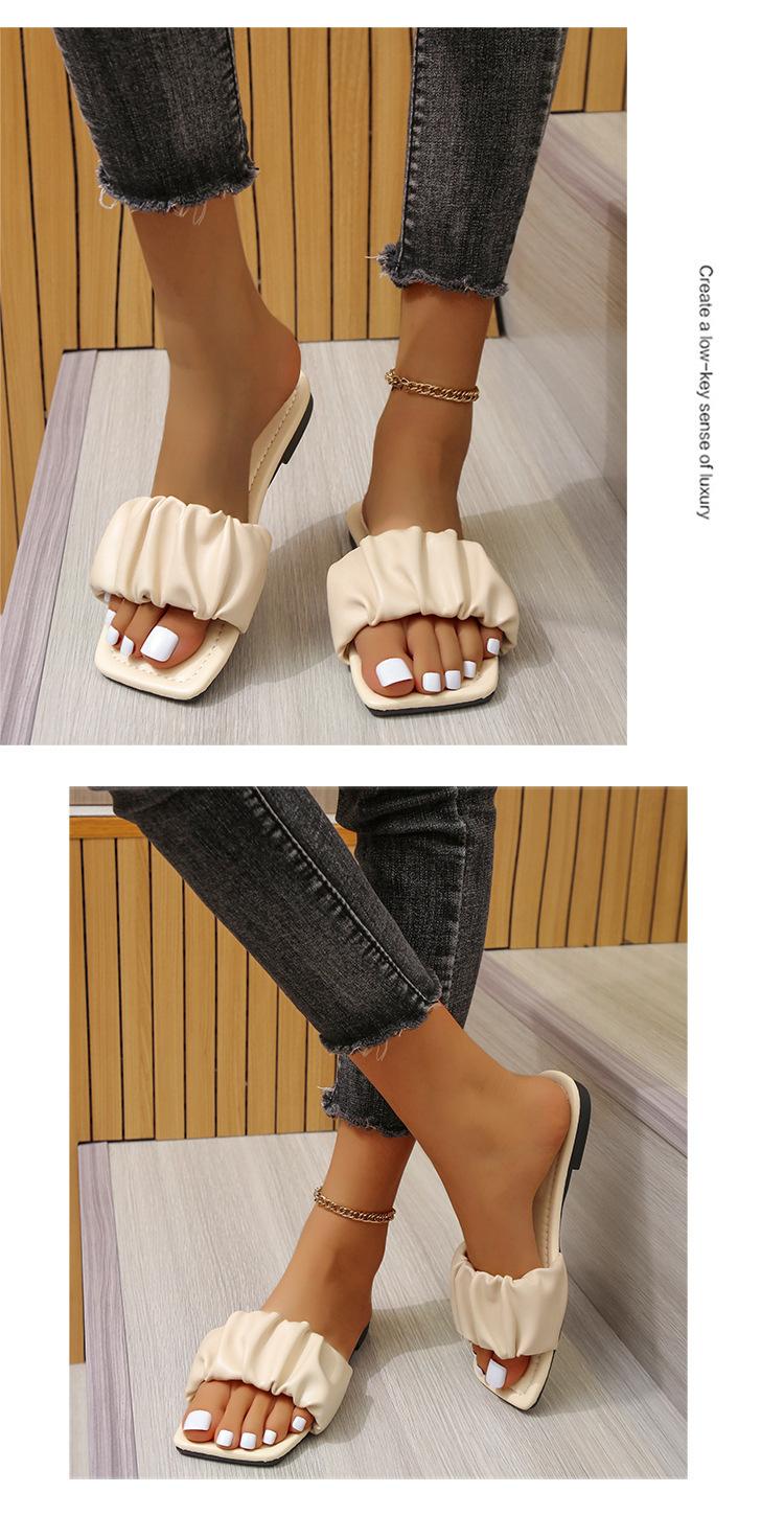 Sandalias planas para mujer 2024 Pantuflas estilo coreano Talla grande Pantuflas de verano Moda Plisado Comercio exterior Punta cuadrada Nuevo estilo