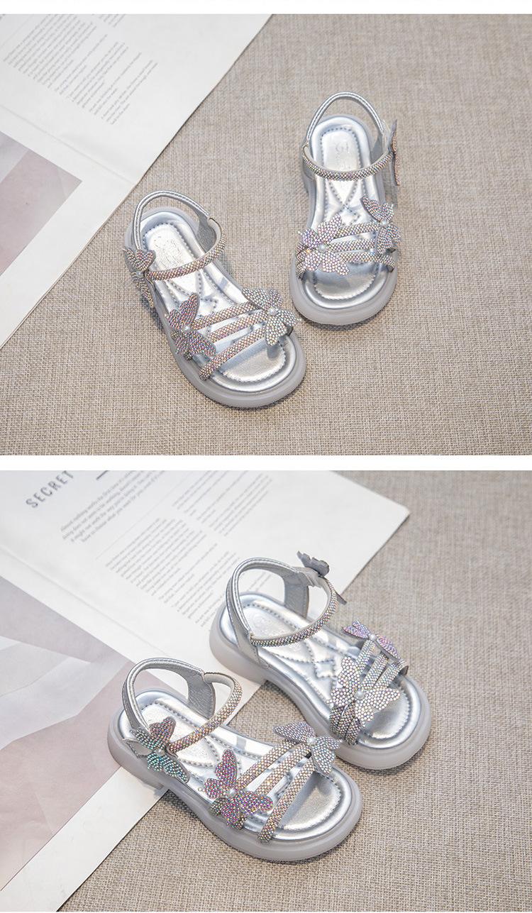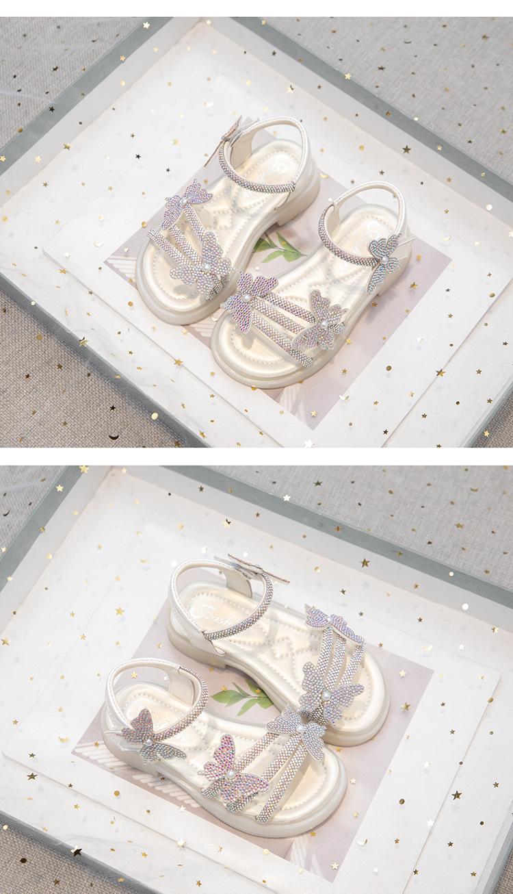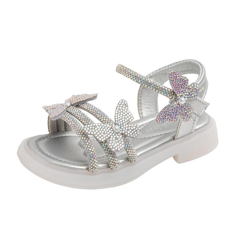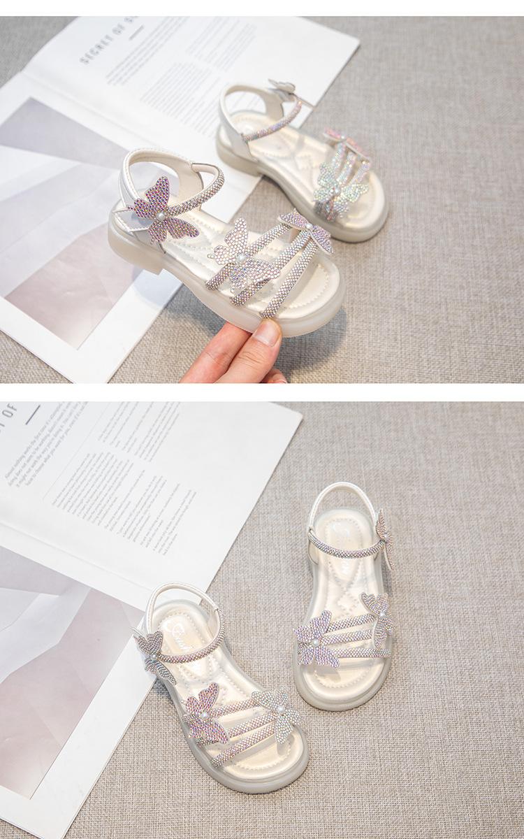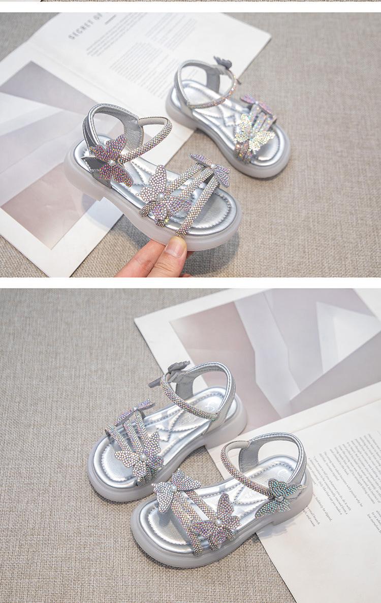 Zapatillas de punta abierta con mariposa de pedrería plana de talla grande para mujer 2025 Moda europea y americana Sandalias de uso bidireccional Sandalias para niños