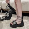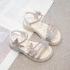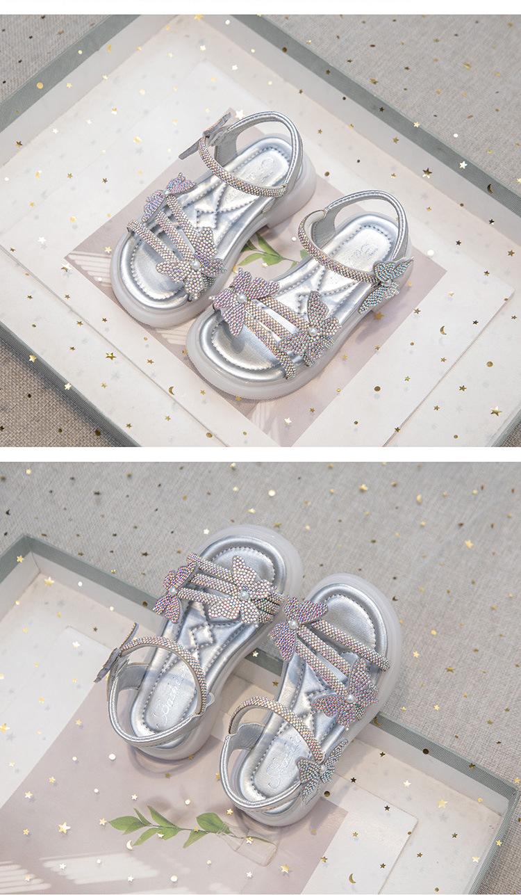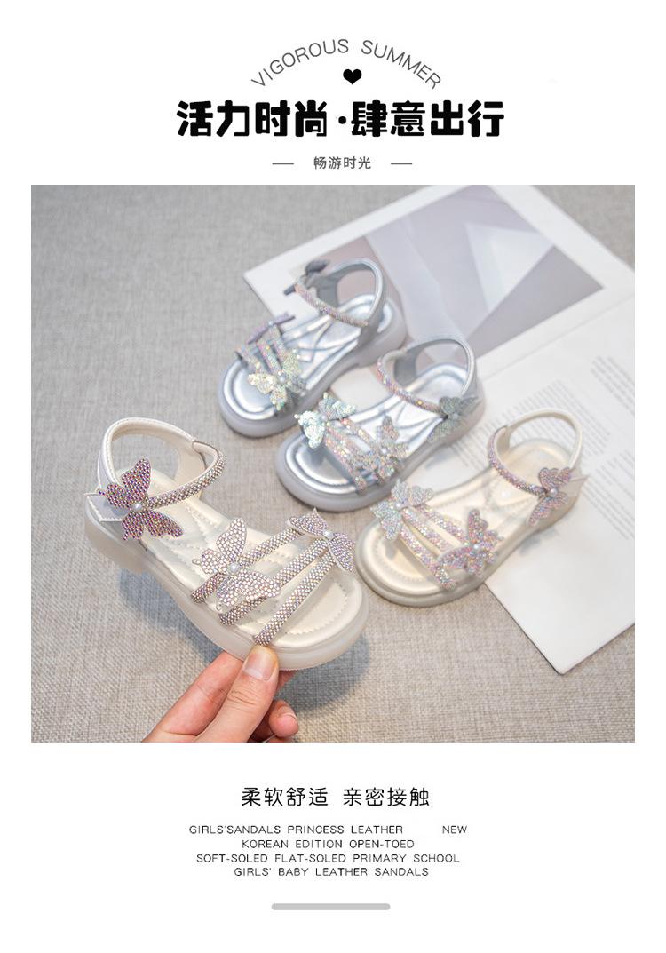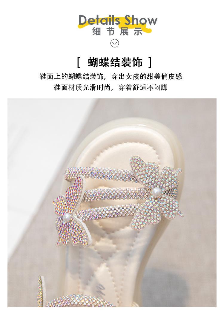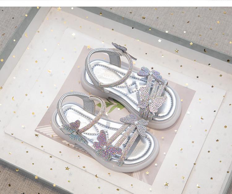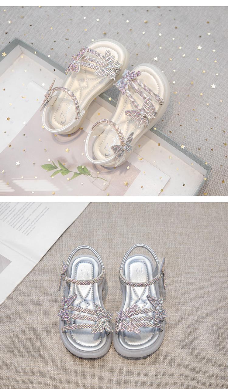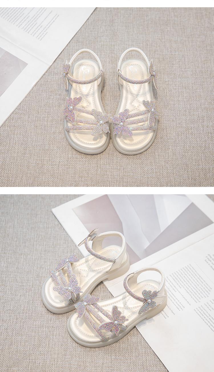 Zapatillas de punta abierta con mariposa de pedrería plana de talla grande para mujer 2025 Moda europea y americana Sandalias de uso bidireccional Sandalias para niños