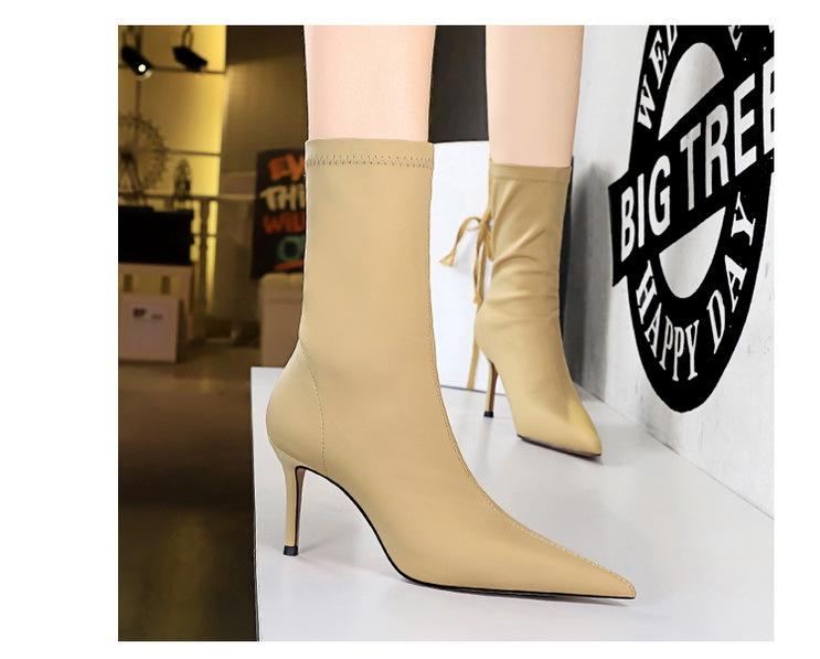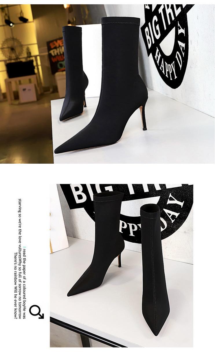 Elementos populares: Moda de estilo europeo y americano, simple y sexy, club nocturno, ajustado, tela elástica de licra, botas ajustadas, pedicura, pies delgados