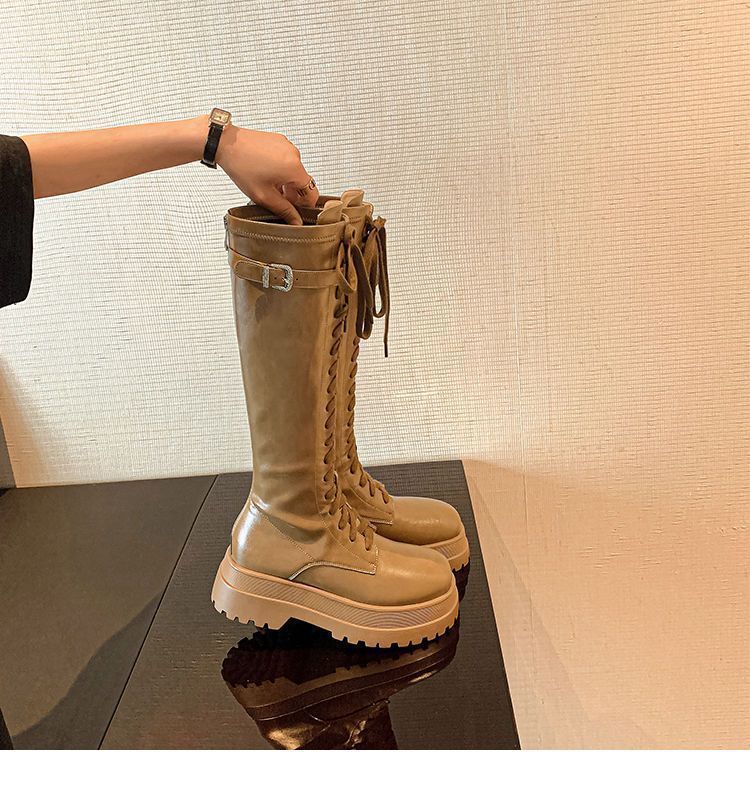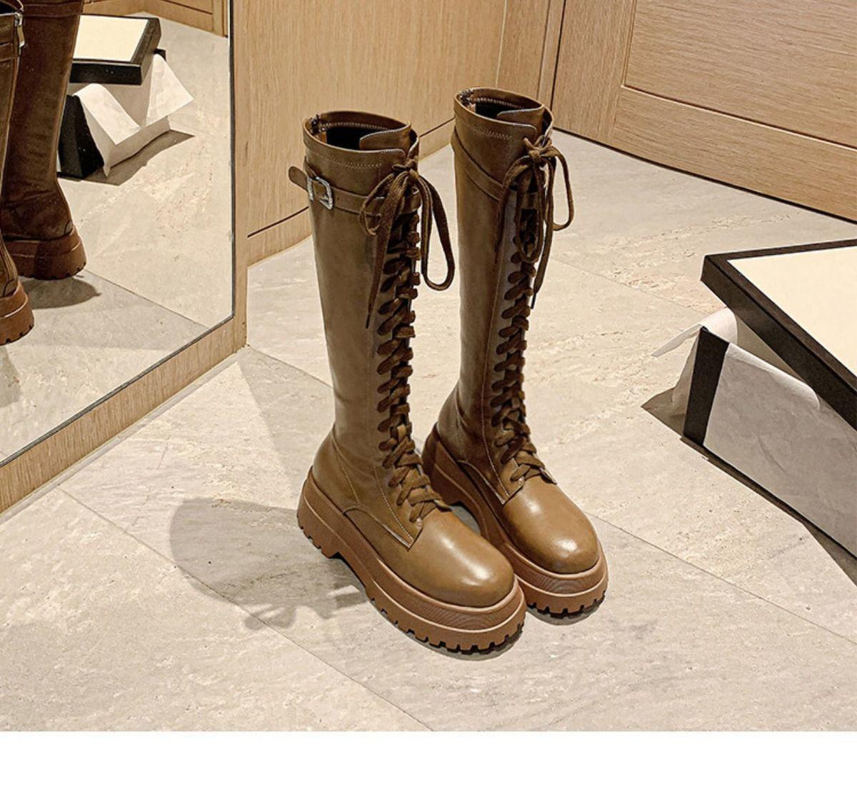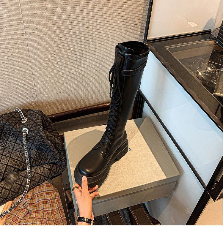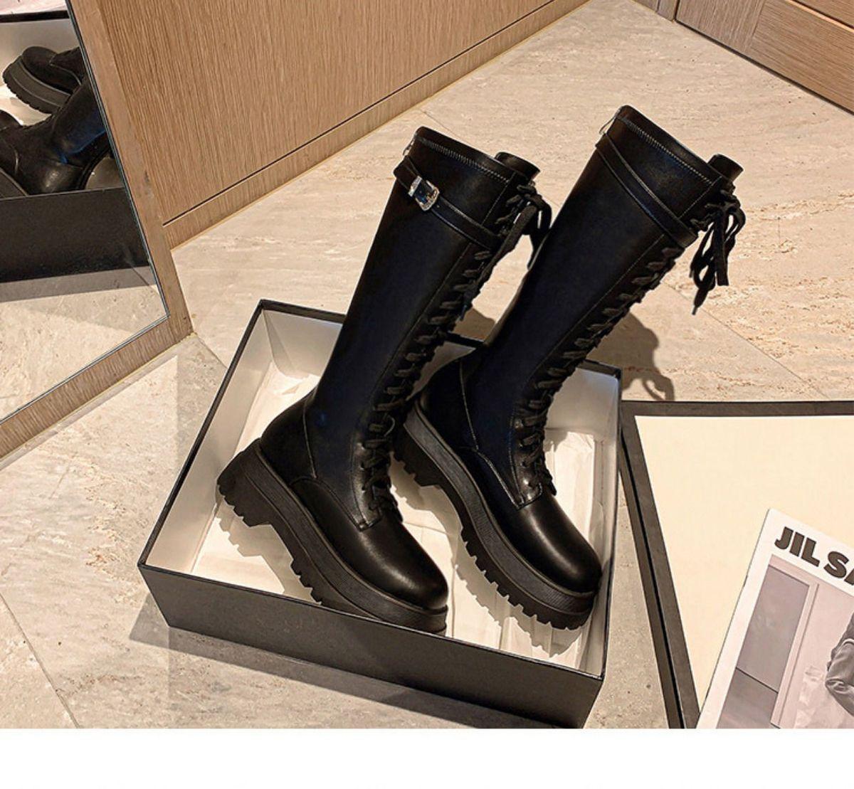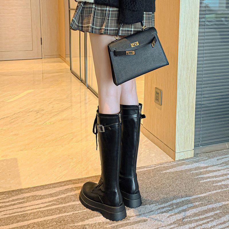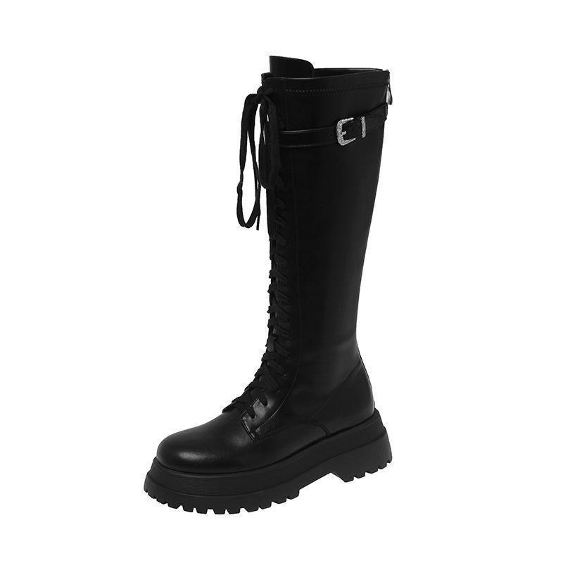 Botas Largas para Mujer, Estilo Británico, Botas de Caballero para Piernas Gruesas, Botas Altas de Caña Ancha de Talla Grande, Botas de Moda Adelgazantes Ins Trendy para Mujer