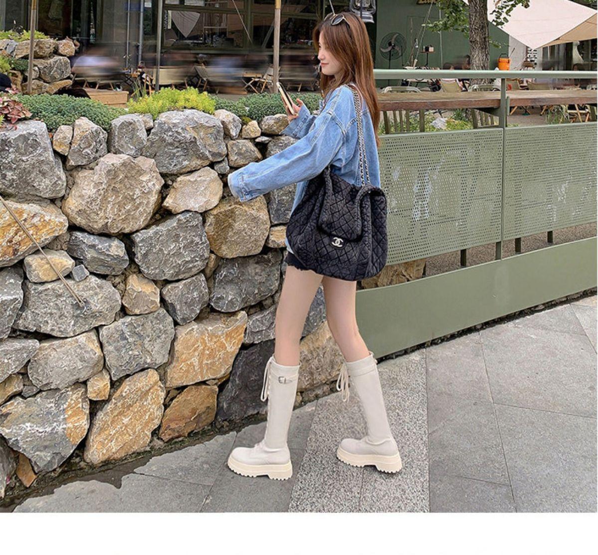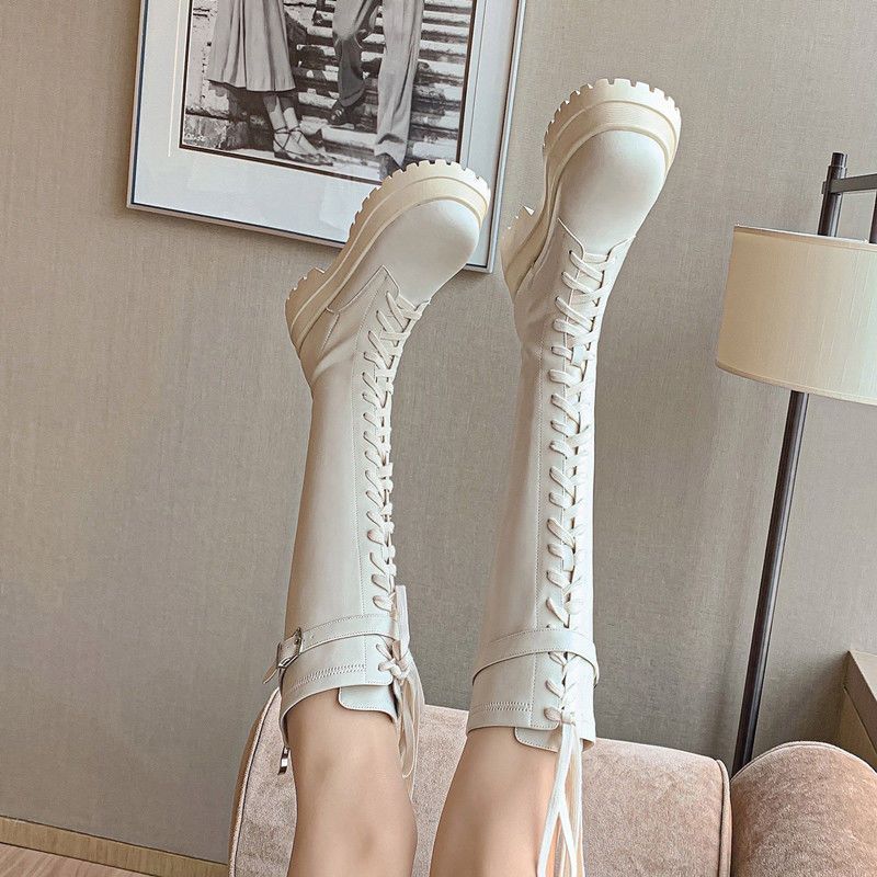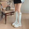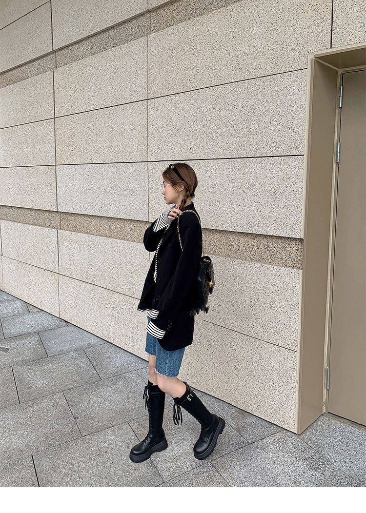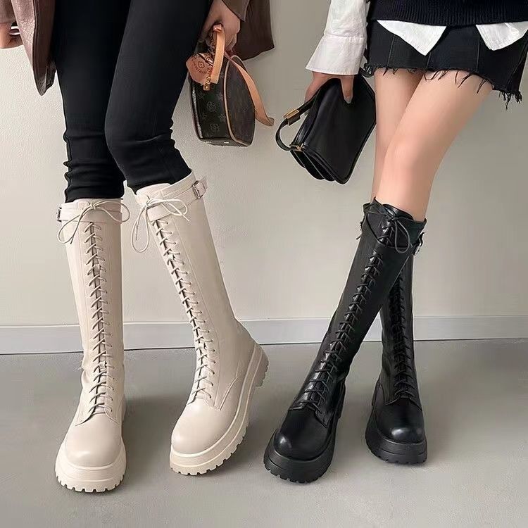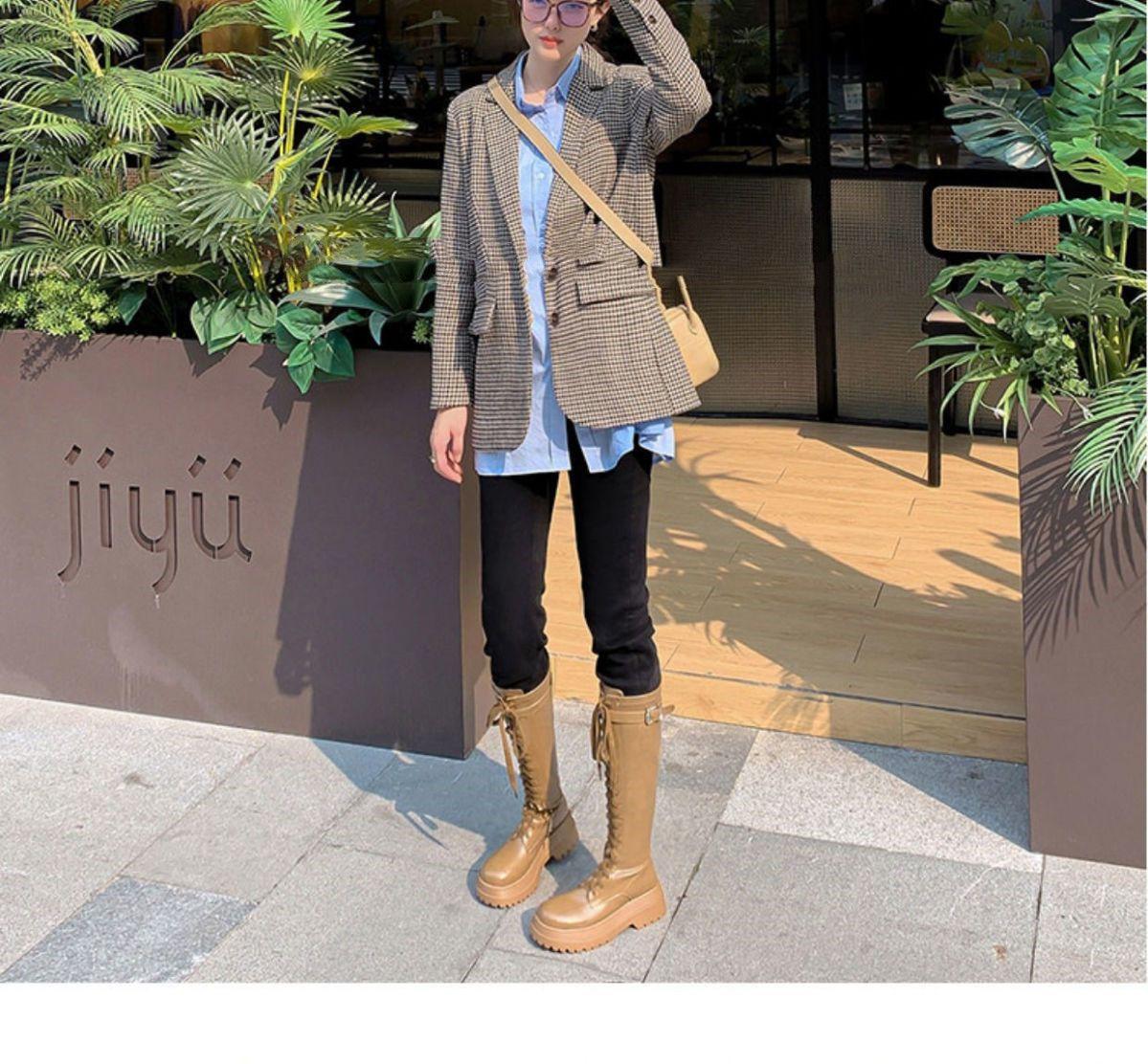 Botas Largas para Mujer, Estilo Británico, Botas de Caballero para Piernas Gruesas, Botas Altas de Caña Ancha de Talla Grande, Botas de Moda Adelgazantes Ins Trendy para Mujer