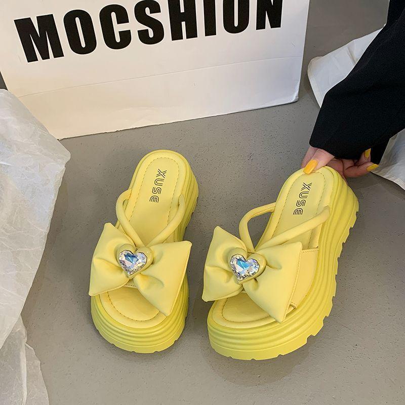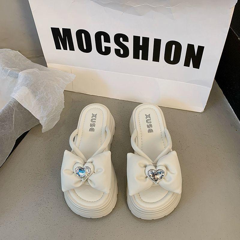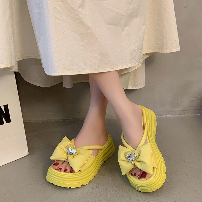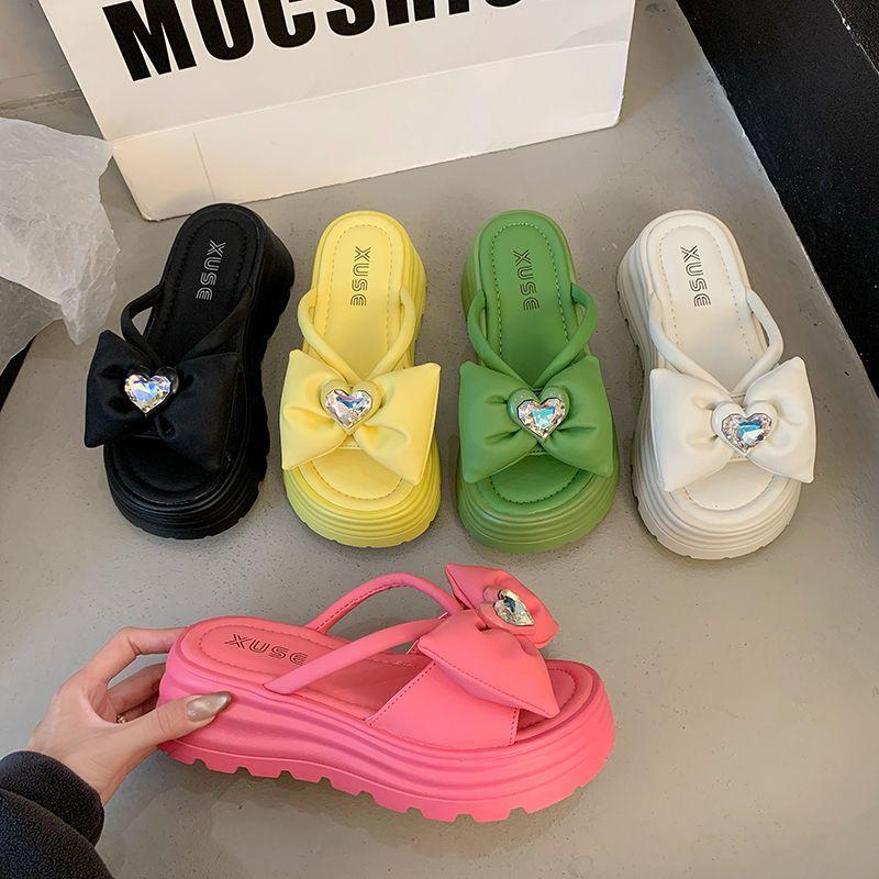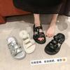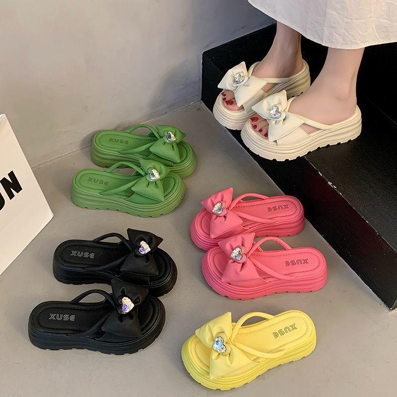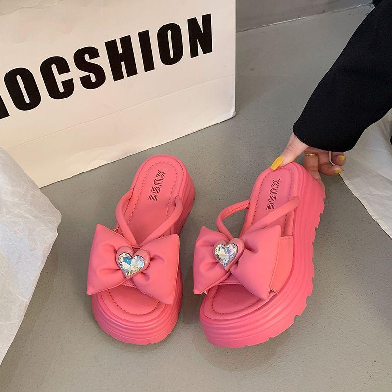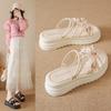 Sandalias de Hada para Mujer 2025 Nuevo Verano Plataforma de Uso Exterior Versátil Lazo Suela Gruesa Pedrería Chanclas de Playa
