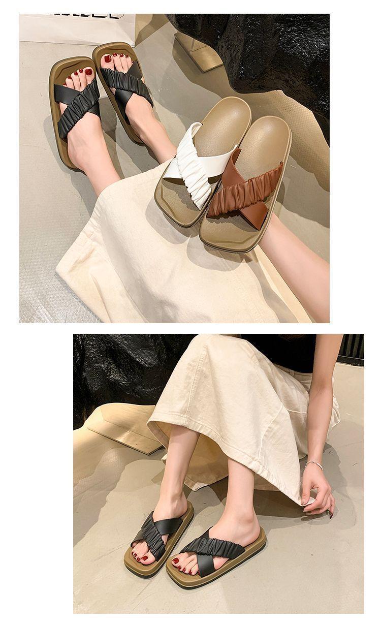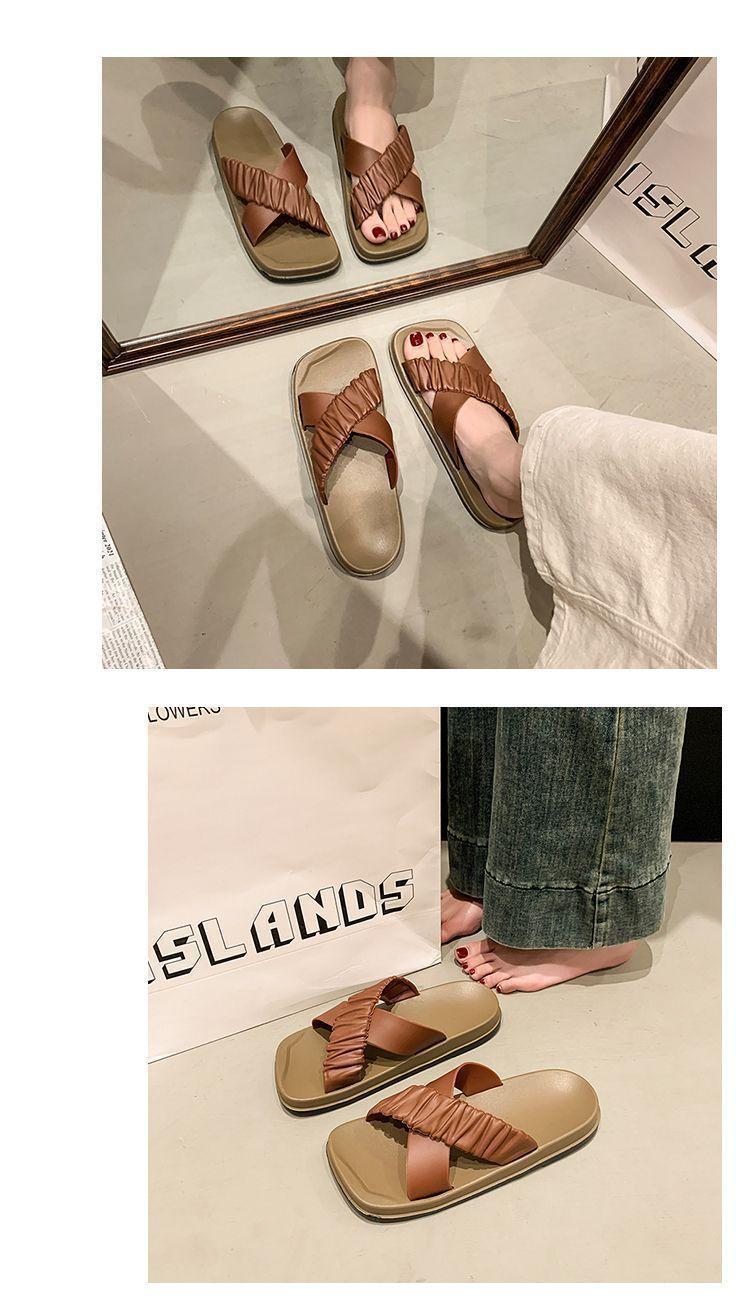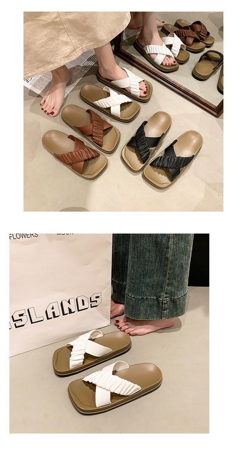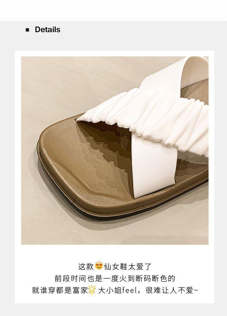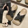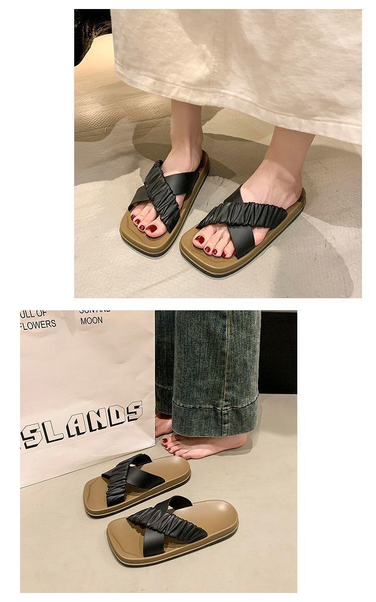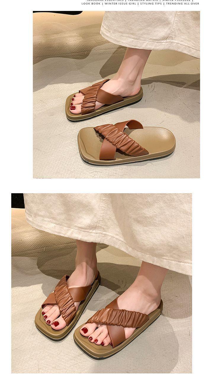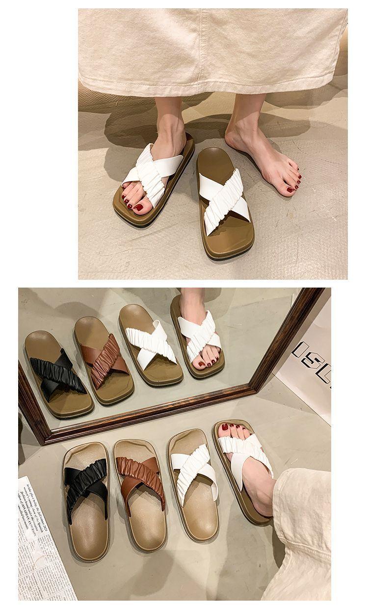 Sandalias planas versátiles de hadas estilo retro plisadas cruzadas zapatillas slip-on para mujer 2025 verano y otoño nuevo estilo