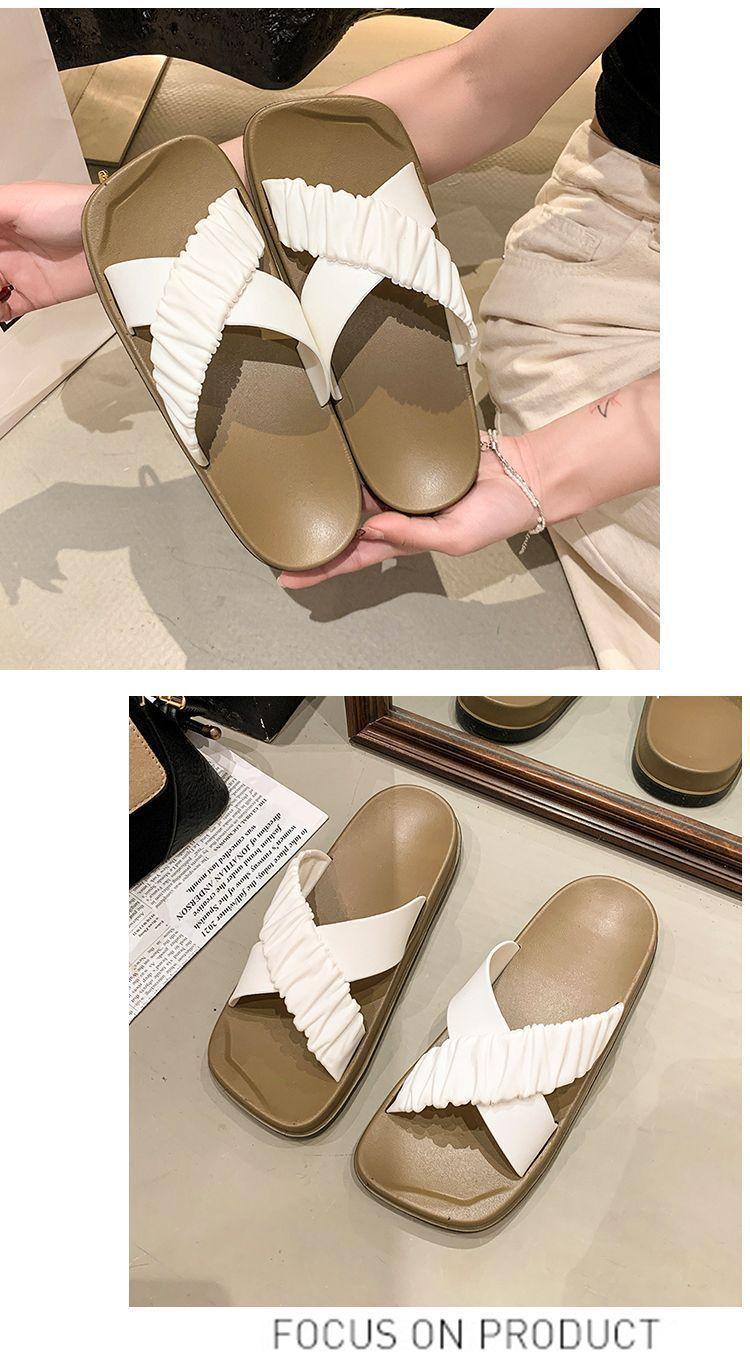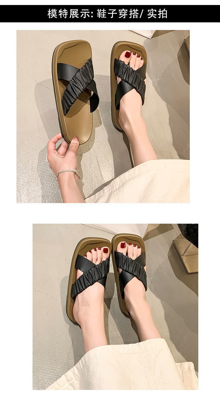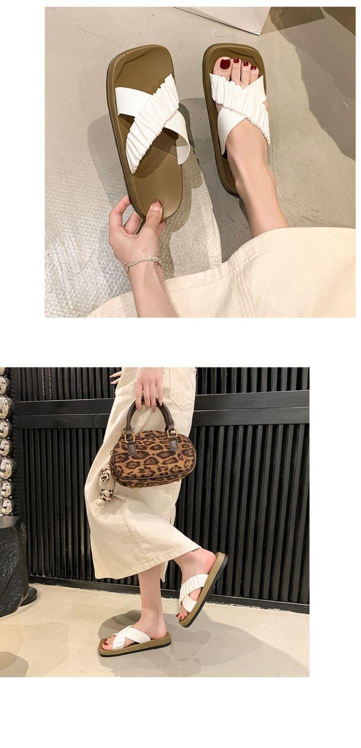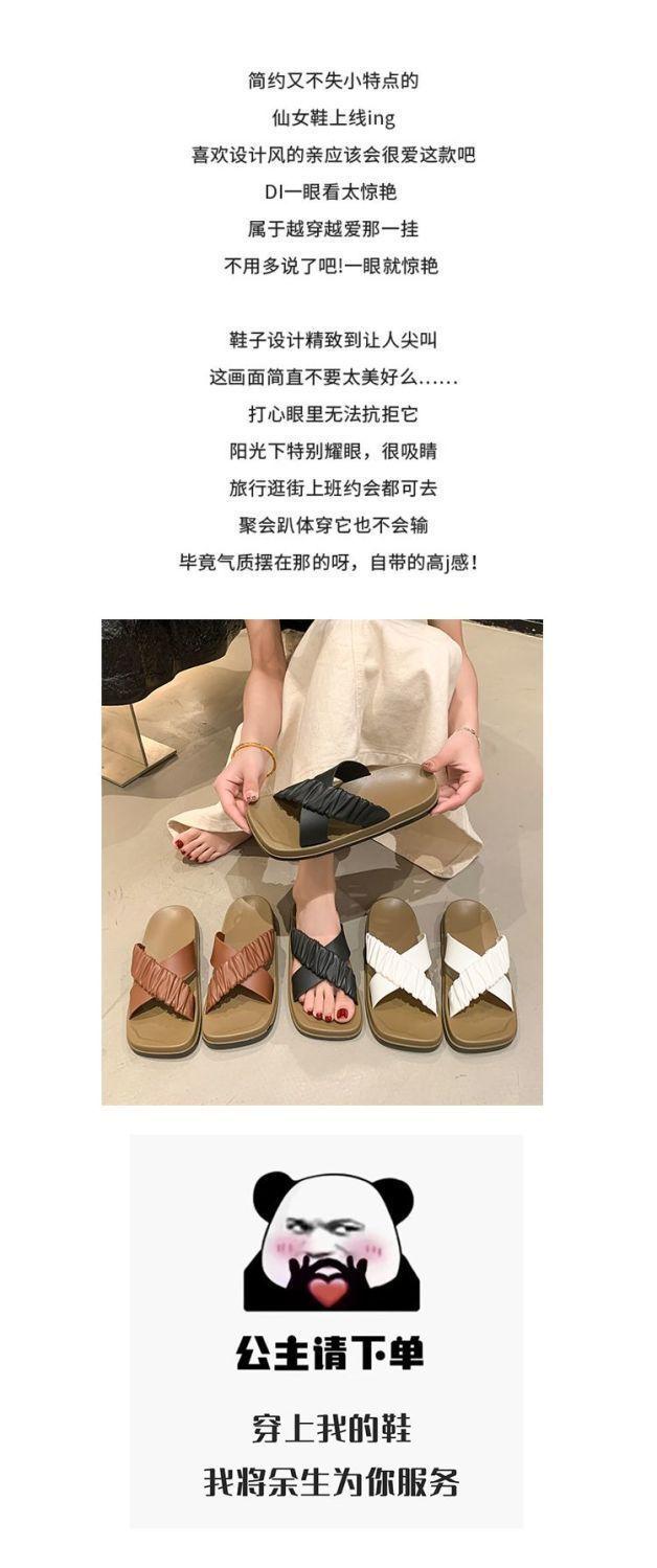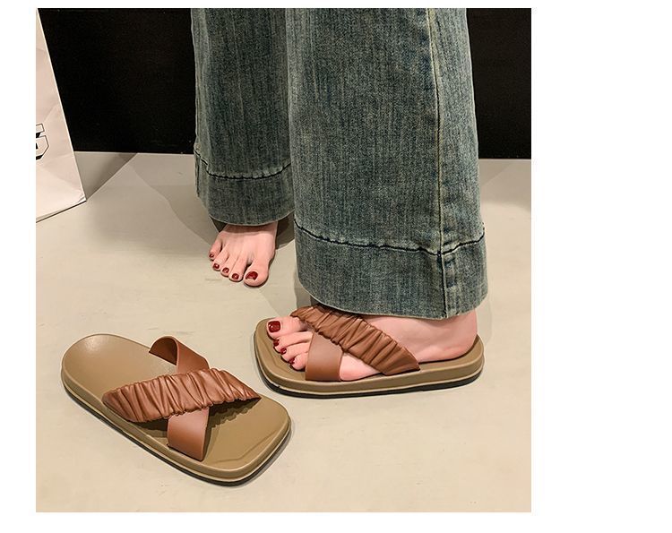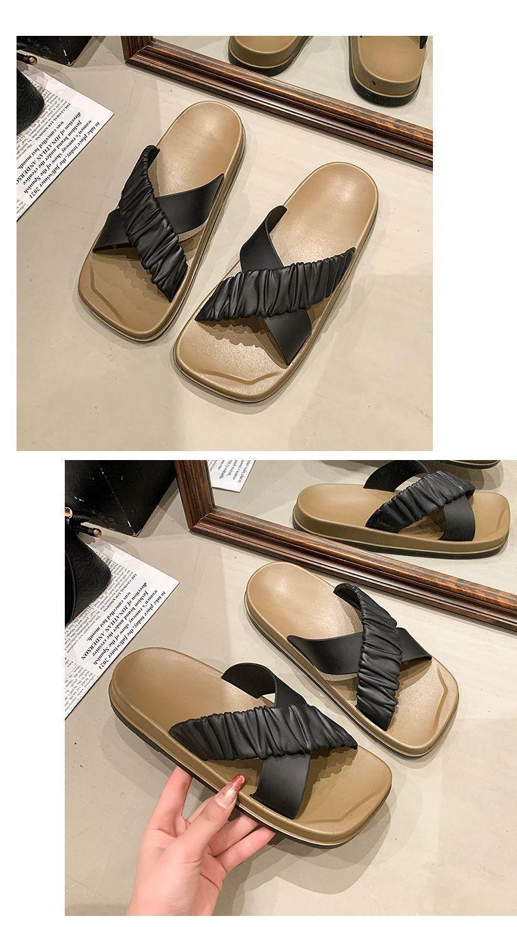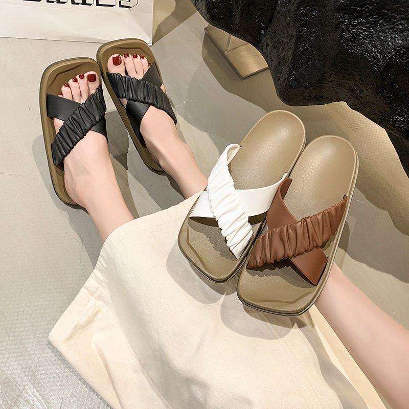 Sandalias planas versátiles de hadas estilo retro plisadas cruzadas zapatillas slip-on para mujer 2025 verano y otoño nuevo estilo