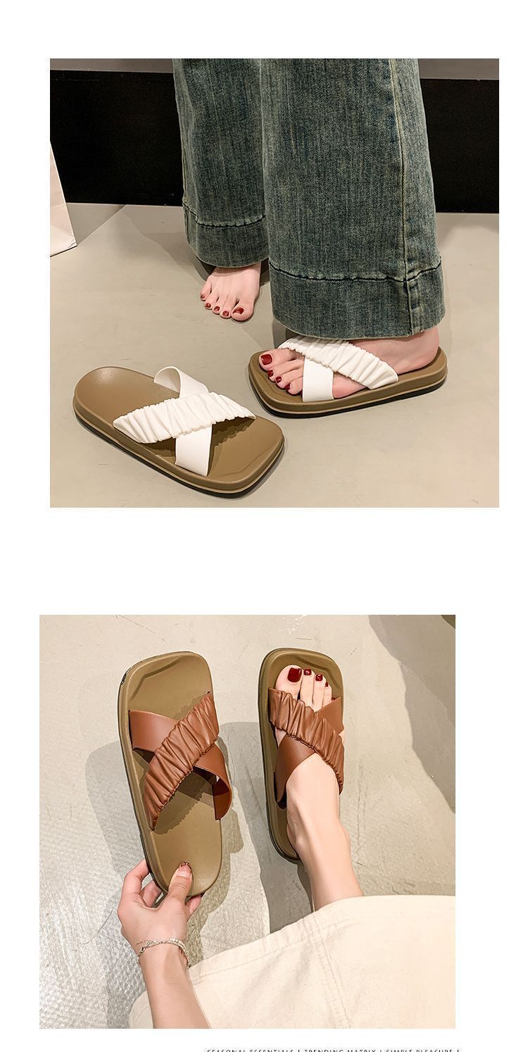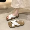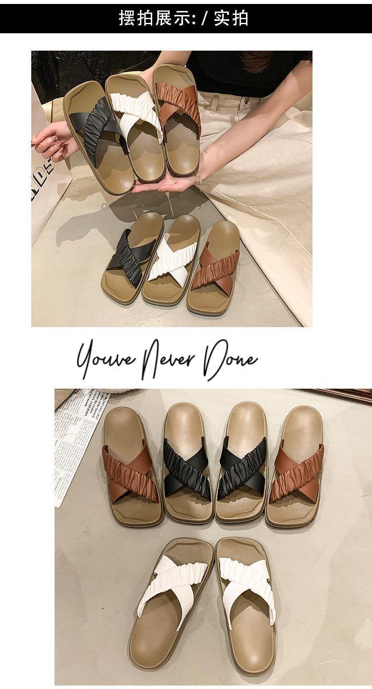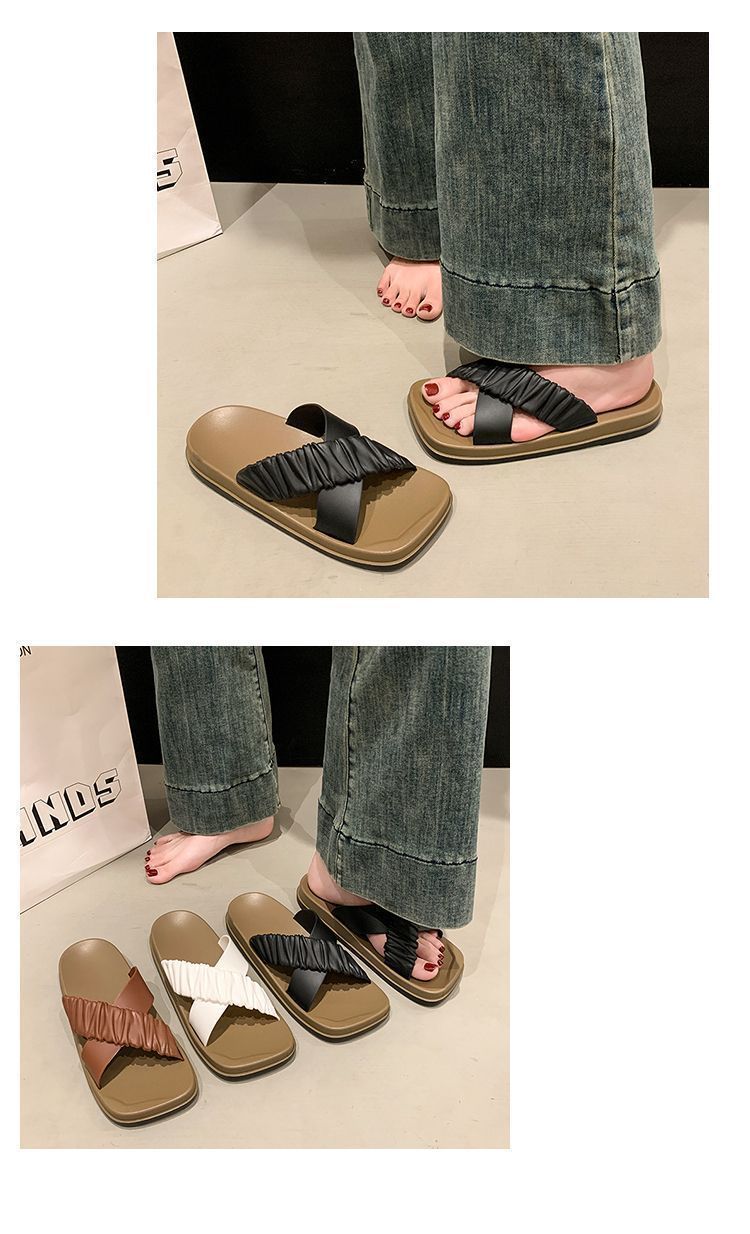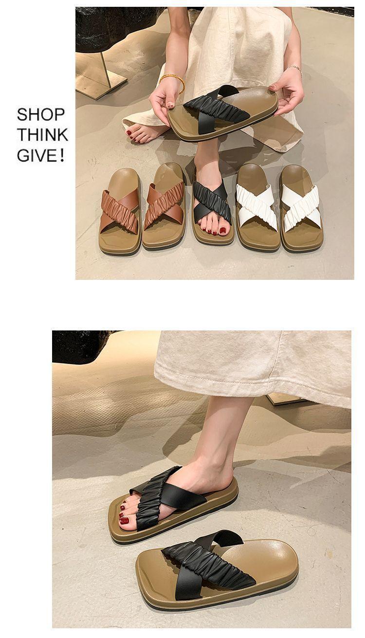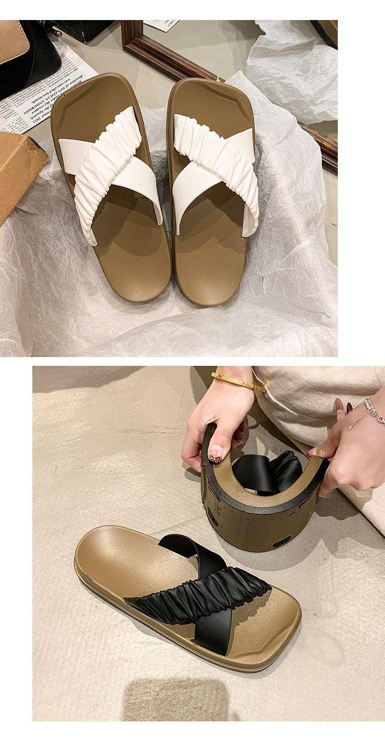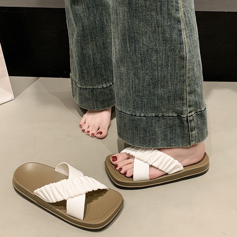 Sandalias planas versátiles de hadas estilo retro plisadas cruzadas zapatillas slip-on para mujer 2025 verano y otoño nuevo estilo