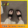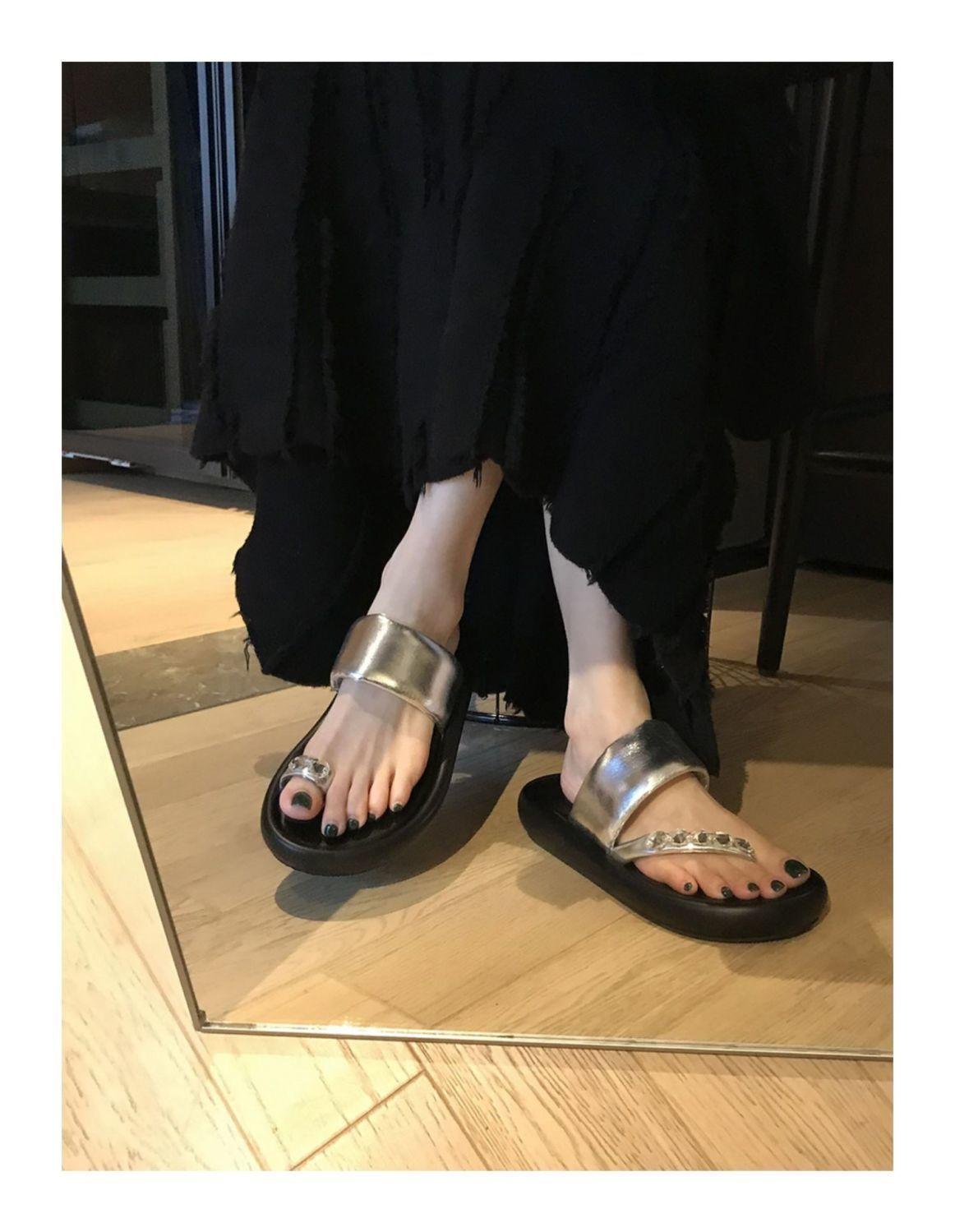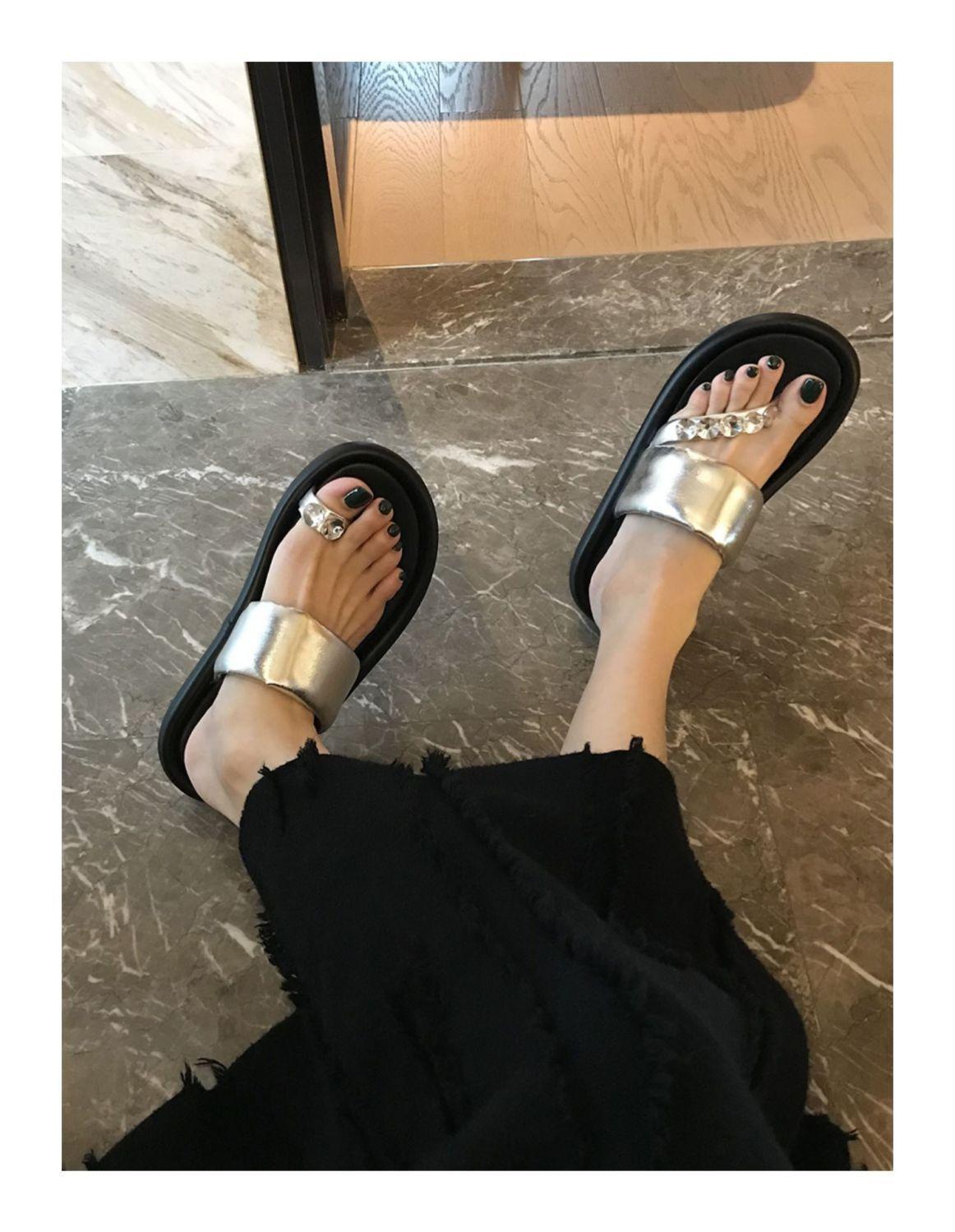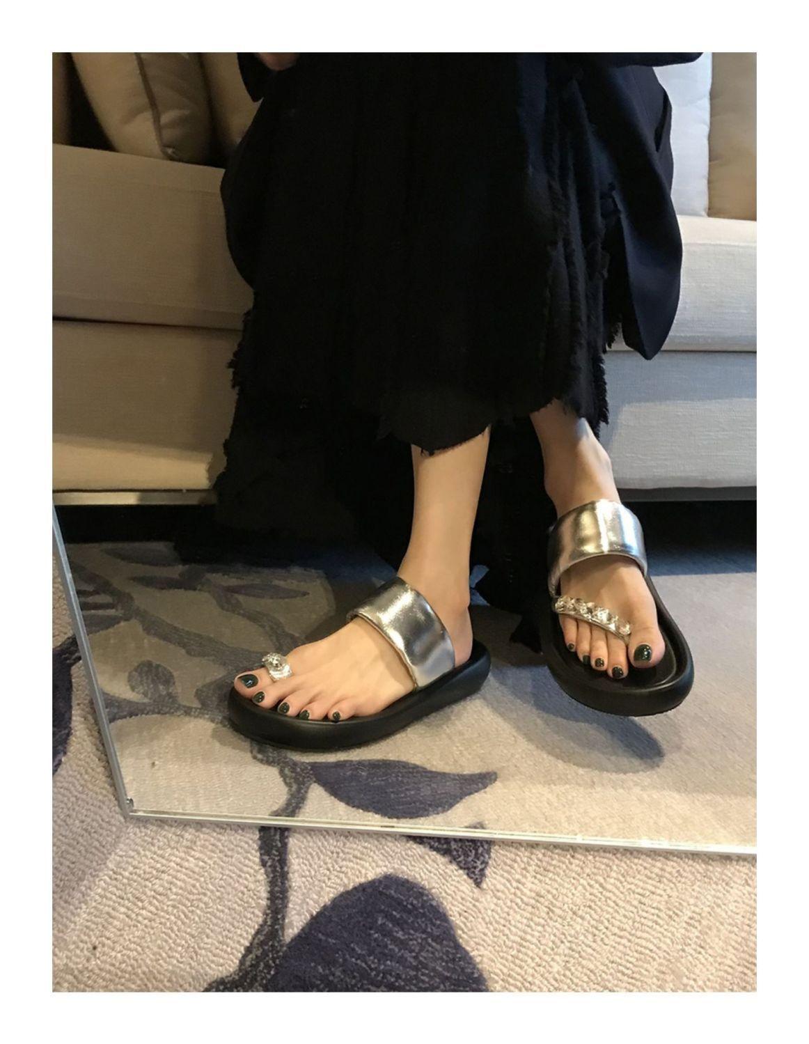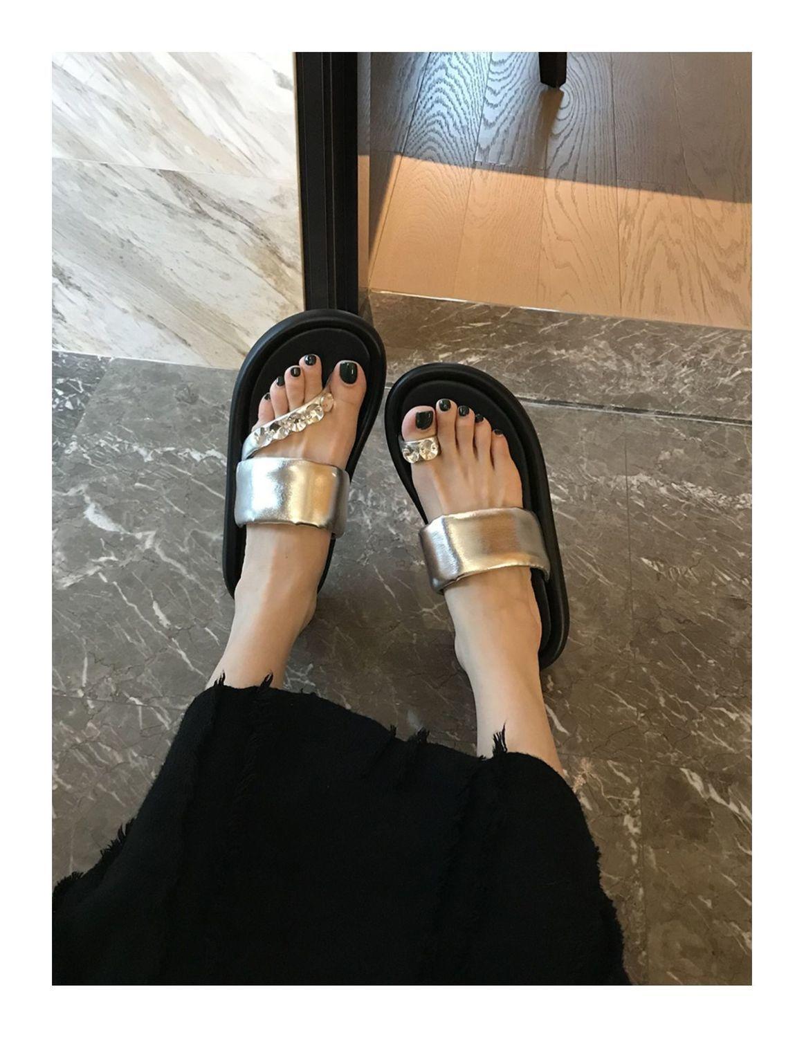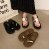 Pantuflas de tanga de una línea de estilo hada con suela gruesa antideslizante y pedrería para uso exterior 2025 Verano Nuevo estilo Pantuflas para mujer
