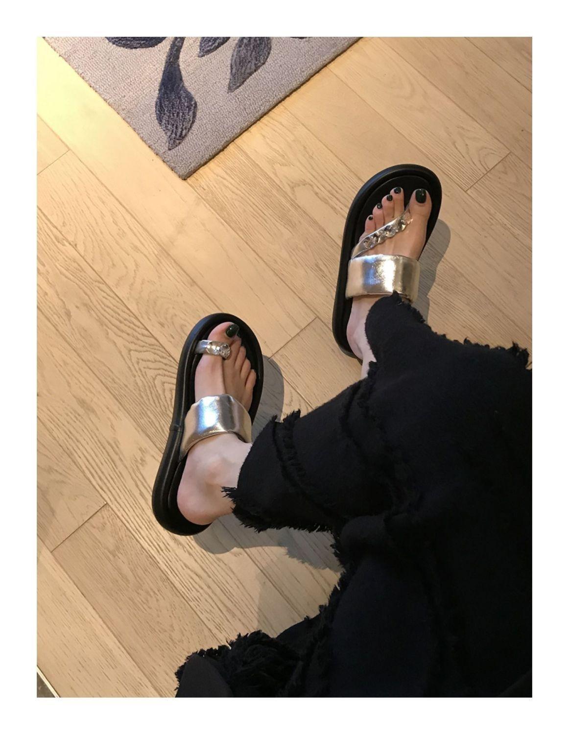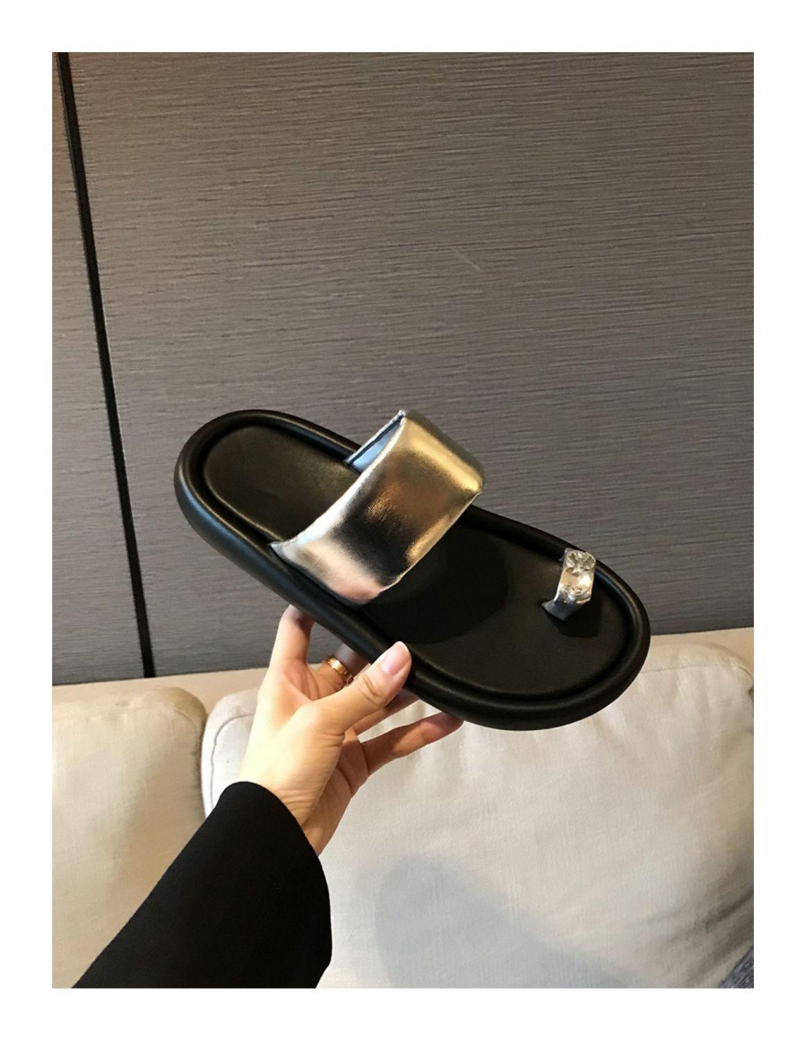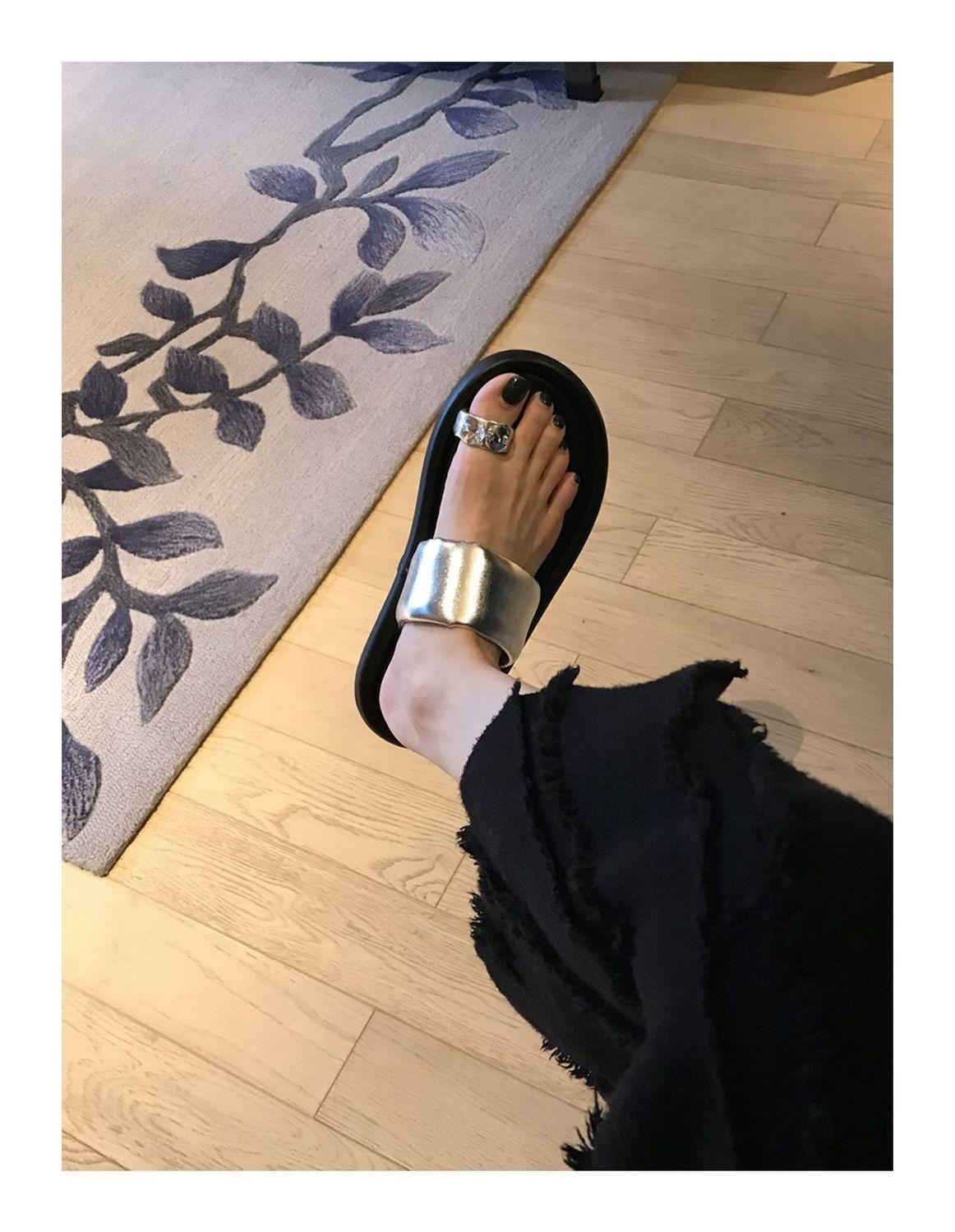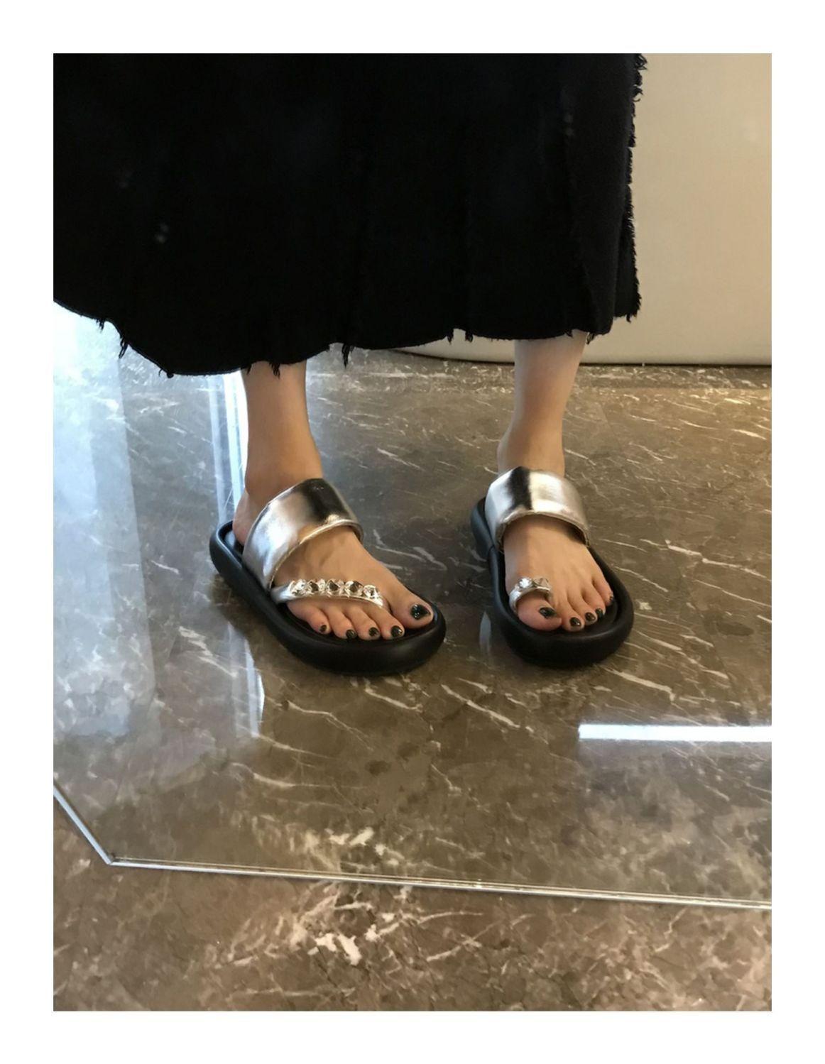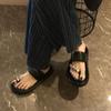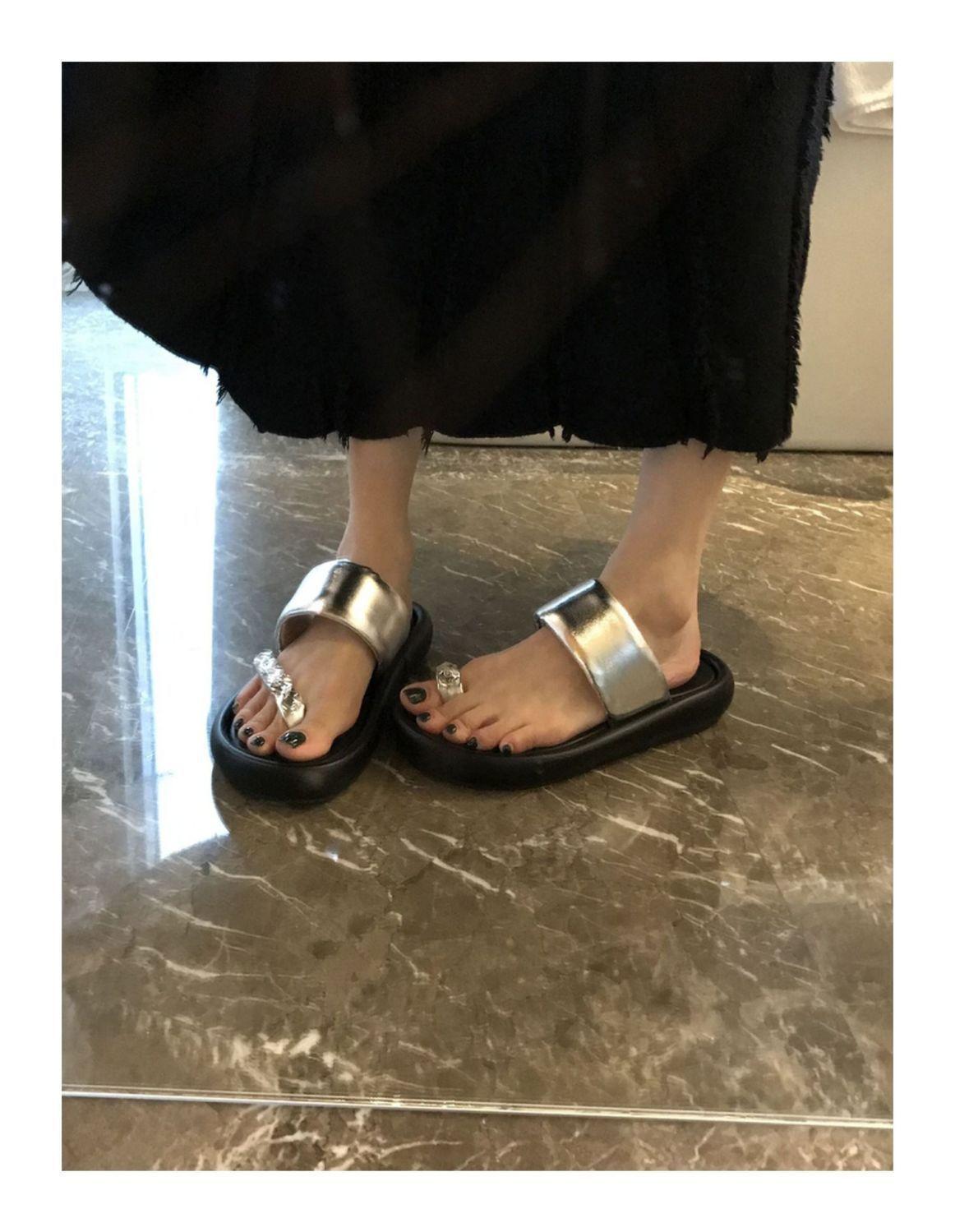 Pantuflas de tanga de una línea de estilo hada con suela gruesa antideslizante y pedrería para uso exterior 2025 Verano Nuevo estilo Pantuflas para mujer