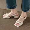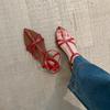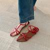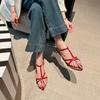 Versión de Piel de Vaca del Mismo Estilo, Nuevas Sandalias Romanas Elegantes de Verano con Tiras Cruzadas Francesas, Punta Puntiaguda, Punta Abierta y Tacón Medio para Mujer