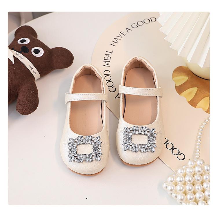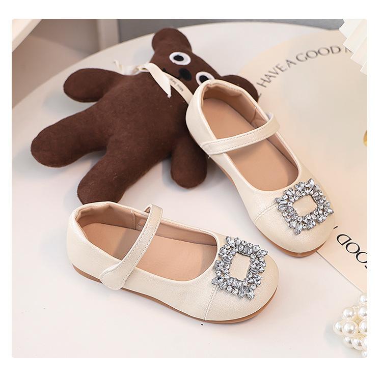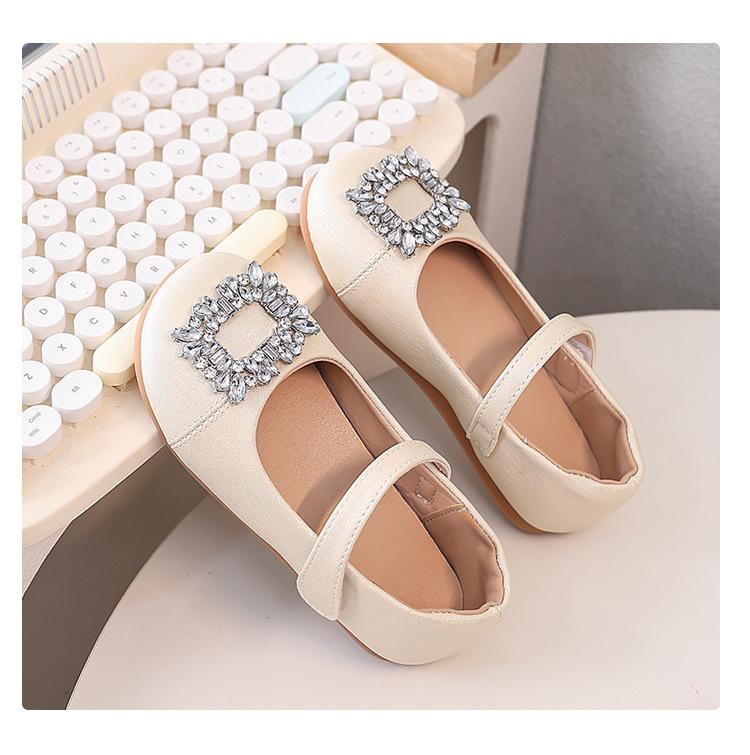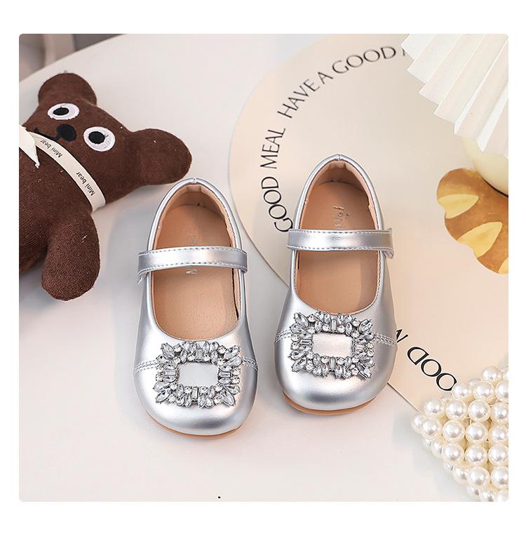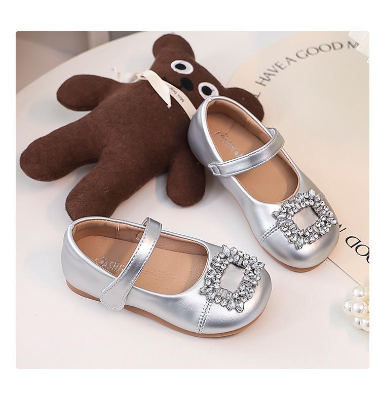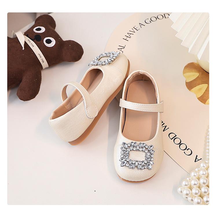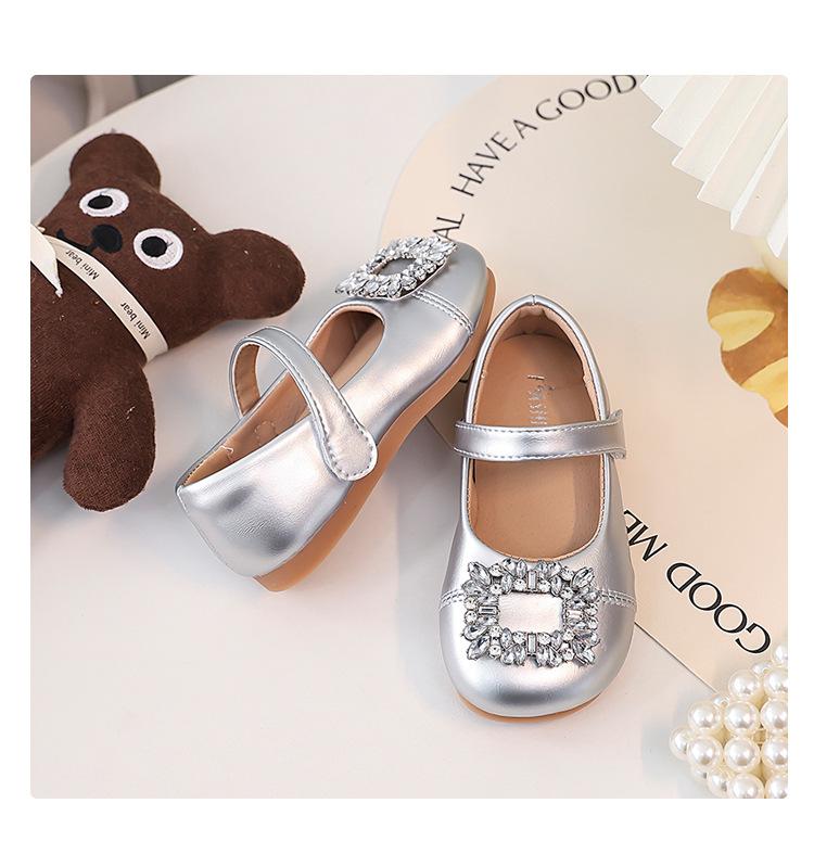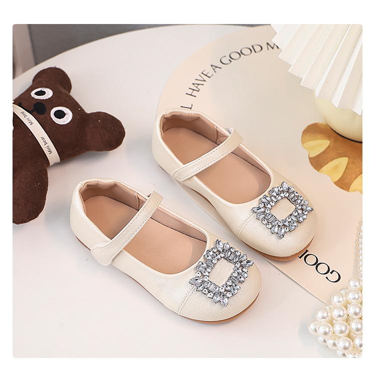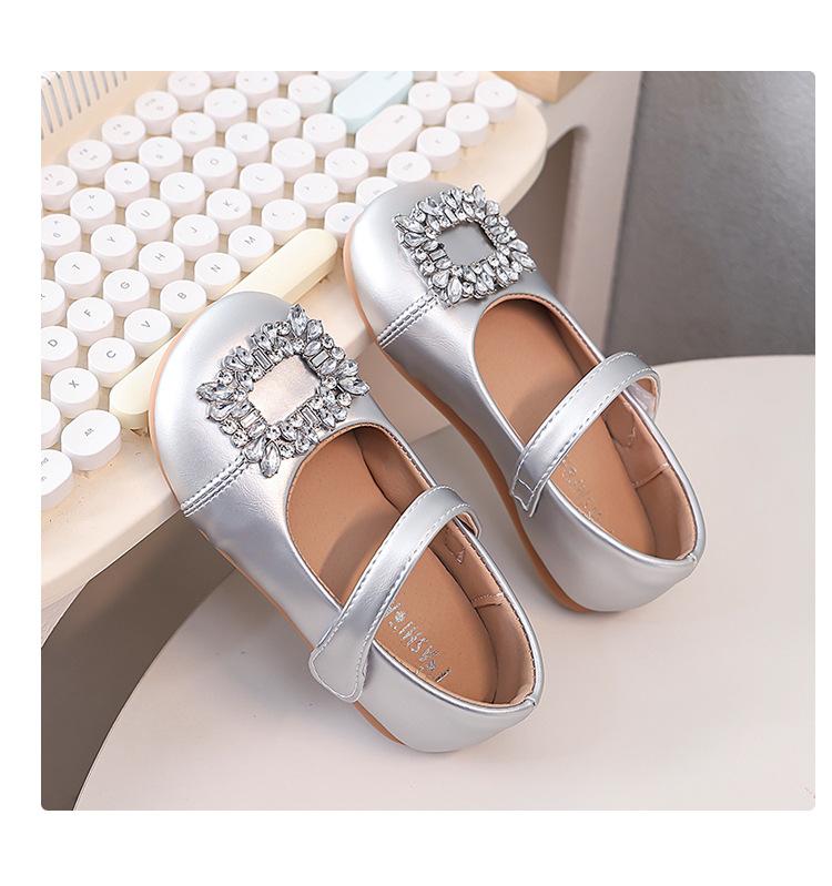 Zapatos de Cuero para Niñas Zapatos de Princesa de Cristal 2025 Primavera y Otoño Nuevos Zapatos Negros de Rendimiento de Suela Suave para Niños Bebé Niñas Pequeñas