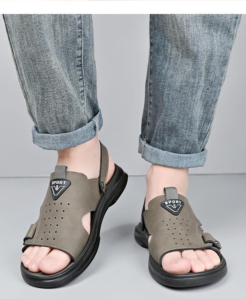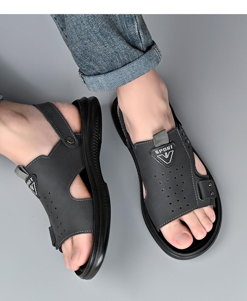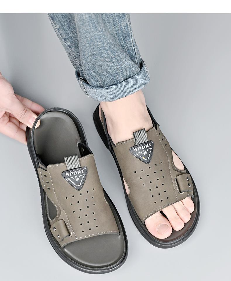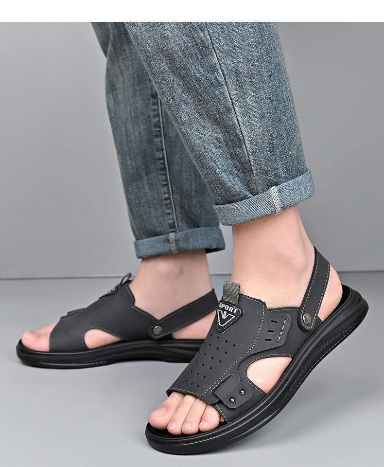 Dropshipping Transfronterizo 2025 Nuevas Sandalias de Verano Zapatos de Playa de Cuero Genuino para Hombre Ropa Exterior Antideslizante Talla Grande Sandalias Casuales para Hombre