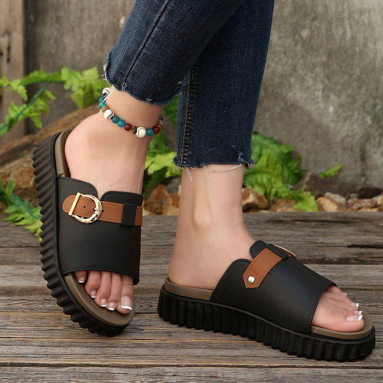 Pantuflas de Moda Antideslizantes de Talla Grande, Zapatos Versátiles para Mujer, Pantuflas Elegantes, Sandalias Populares de Suela Gruesa 2025 Nuevos Estilos de Verano y Otoño