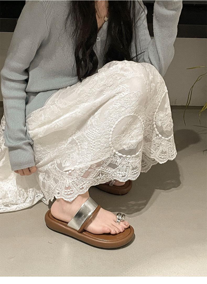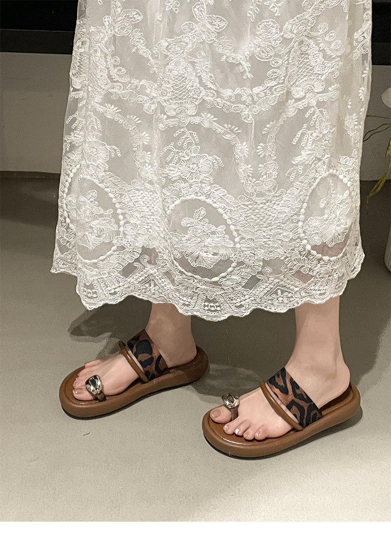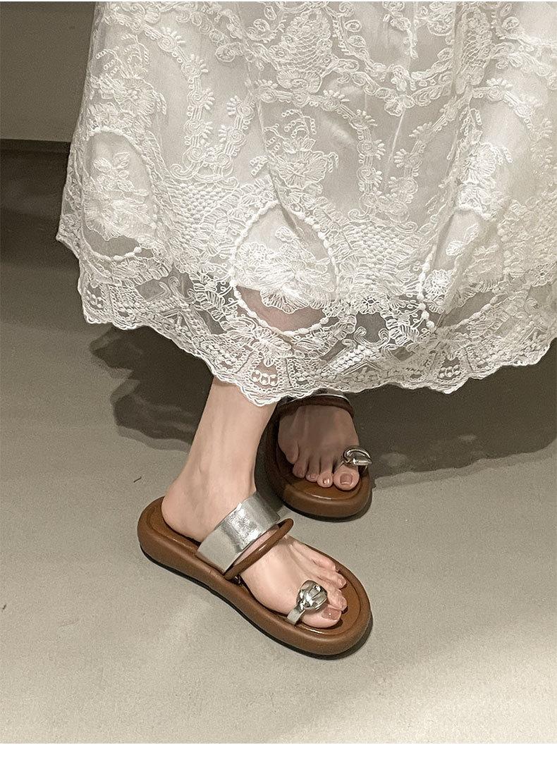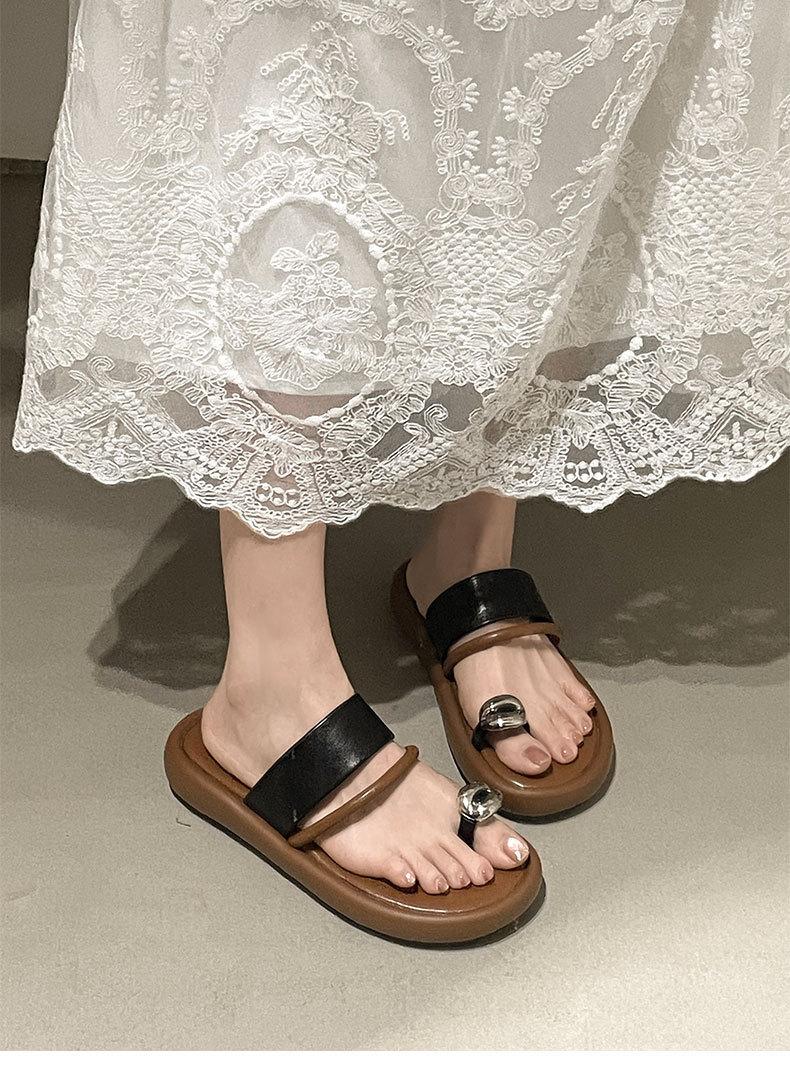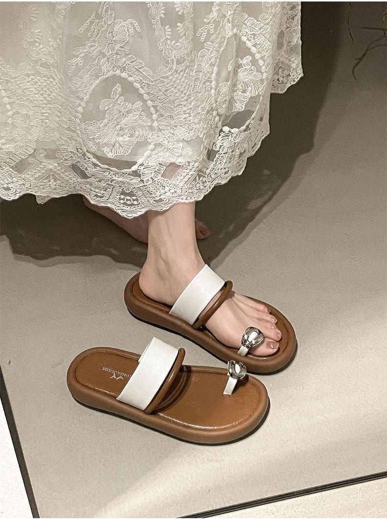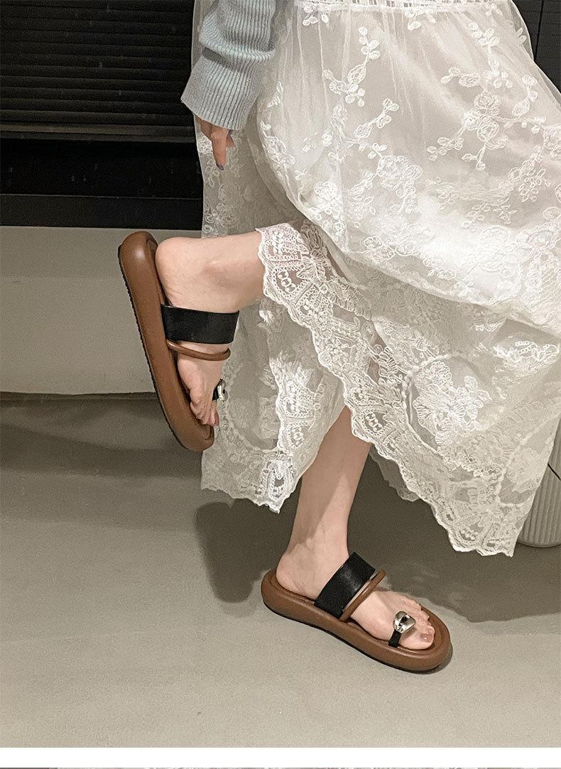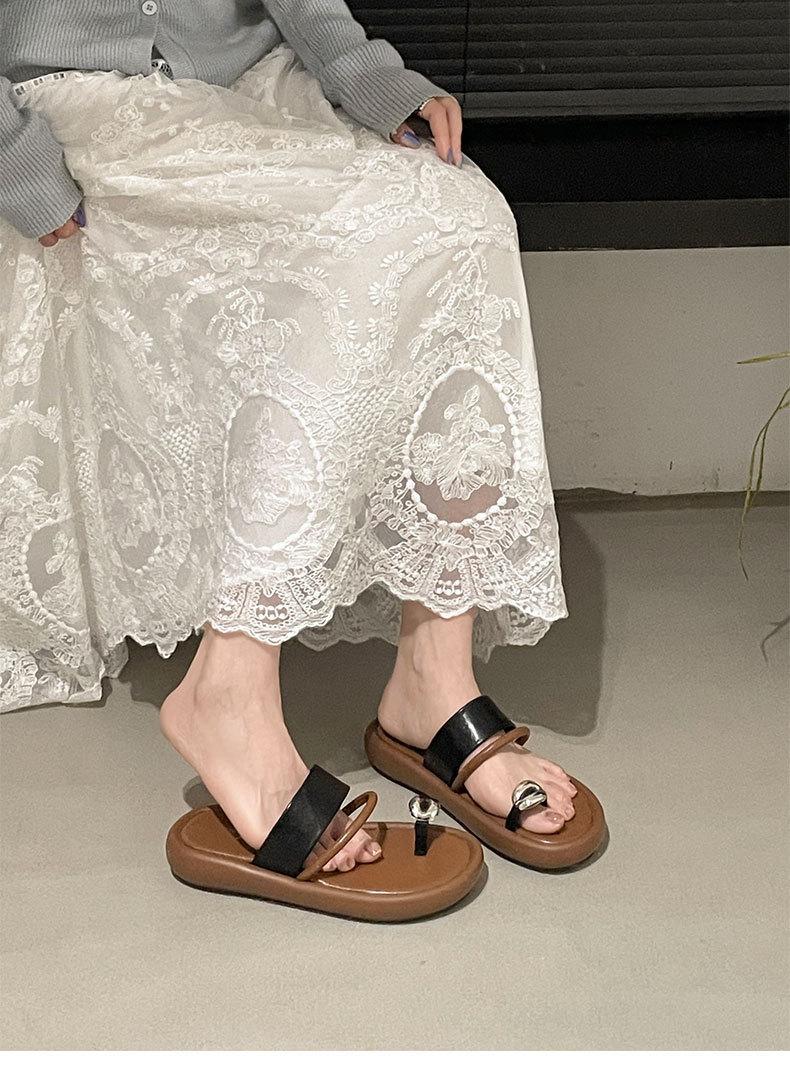 Pantuflas de Moda Retro Antideslizantes de Suela Gruesa para Mujer Verano para Exterior 2025 Nuevo Estilo con Falda Sandalias Francesas