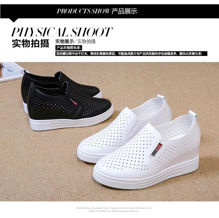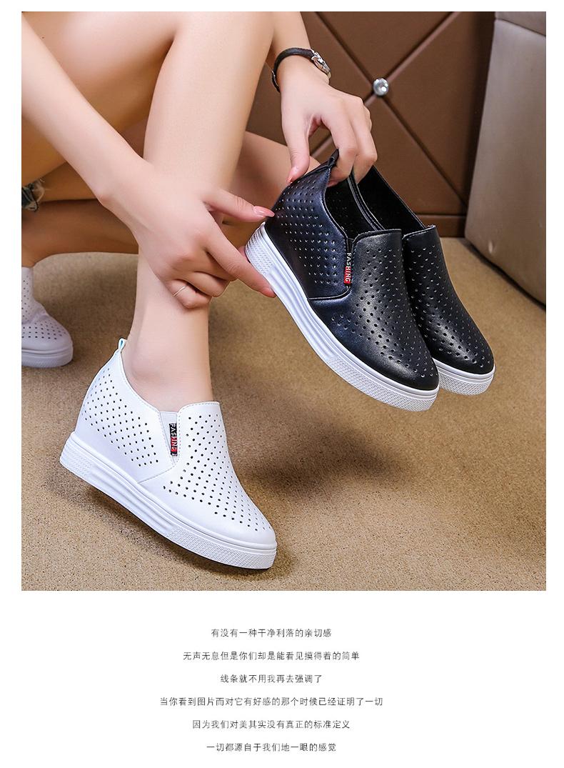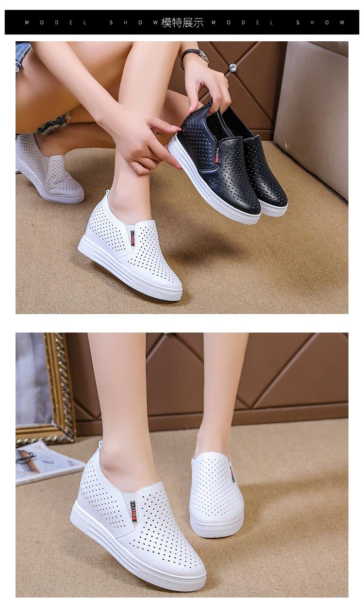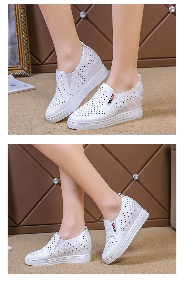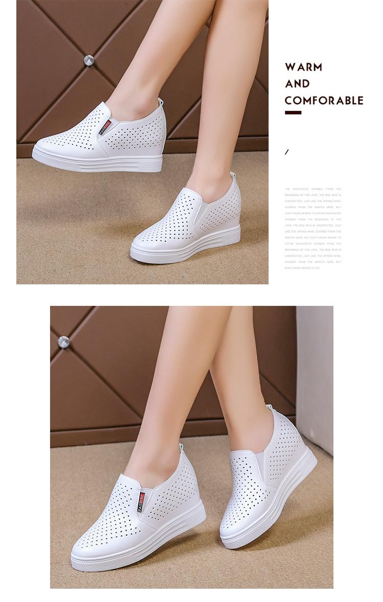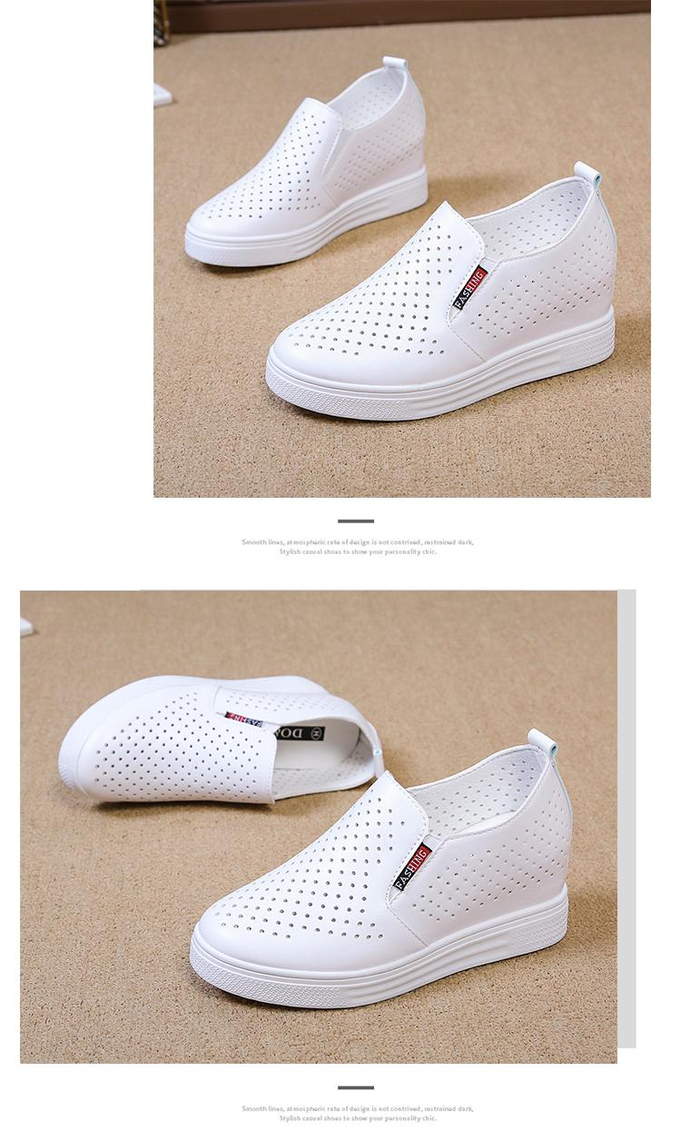 Primavera y Verano 2025 Nuevos Zapatos Blancos Versátiles con Aberturas Transpirables con Aumento de Altura Interno Zapatos Casuales de Cuña Slip-On para Mujer Zapatos Perezosos