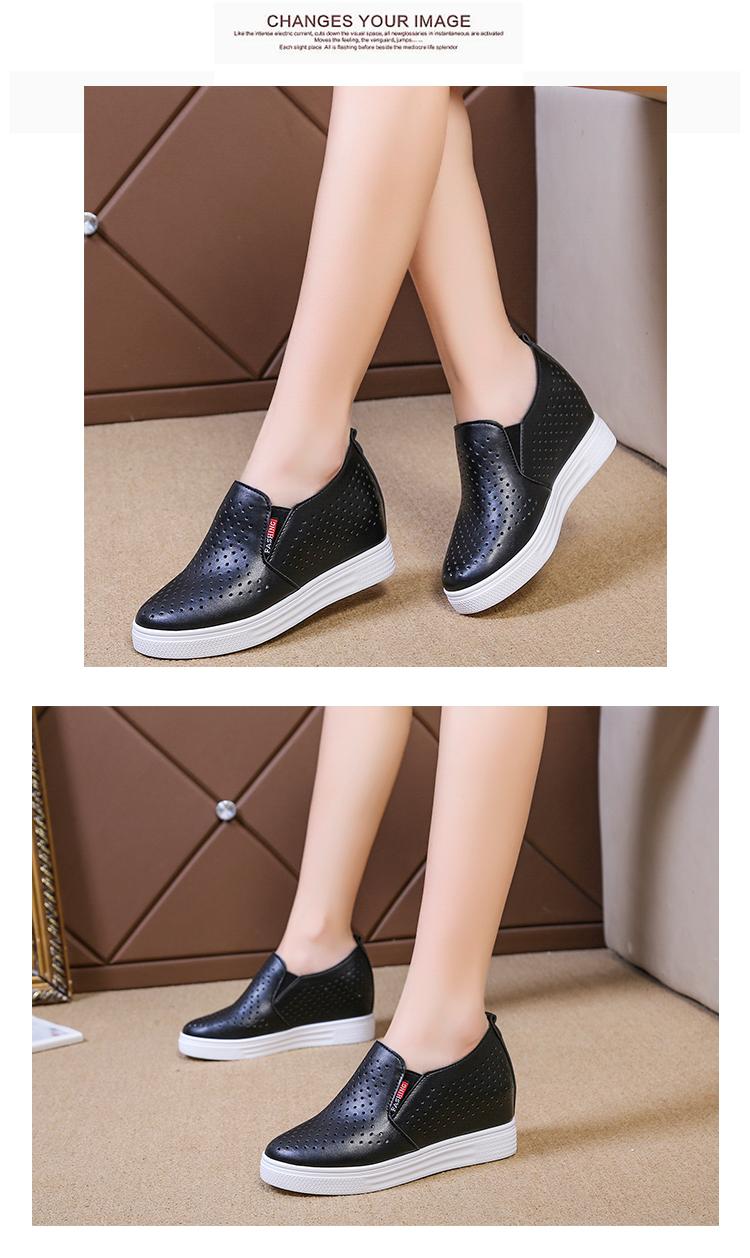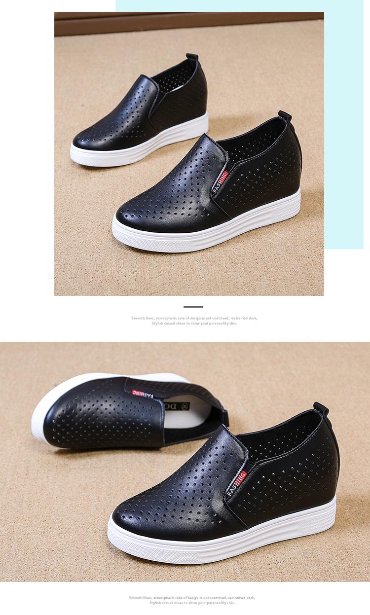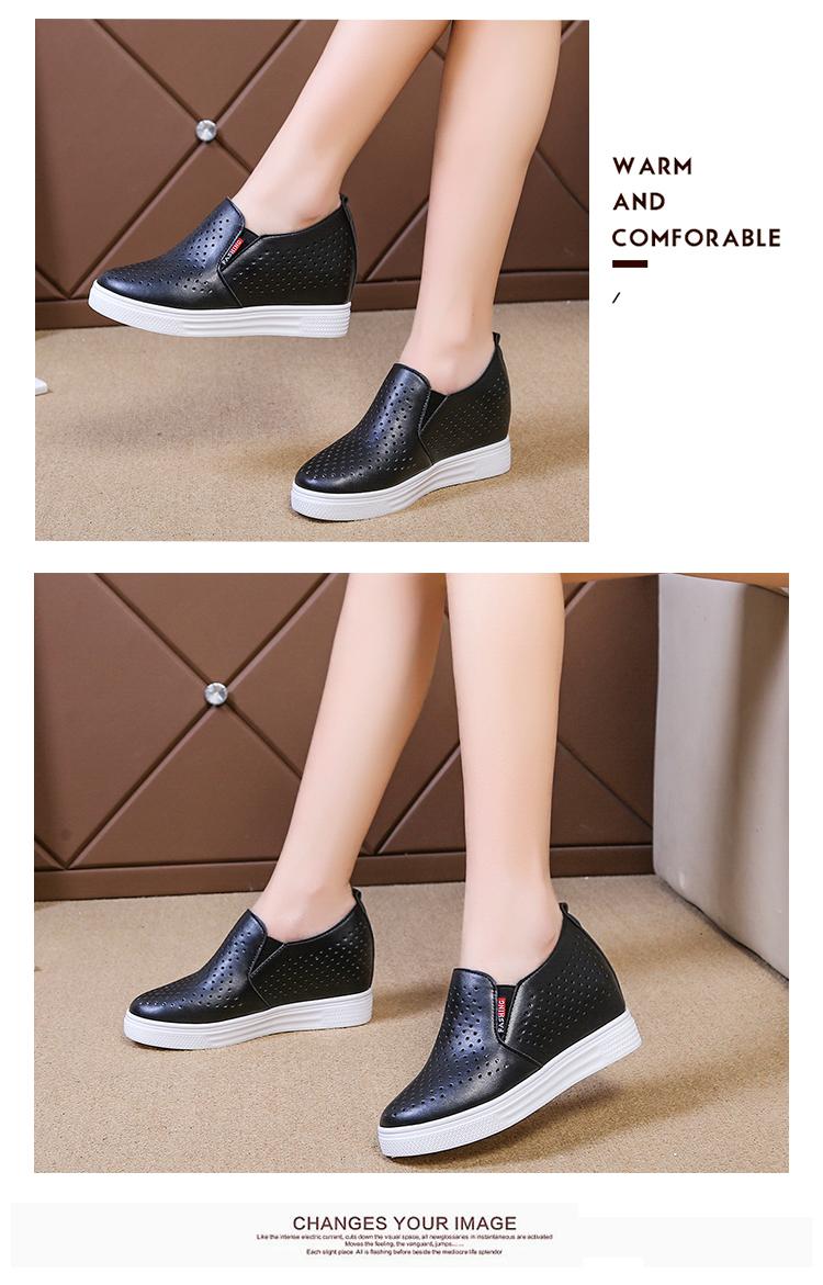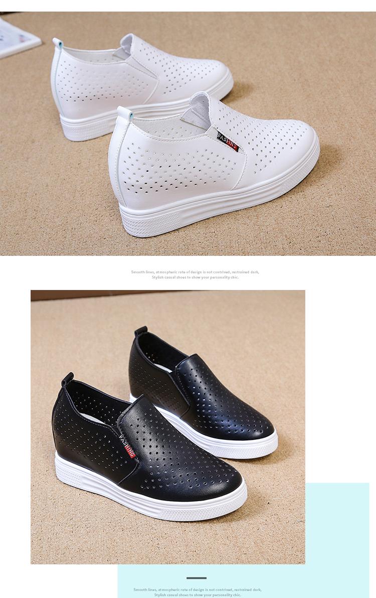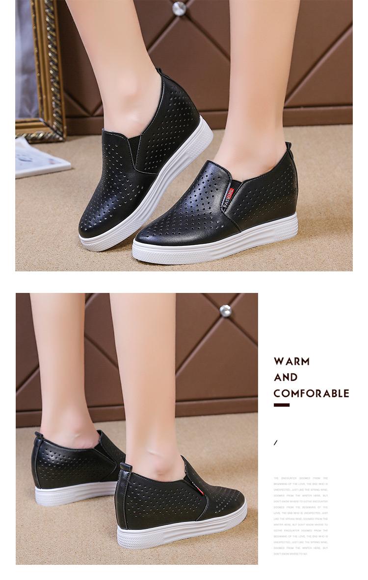 Primavera y Verano 2025 Nuevos Zapatos Blancos Versátiles con Aberturas Transpirables con Aumento de Altura Interno Zapatos Casuales de Cuña Slip-On para Mujer Zapatos Perezosos