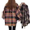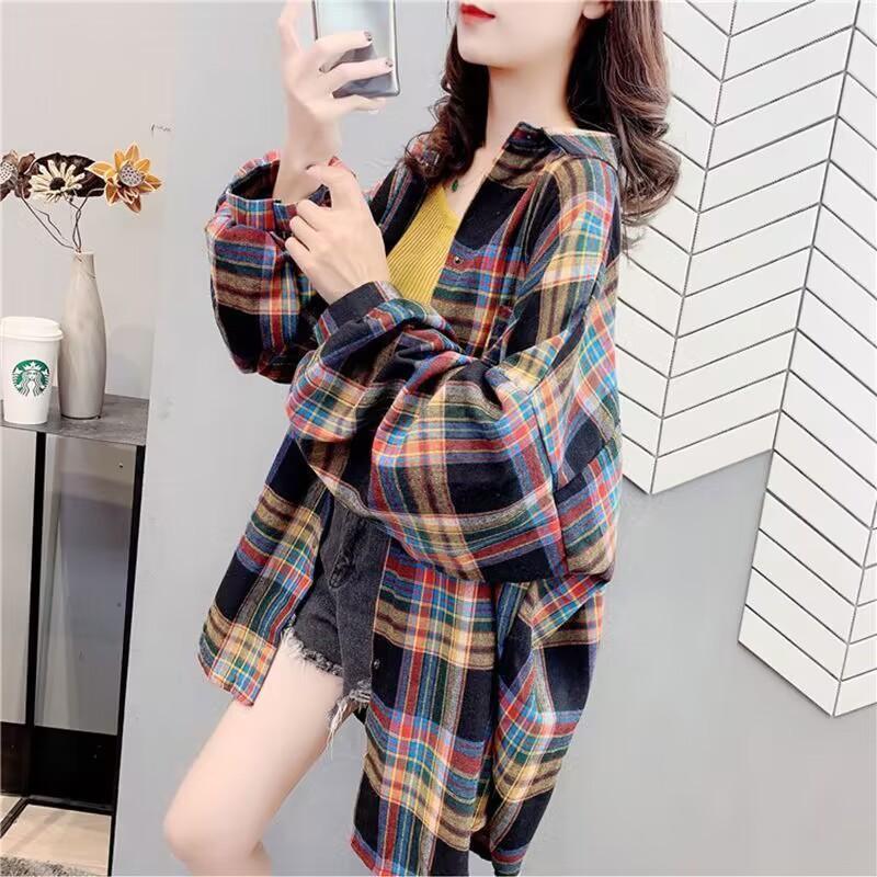 Camisa de Cuadros para Mujer Estilo Retro Hong Kong Nuevo Primavera y Otoño 2025 Manga Larga Largo Medio Diseño Holgado Camisa de Manga Larga