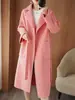 Abrigo de Lana de Doble Vista Color Avena para Mujer Otoño e Invierno 2025 Nuevo Estilo Coreano Suelto Largo Medio Abrigo de Lana para Mujer