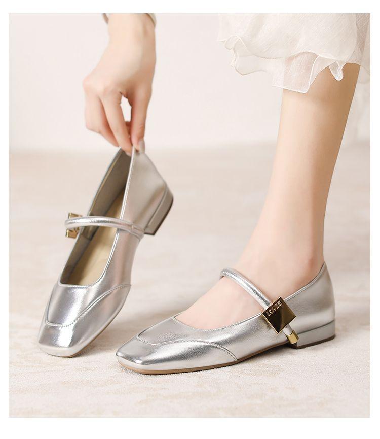 Zapatos de Cuero Pequeños Versátiles de Nicho Estilo Francés Bajos 2025 Primavera y Verano Nuevos Retro Mary Jane de Cuero Planos Zapatos de Mujer
