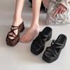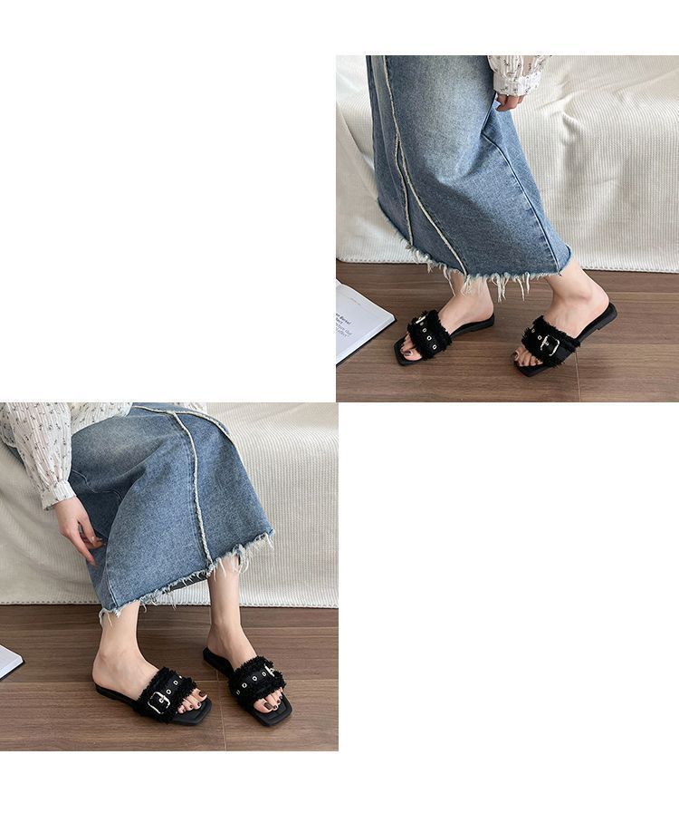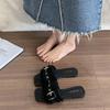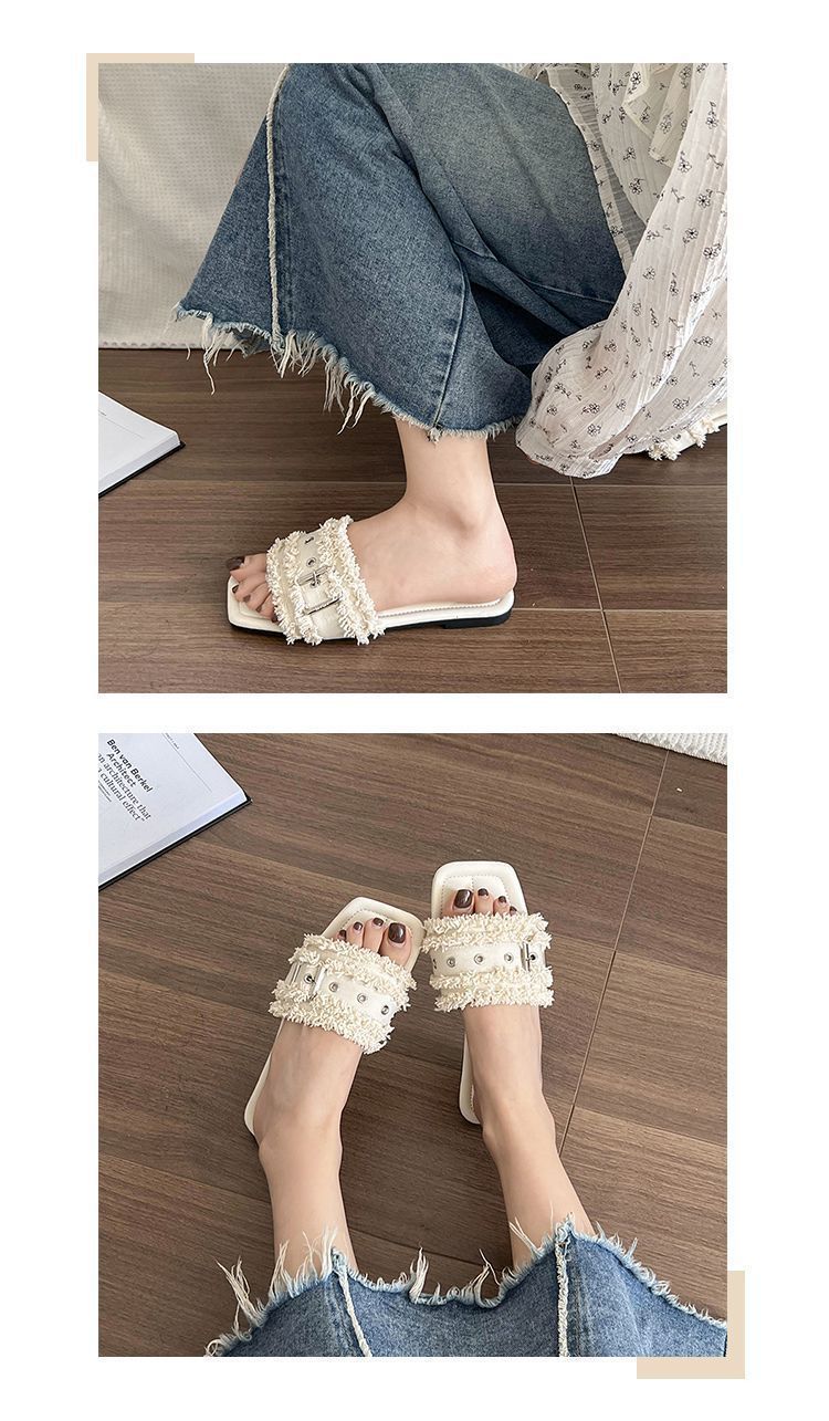Sandalias planas de playa de estilo francés para mujer, Verano 2025 Nuevas cómodas zapatillas de meter de estilo Chanel pequeño con hebilla de cinturón