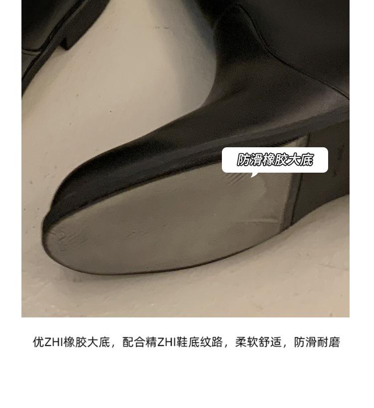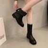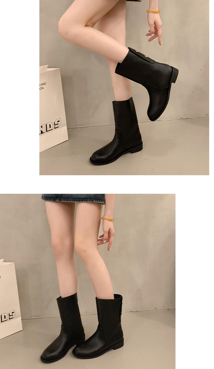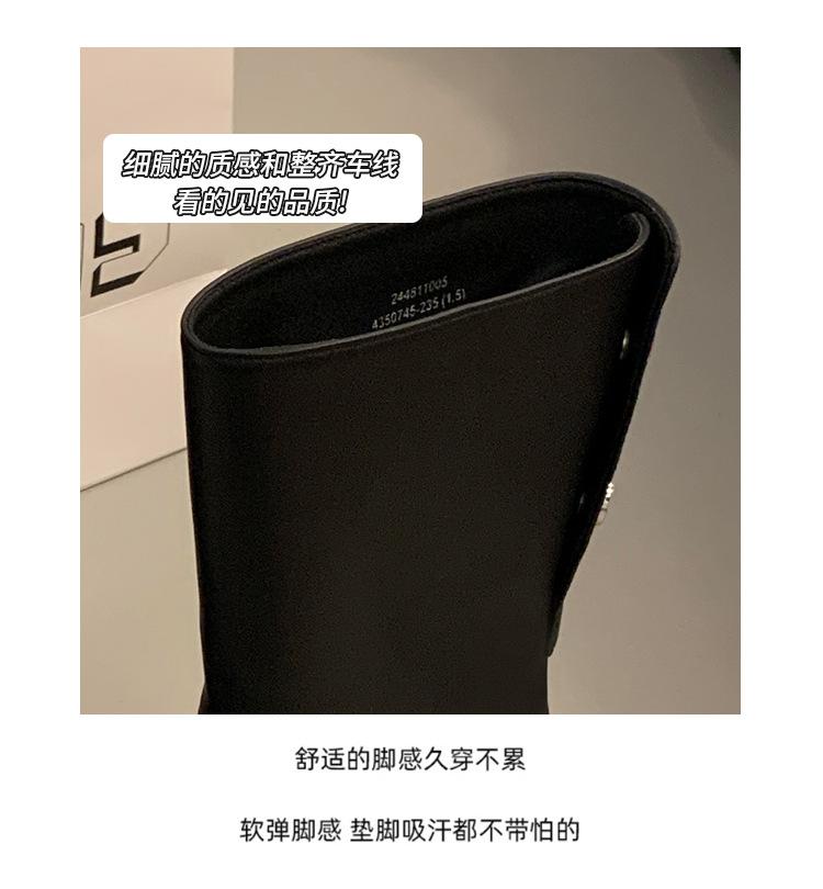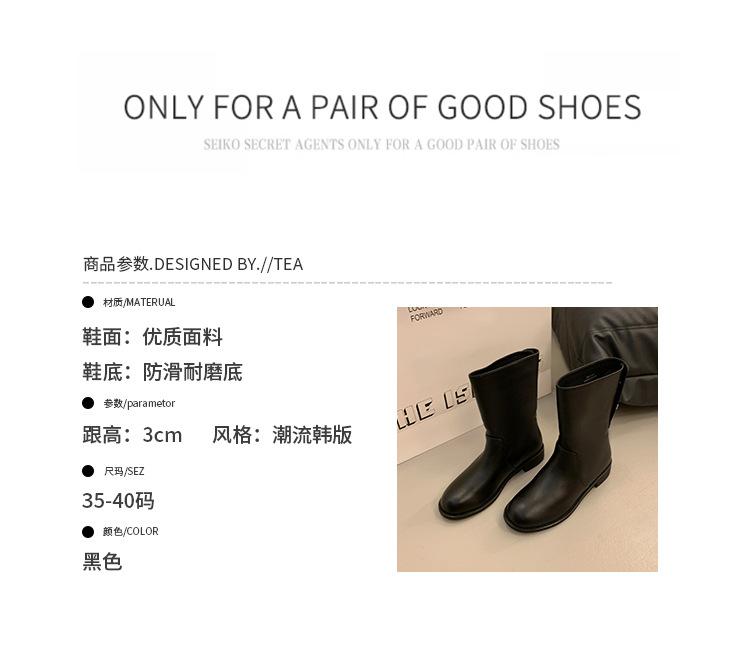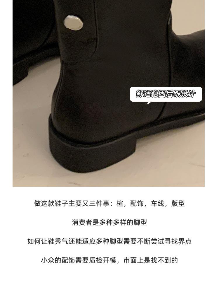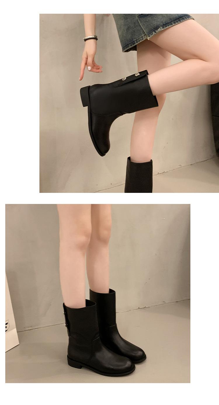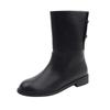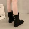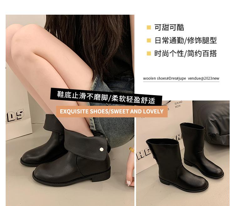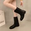 Otoño e Invierno 2025 Nuevo Estilo Coreano Retro Botas de Chimenea Cuero Suave Versátiles Botas de Tacón Grueso Botas Planas Vaqueras de Media Caña para Mujer