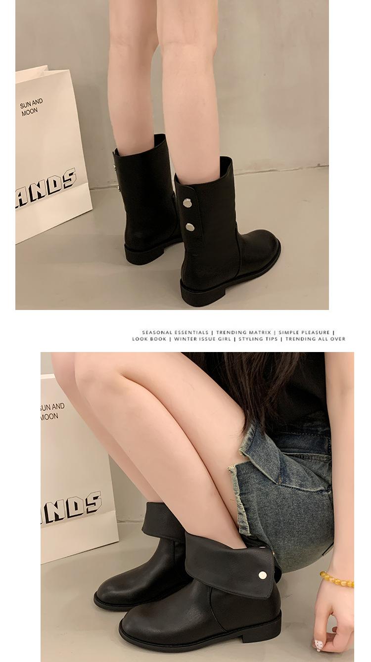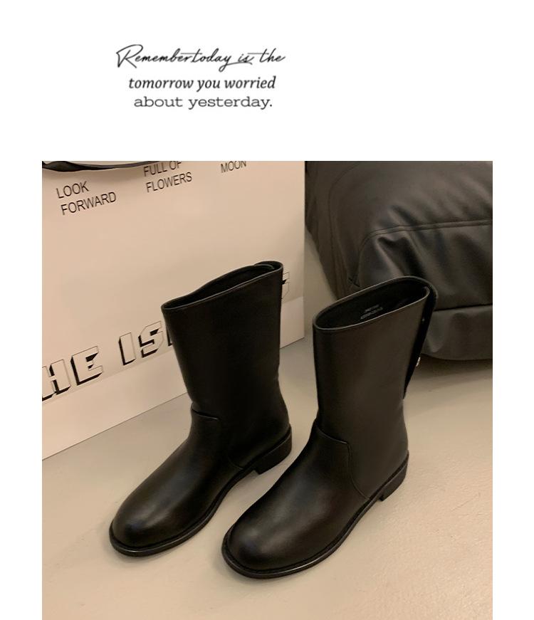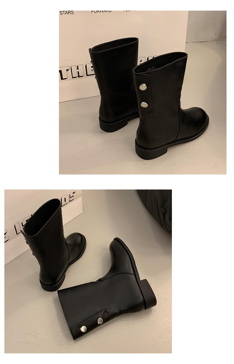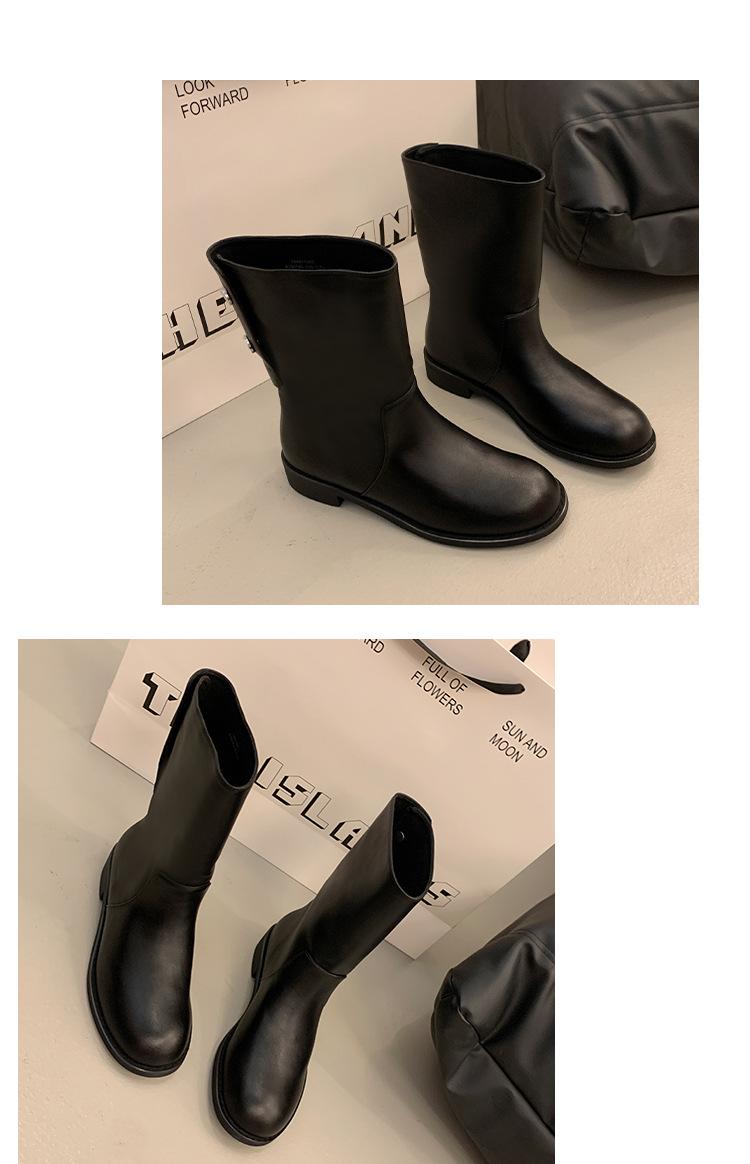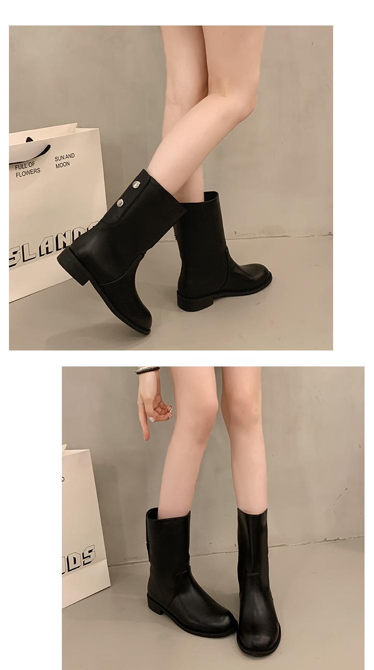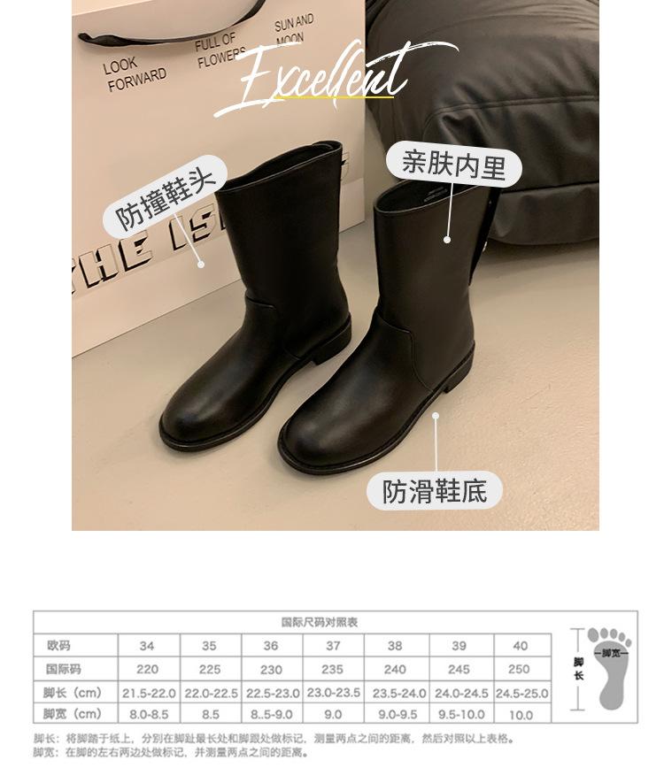 Otoño e Invierno 2025 Nuevo Estilo Coreano Retro Botas de Chimenea Cuero Suave Versátiles Botas de Tacón Grueso Botas Planas Vaqueras de Media Caña para Mujer