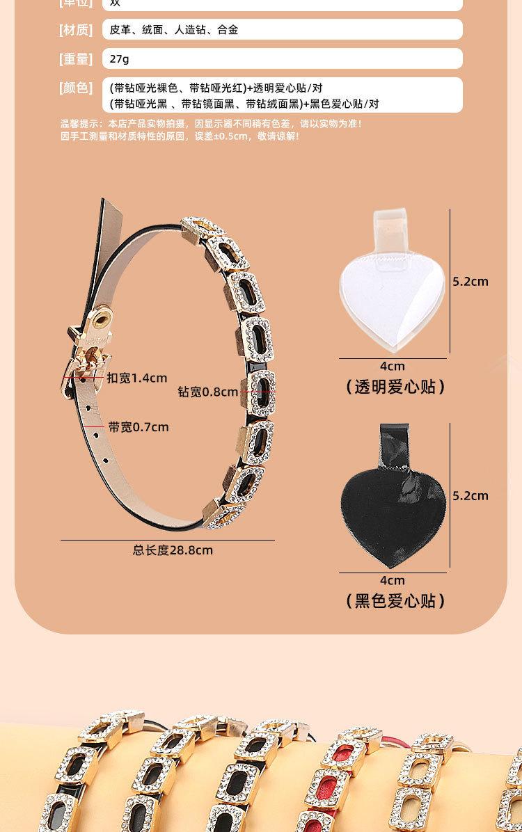 Diamond matte nude color-transparent love stickers/pair, Matte red with diamonds-transparent love stickers/pai...