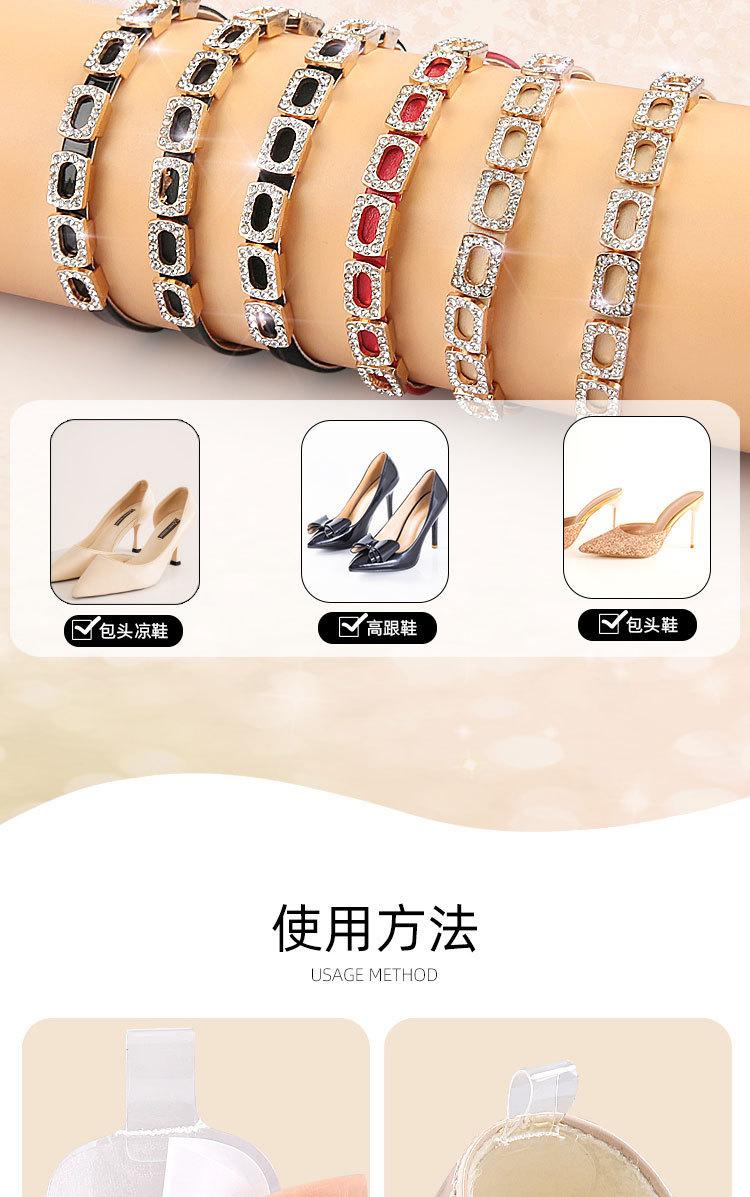 Cordones planos para mujer con hebilla de diamante, tacones altos, anticaída, cambio grande, pequeños, sin instalación, cordones fijos