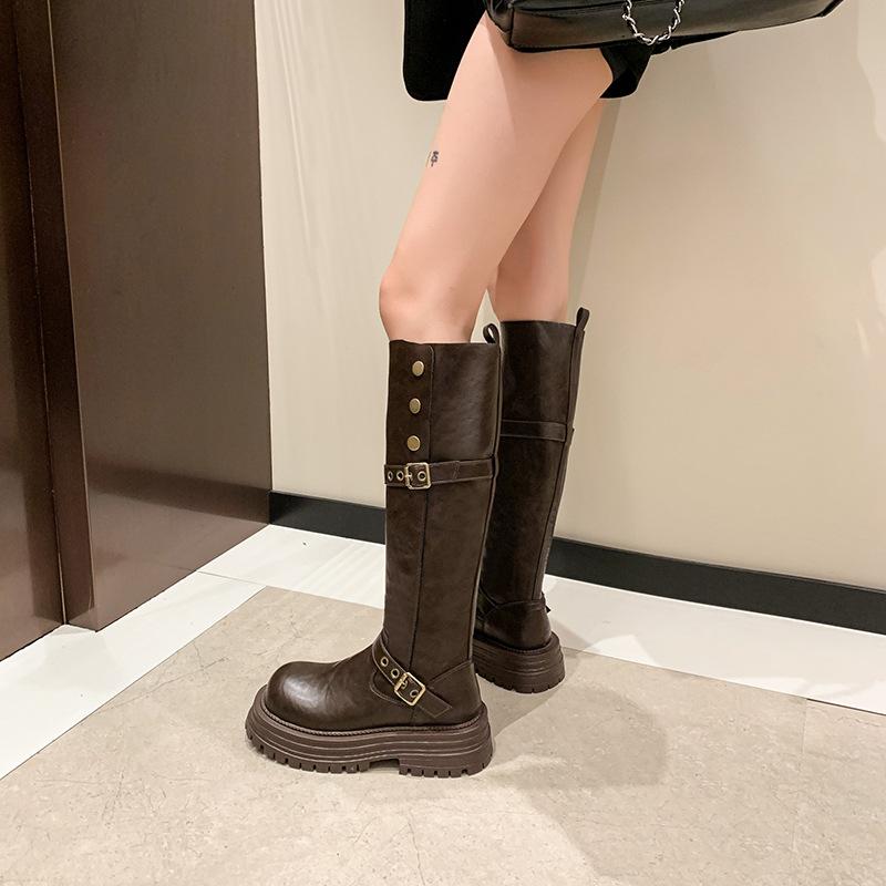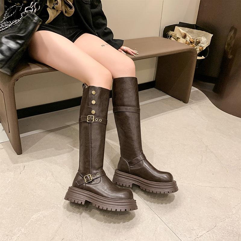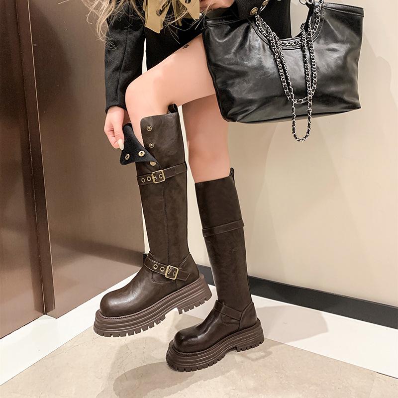 Botas Largas para Mujer 2025 Nuevo Estilo Botas Largas Suela Gruesa Aumento de Altura Dos Formas de Usar Botas Altas Botas de Caballero Maillard