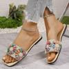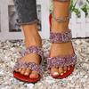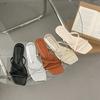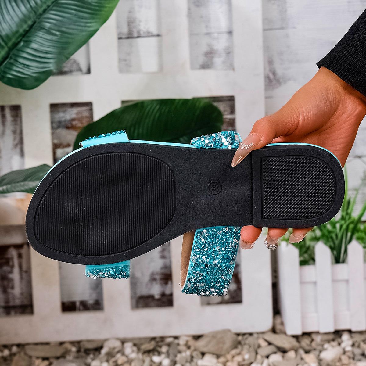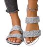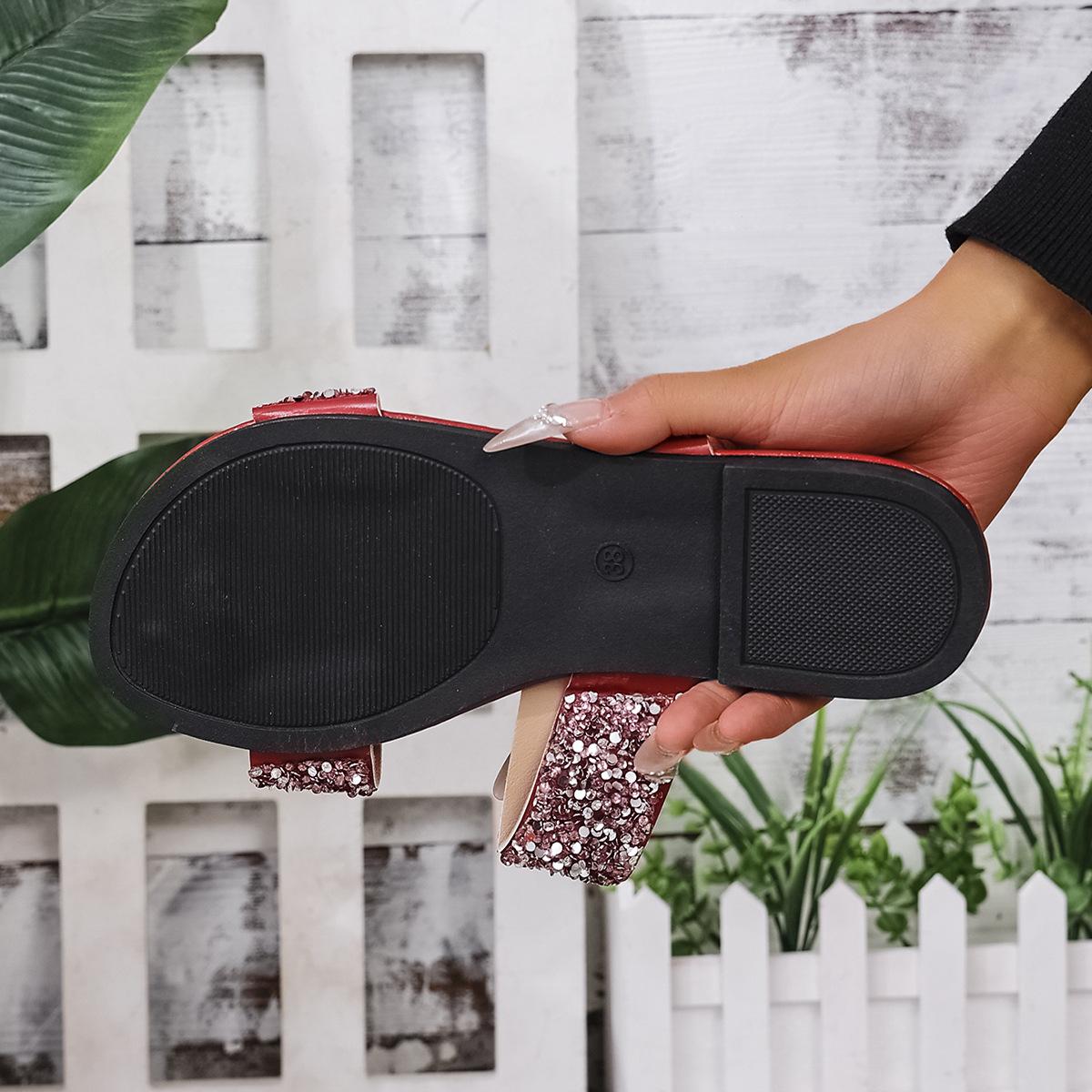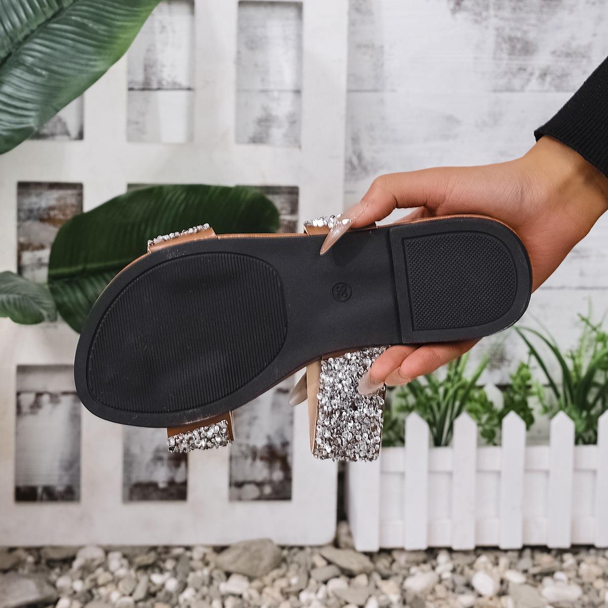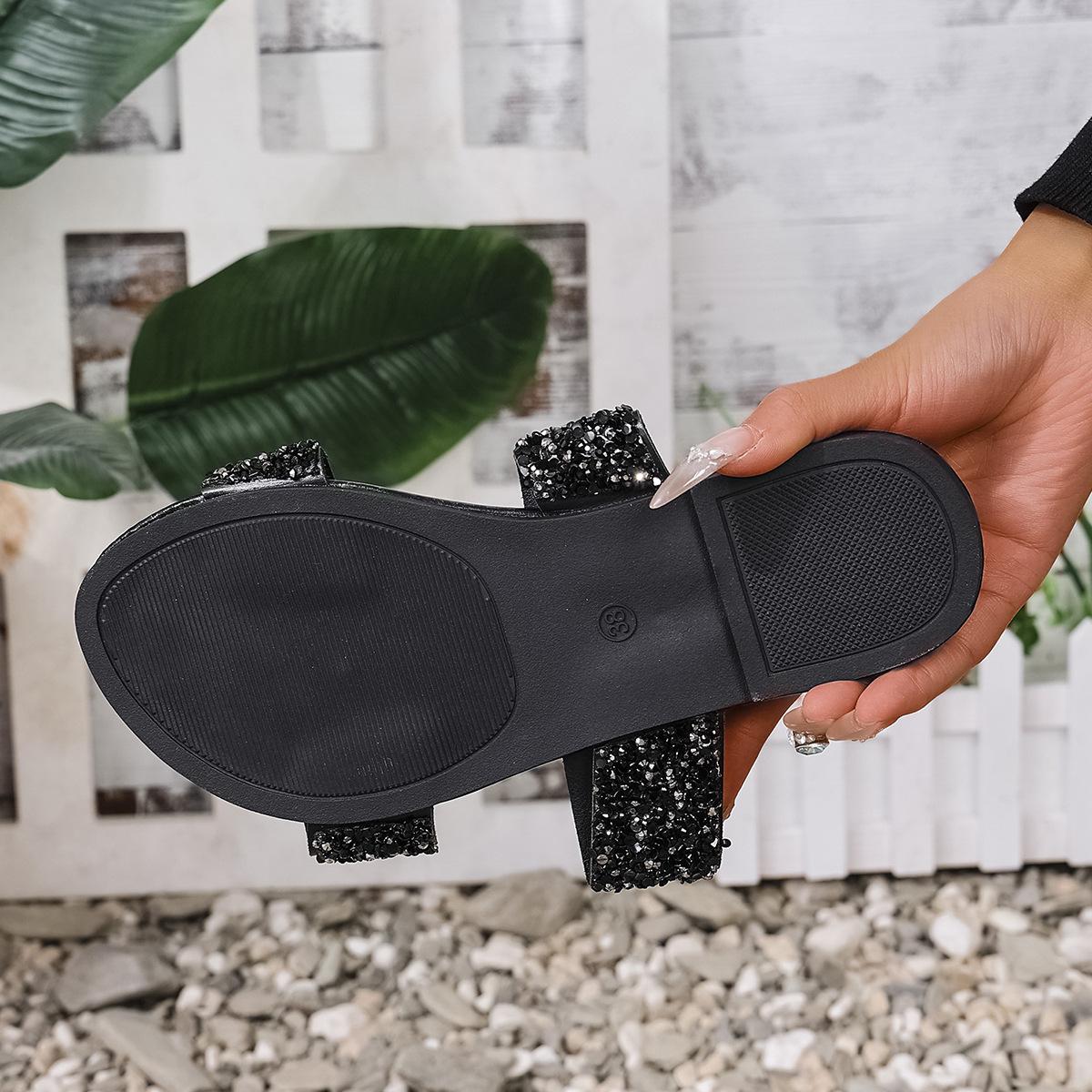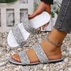 Sandalias de Lentejuelas de Talla Grande Europeas y Americanas para Mujer 2025 Verano Nuevo Color Puro Punta Cuadrada Moda Casual Playa Planas Pantuflas