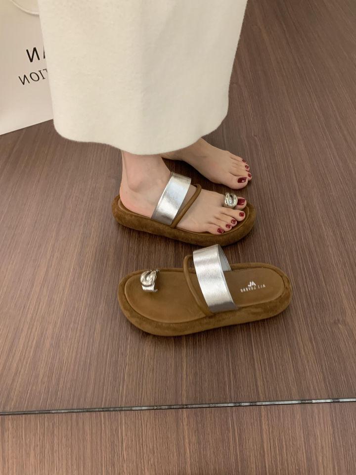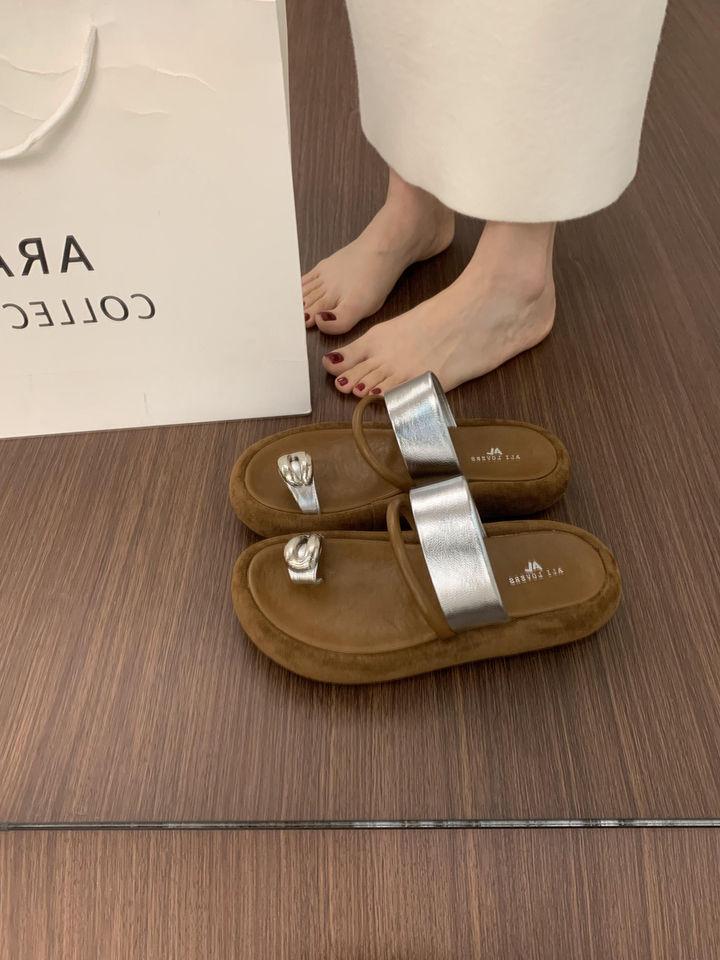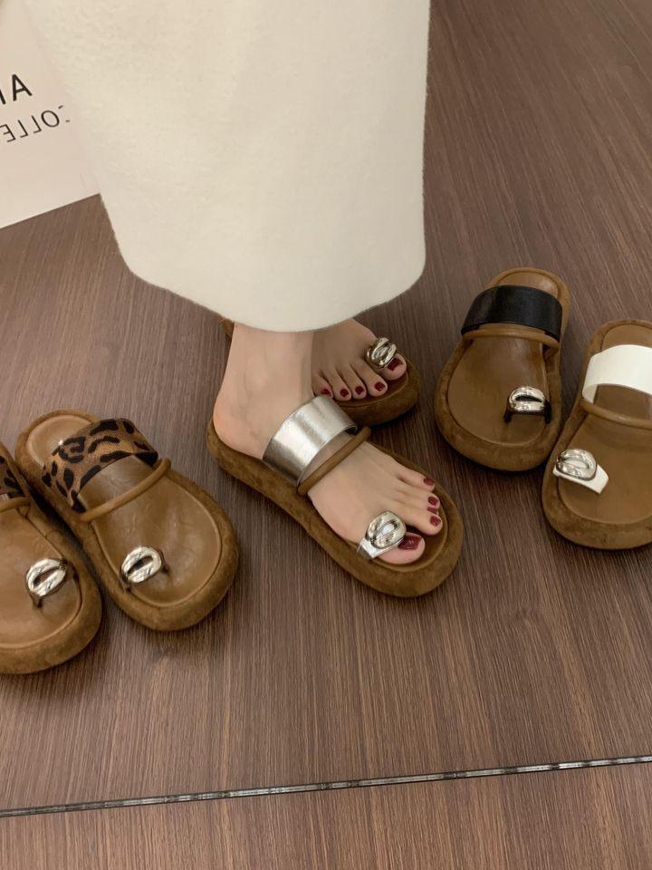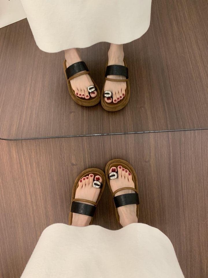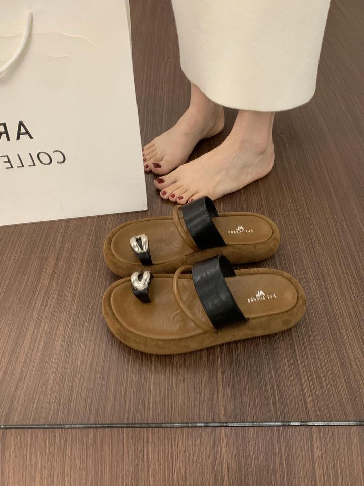 Pantuflas Retro Nicho Casual de Suela Gruesa sin Cordones para Verano para Mujer, Sandalias de Playa de Moda Francesa