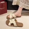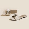 Verano Nuevo Estilo Hebilla Pequeña Dorada Zapatillas Francesas para Mujer Verano Sandalias para Exterior Fondo Suave Playa Medias Zapatillas