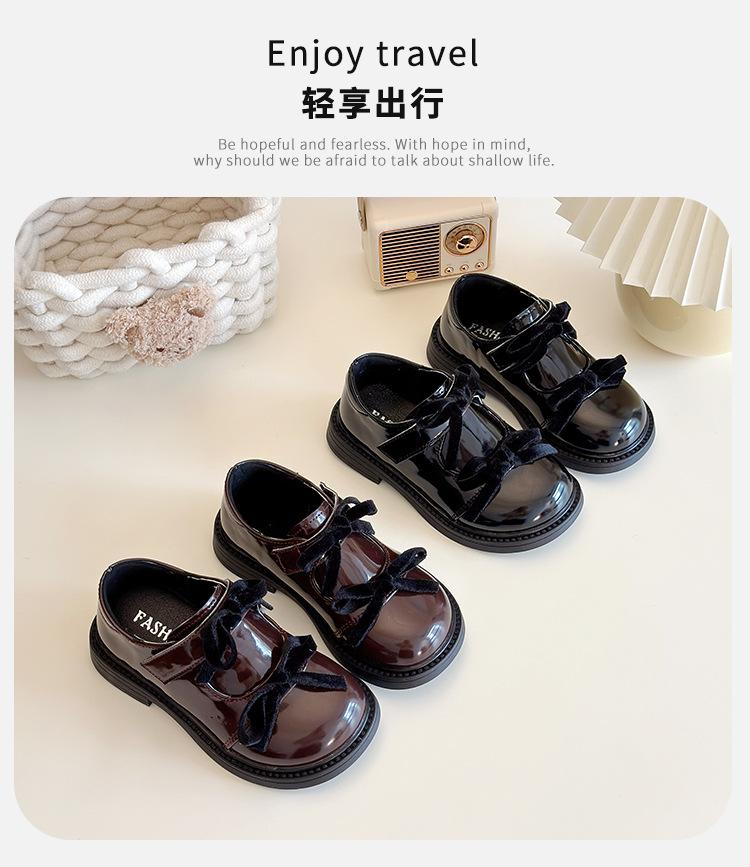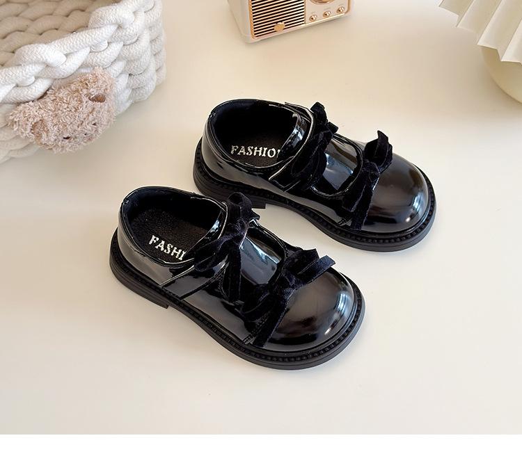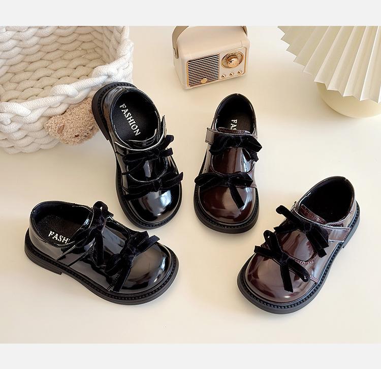 Zapatos de Princesa para Niñas 2025 Nuevos Primavera y Otoño Zapatos Pequeños de Cuero para Niños Suela Suave Zapatos para Niños Grandes Mocasines Negros Zapatos Individuales